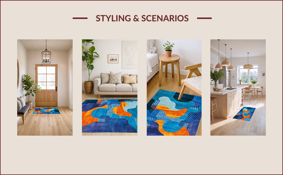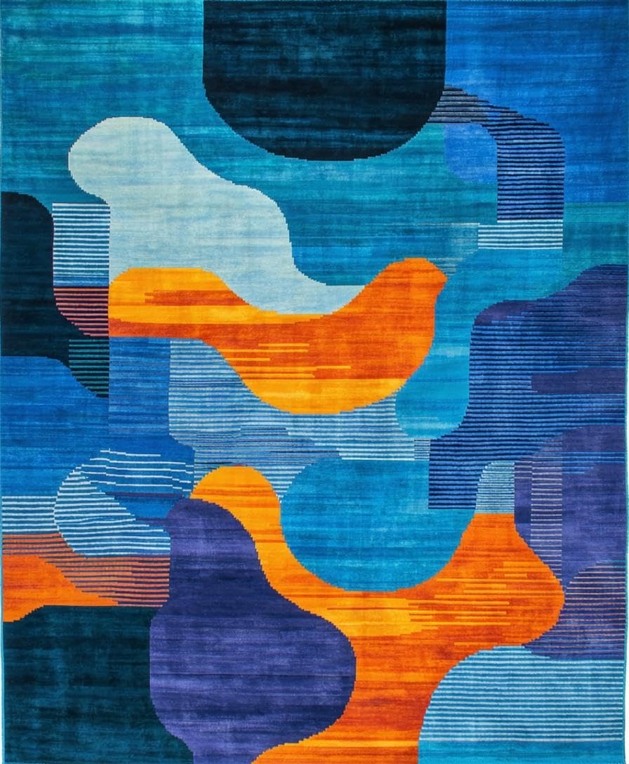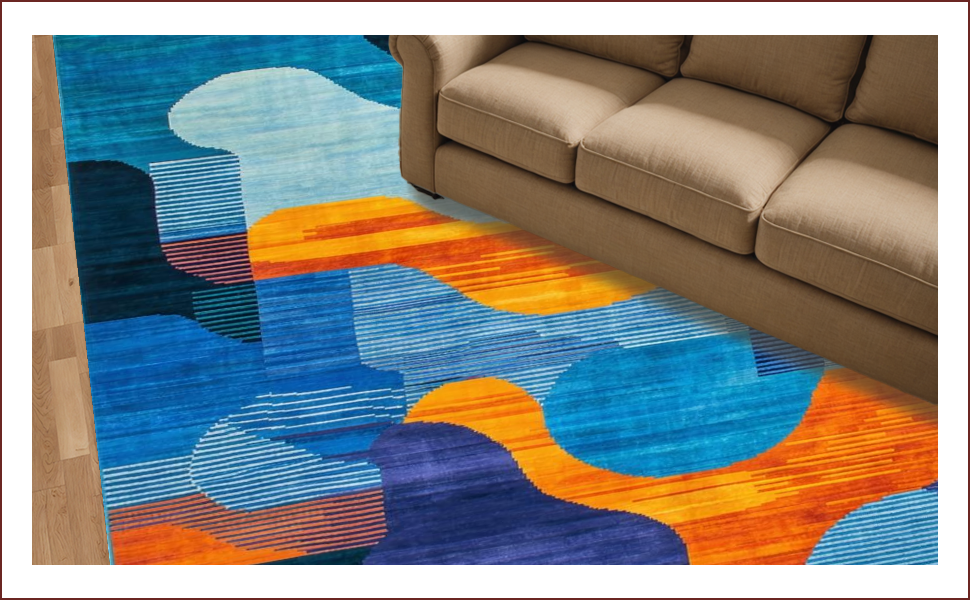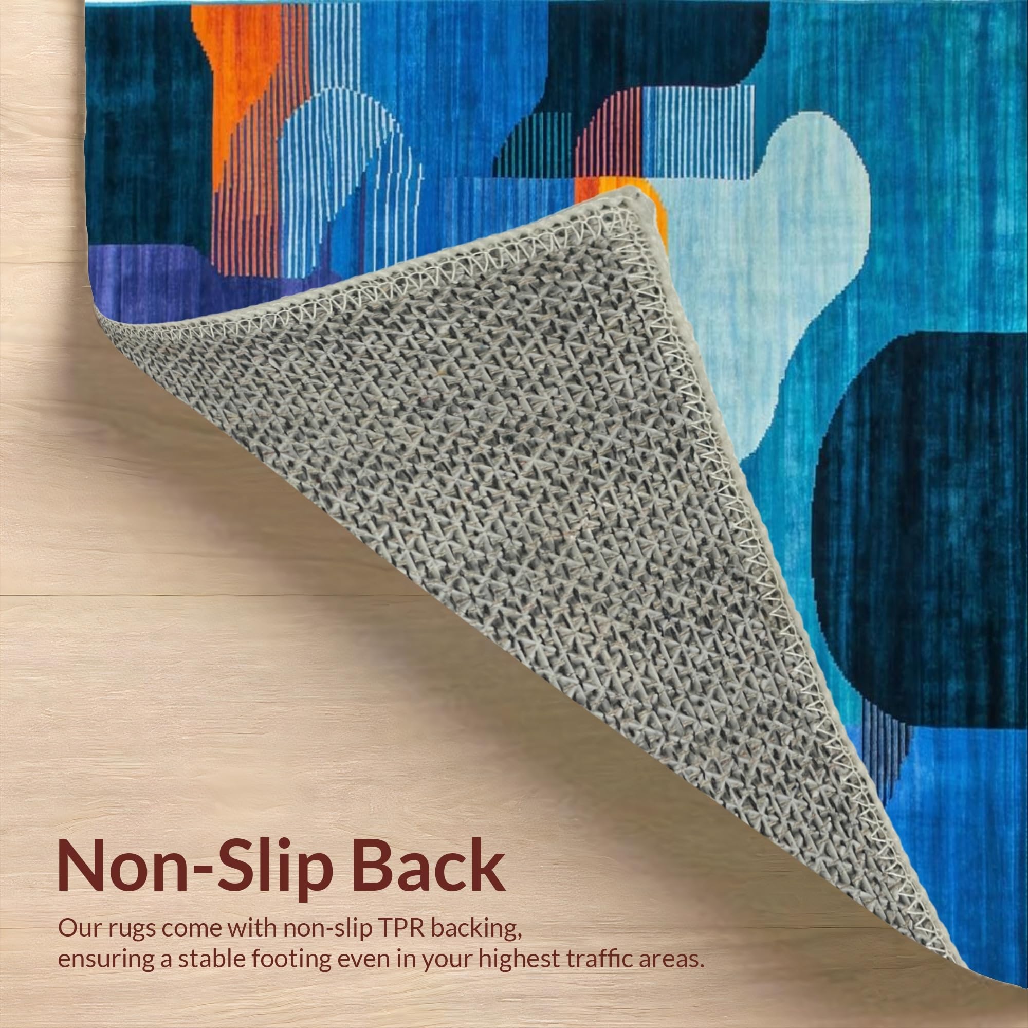 Ultra Soft Area Rug, Non Slip, Stain Resistant, Washable Area Rugs for Living Room, Bedroom, Vibrant Abstract Expressionist Palette(Blue) Overview: