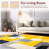 Ultra Soft Area Rug, Non Slip, Stain Resistant, Washable Area Rugs for Living Room, Bedroom, Vibrant Abstract Geometric Artwork(Yellow) Overview: