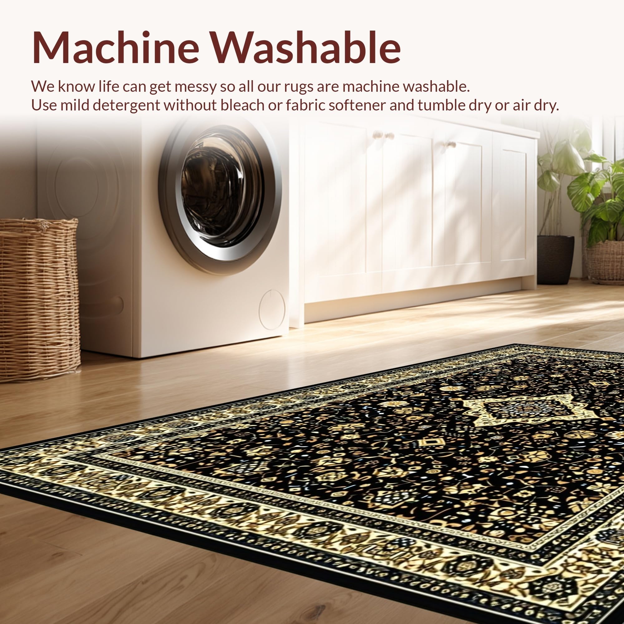 - Machine Washable: Our rugs can be easily thrown in the wash machine.
