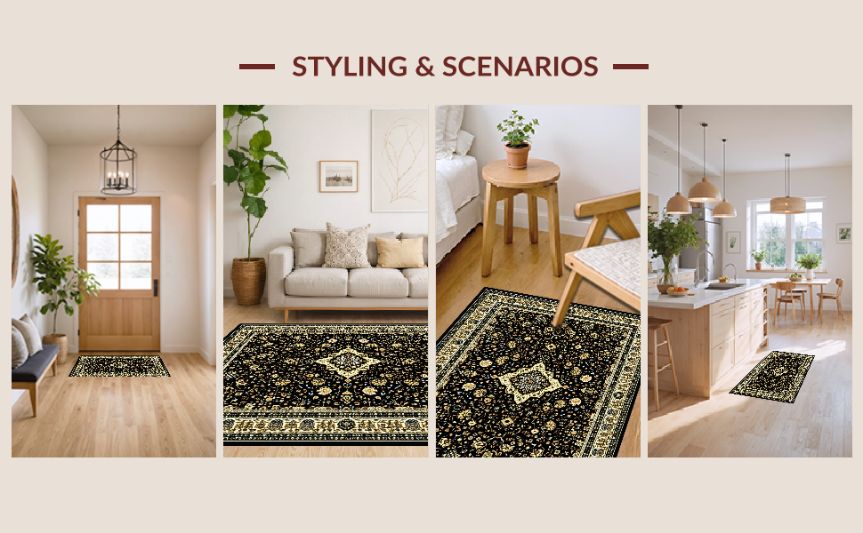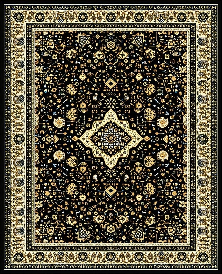 Ultra Soft Area Rug, Non Slip, Stain Resistant, Washable Area Rugs for Living Room, Bedroom, Vibrant Abstract Lattice Aesthetic(Black) Overview: