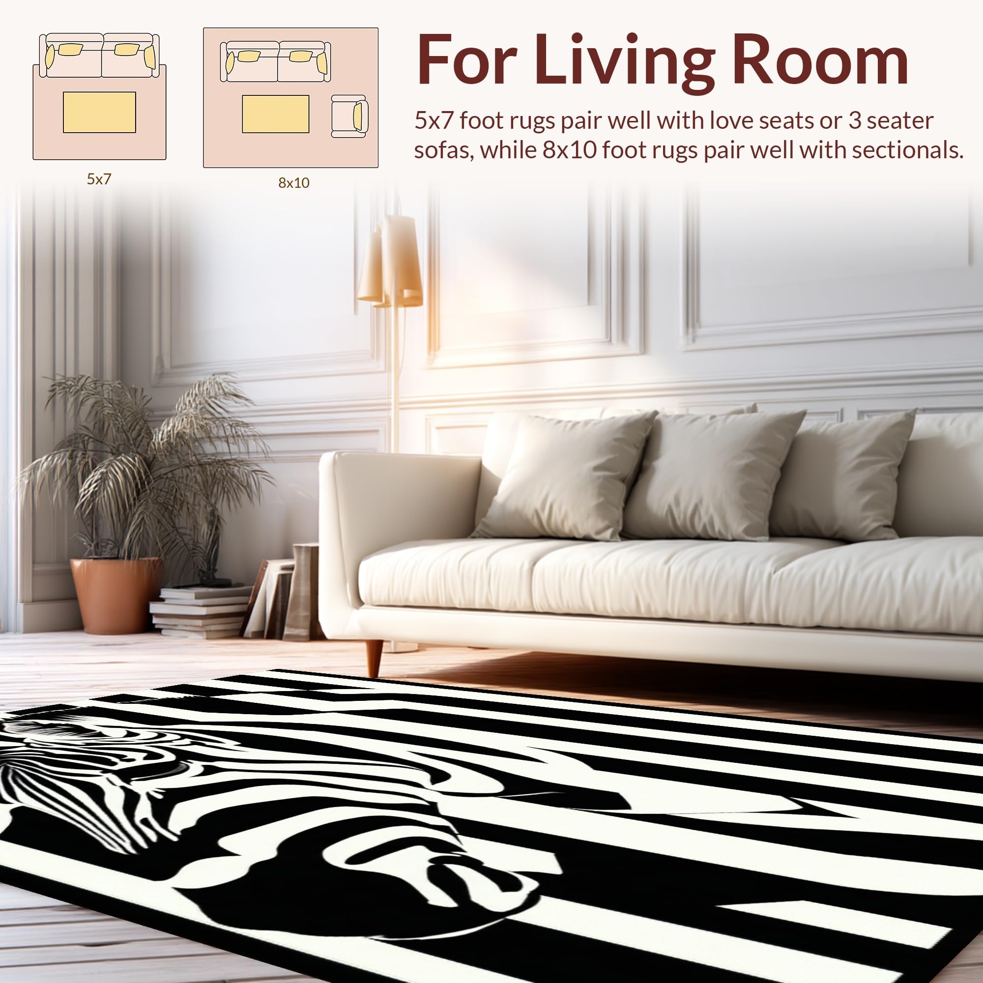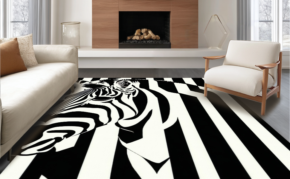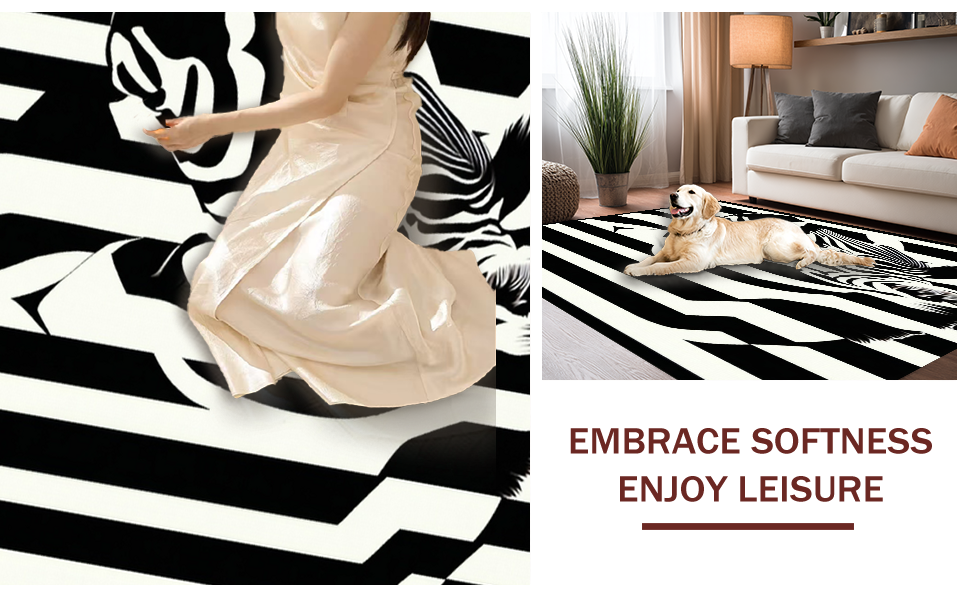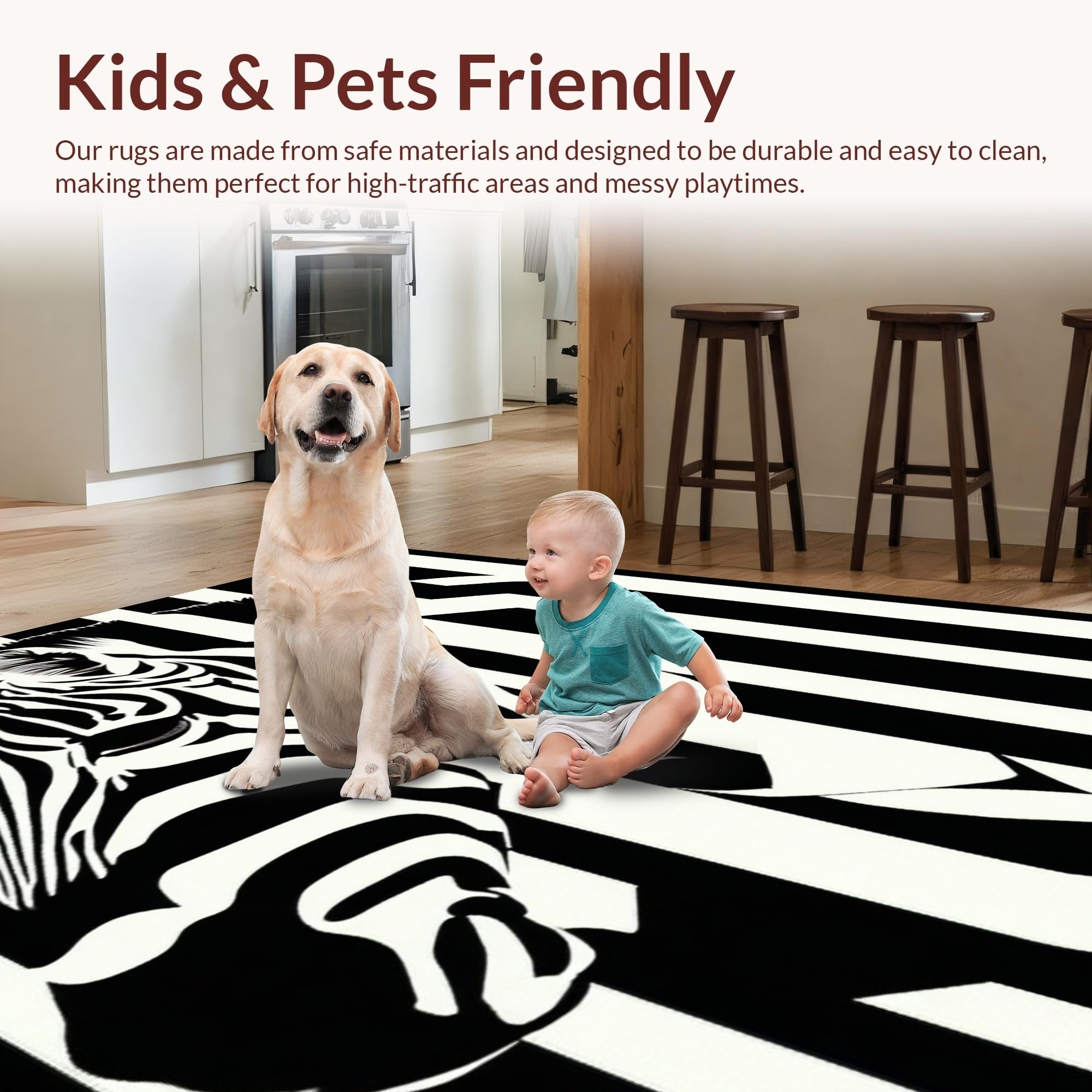 Ultra Soft Area Rug, Non Slip, Stain Resistant, Washable Area Rugs for Living Room, Bedroom, Vibrant Abstract Nature-Inspired Print(Black) Overview: