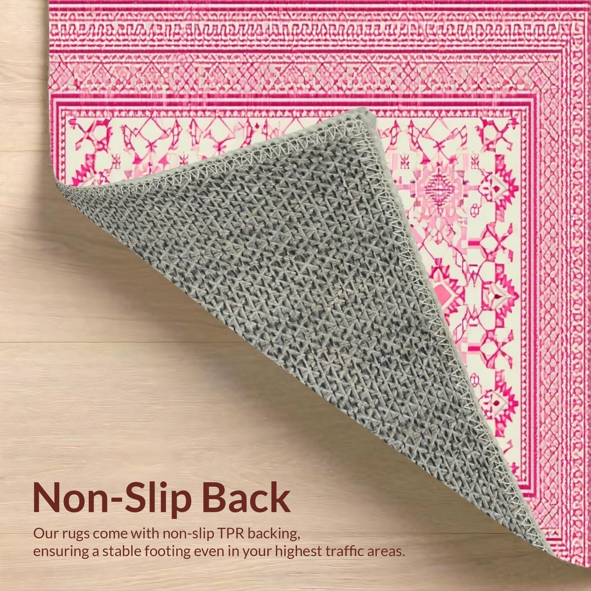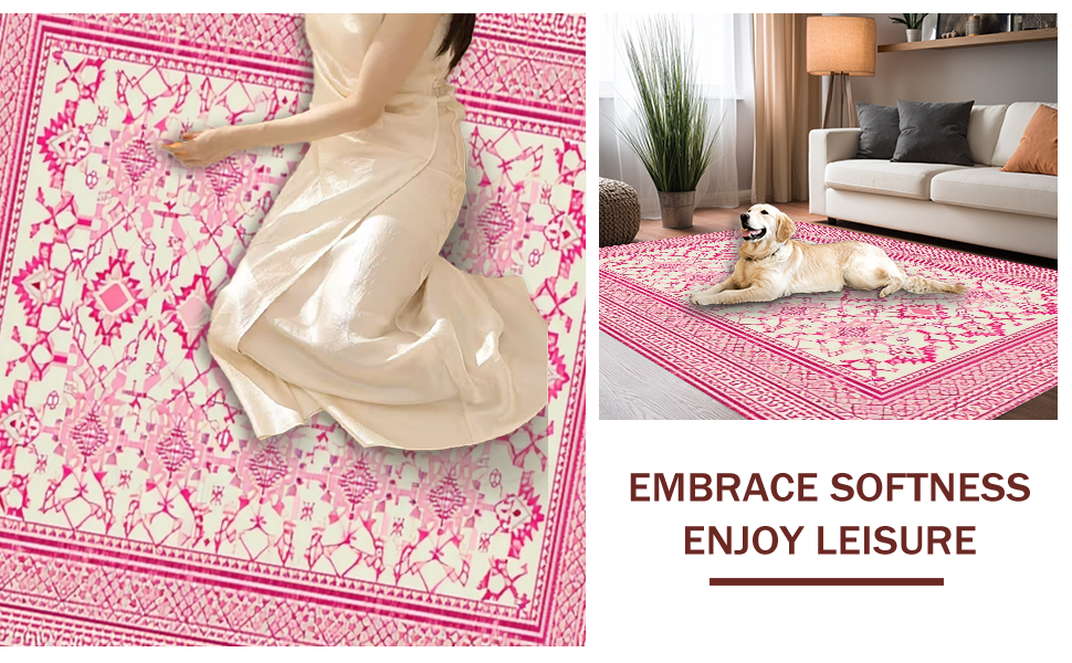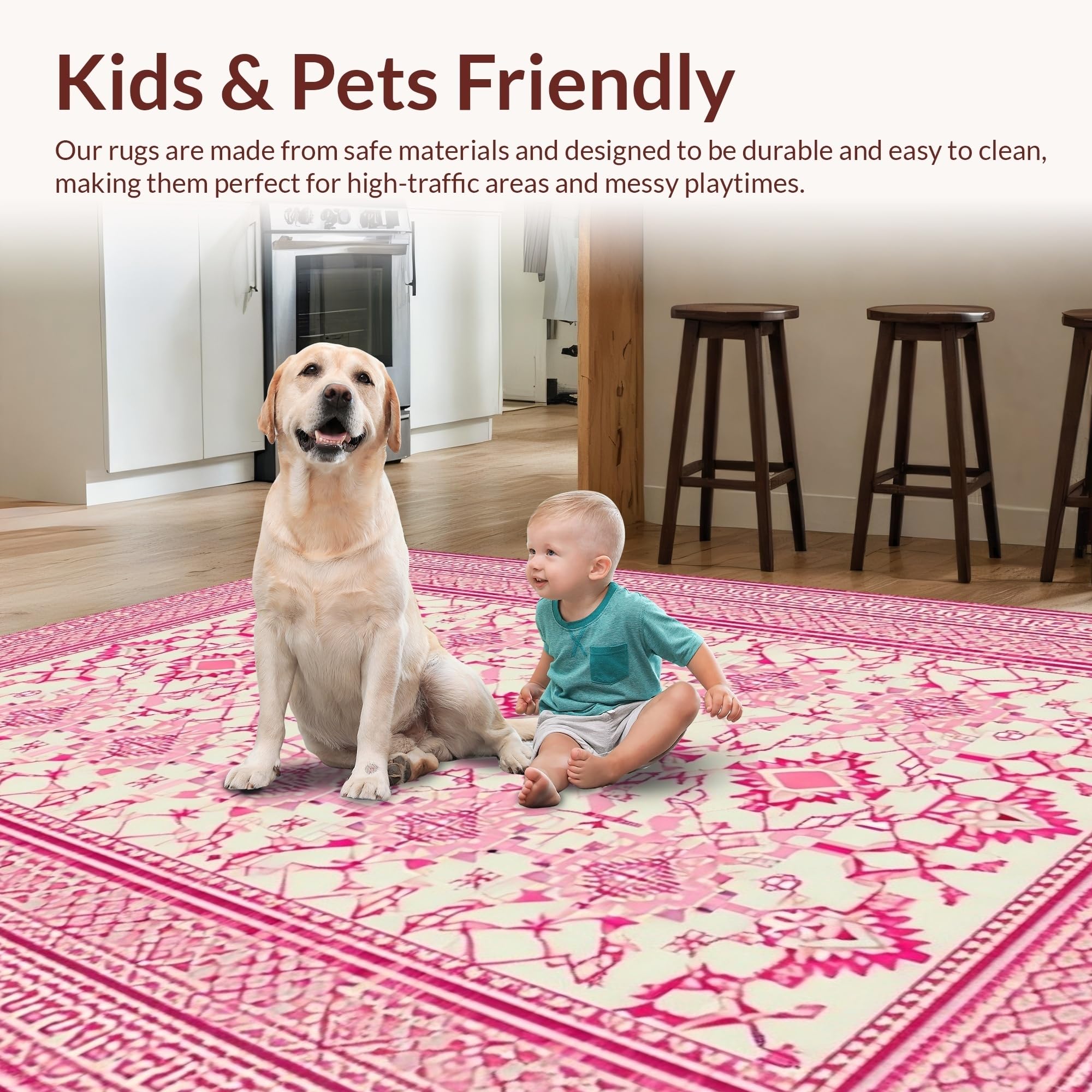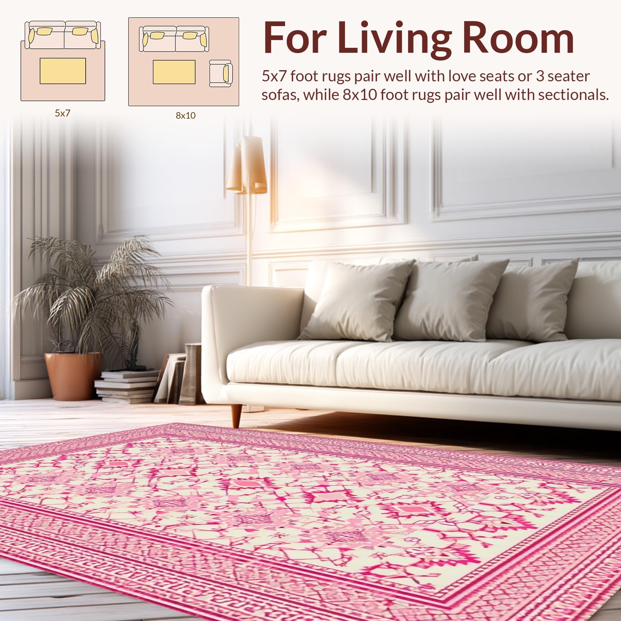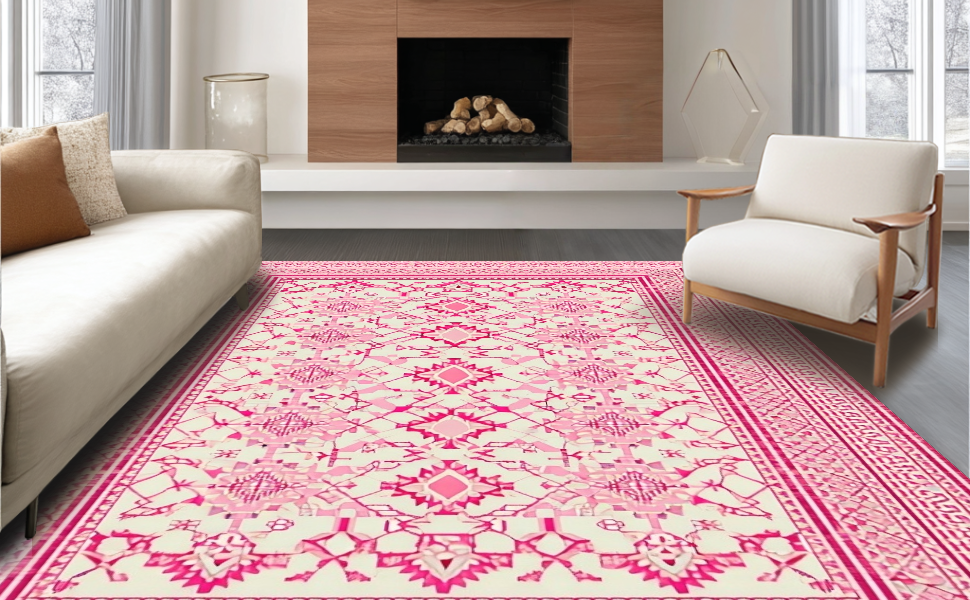 Ultra Soft Area Rug, Non Slip, Stain Resistant, Washable Area Rugs for Living Room, Bedroom, Vibrant Abstract Pattern with Modern Flair(Pink) Overview: