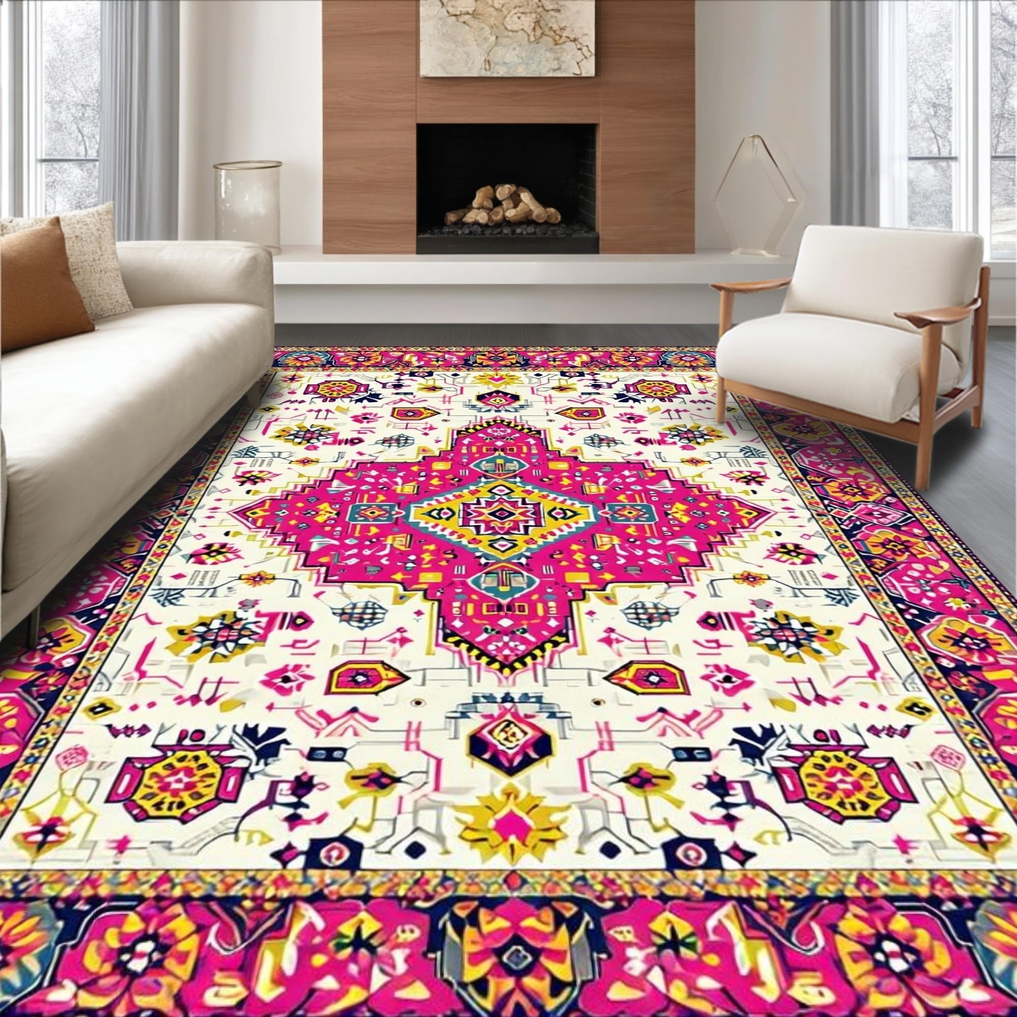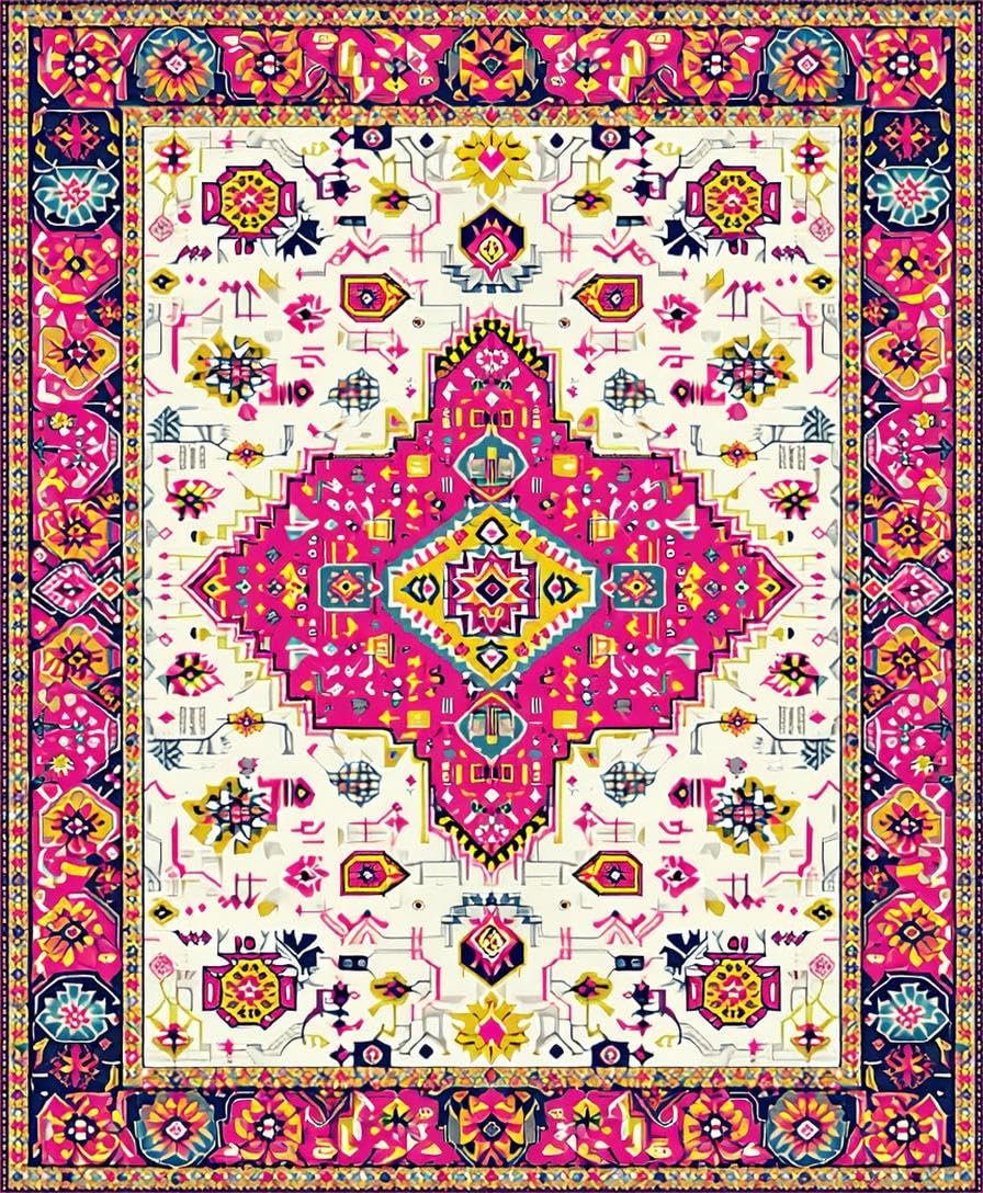 Ultra Soft Area Rug, Non Slip, Stain Resistant, Washable Area Rugs for Living Room, Bedroom, Vibrant Abstract Textured Motif(White) Overview: