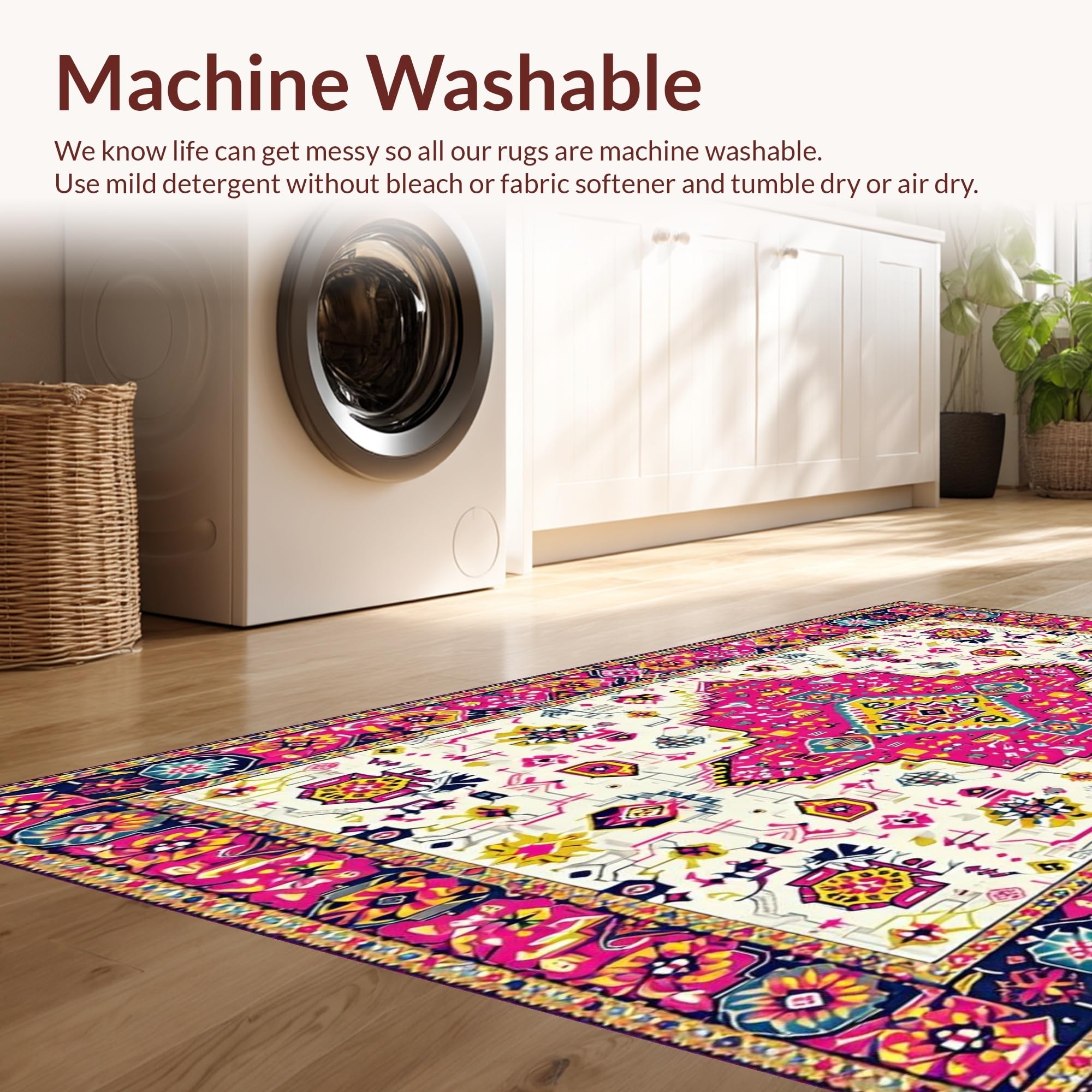 - Machine Washable: Our rugs can be easily thrown in the wash machine.