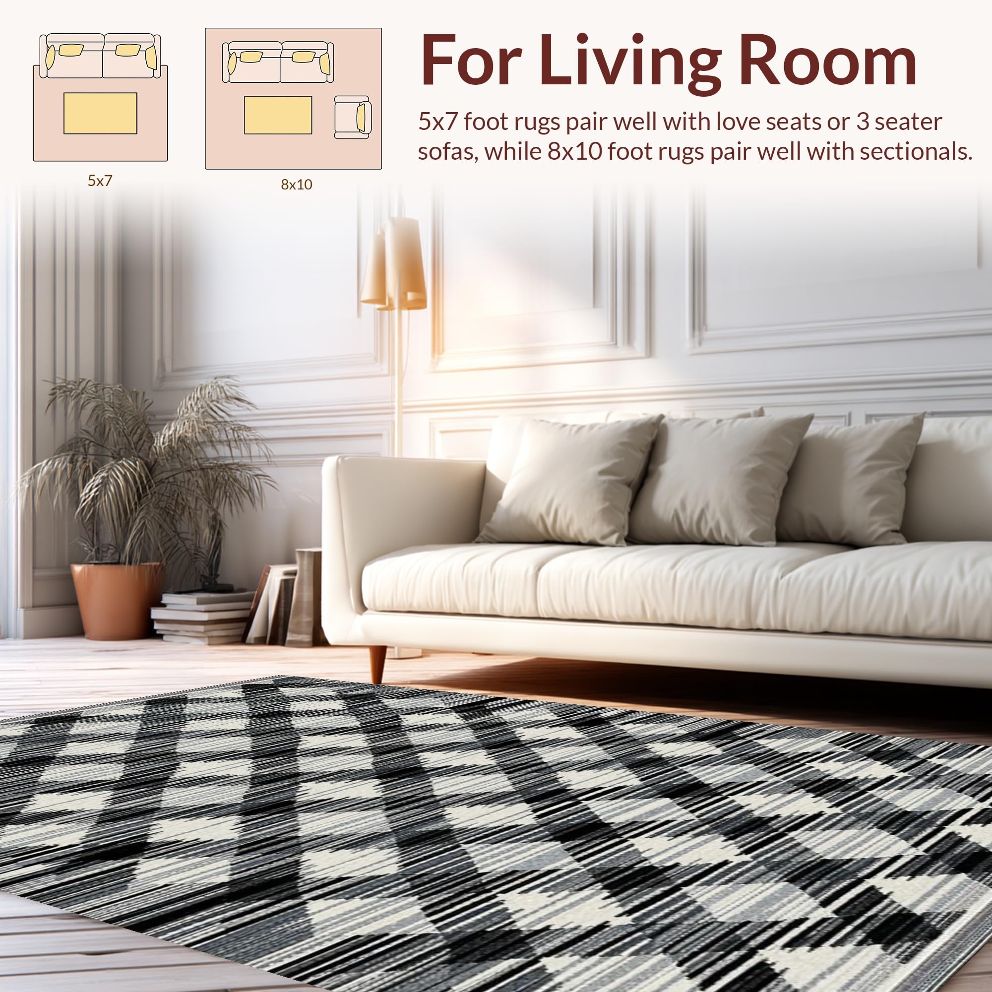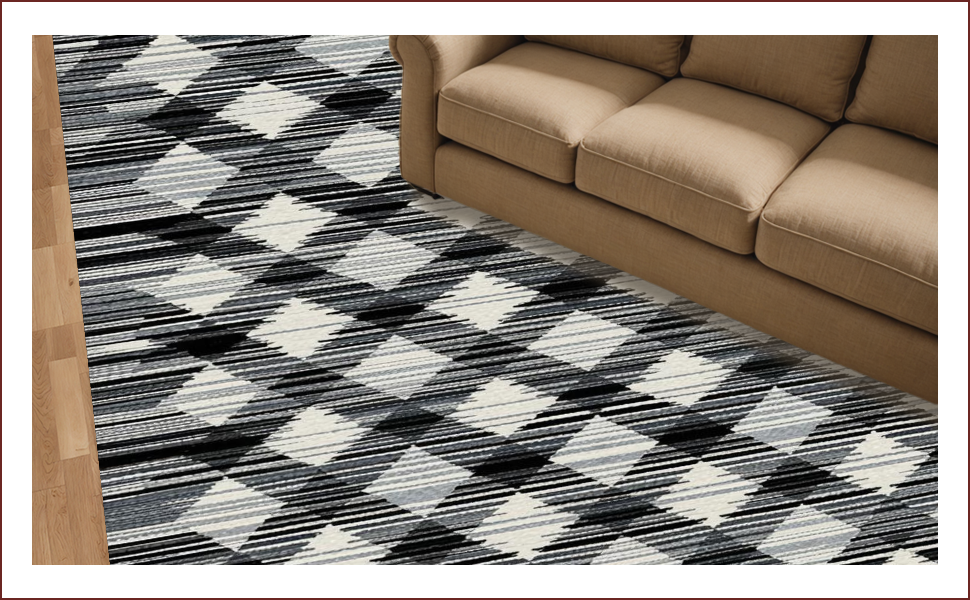 Ultra Soft Area Rug, Non Slip, Stain Resistant, Washable Area Rugs for Living Room, Bedroom, Vibrant Abstract Tiled Texture(Black) Overview: