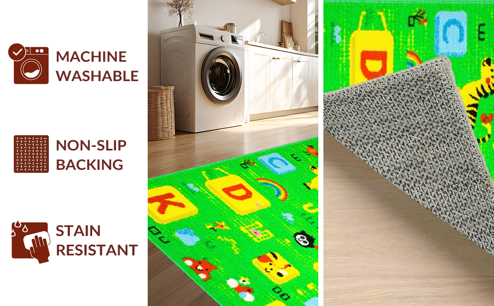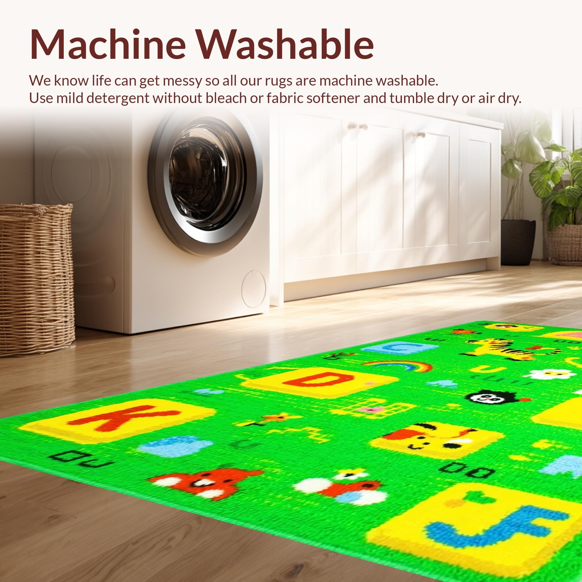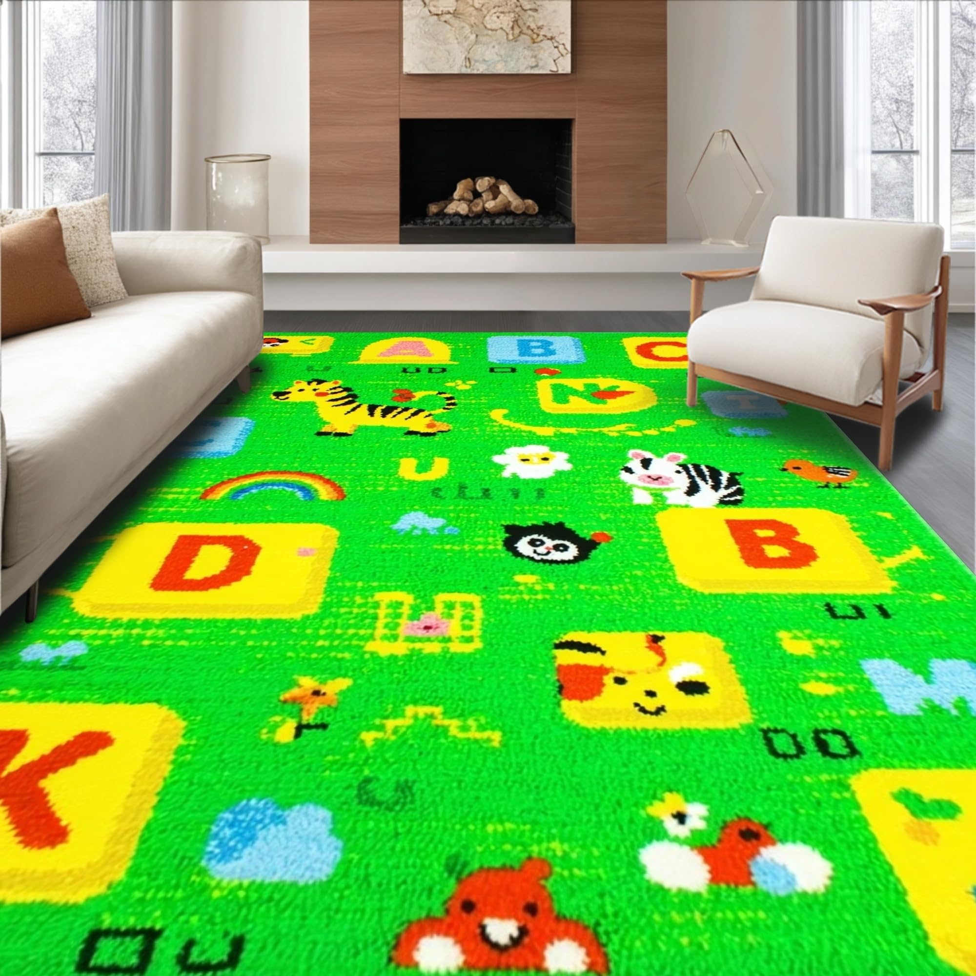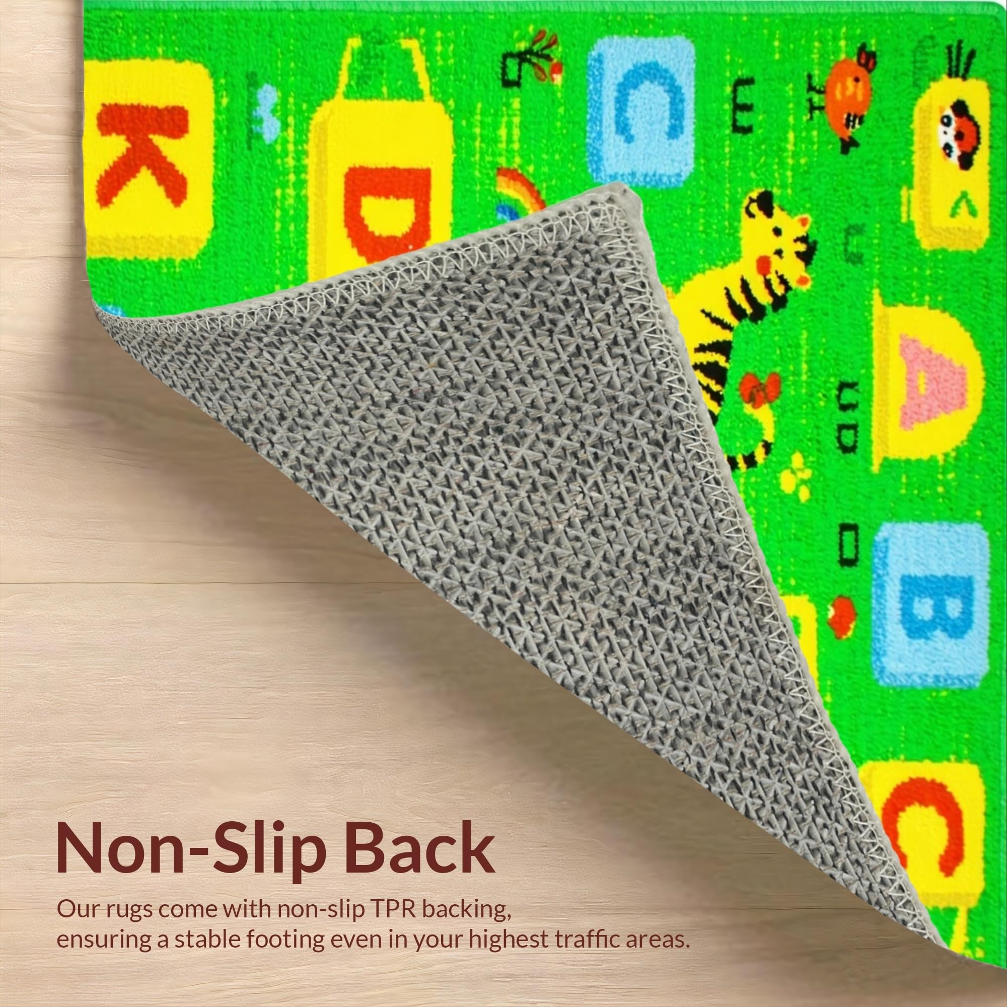 Ultra Soft Area Rug, Non Slip, Stain Resistant, Washable Area Rugs for Living Room, Bedroom, Vibrant Alphabet Animal Theme(Green) Overview: