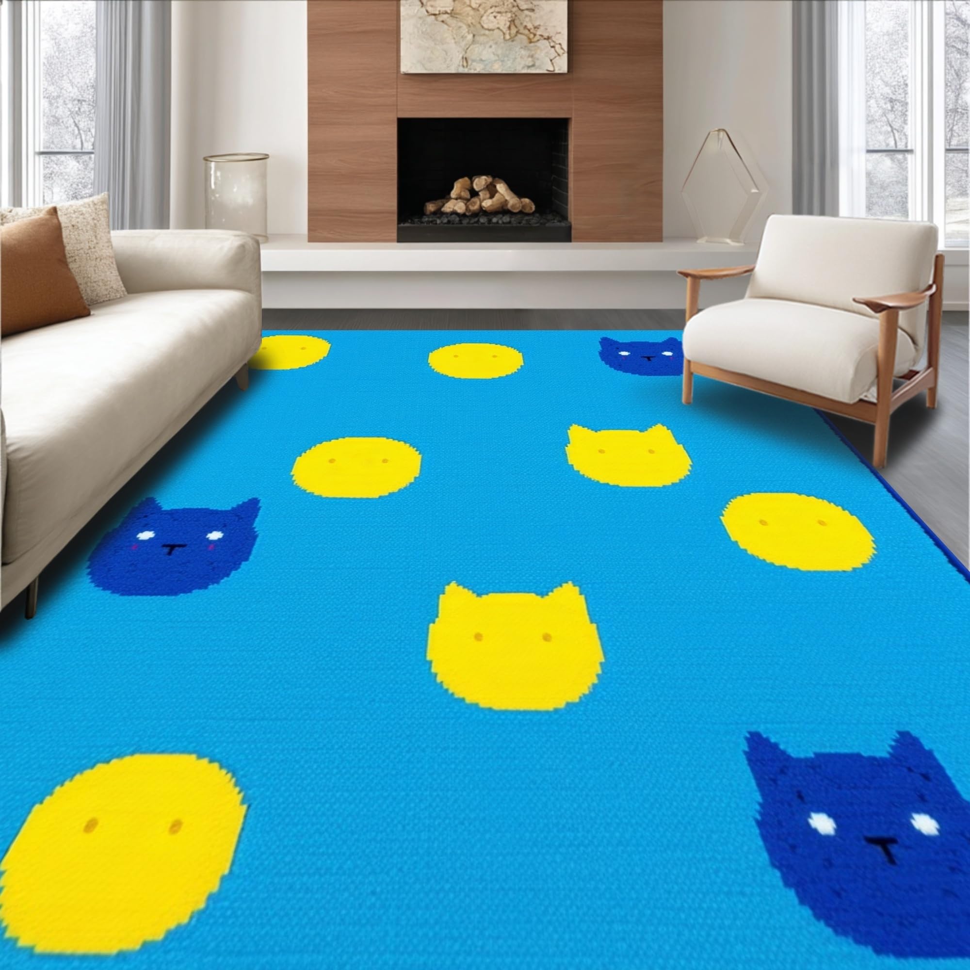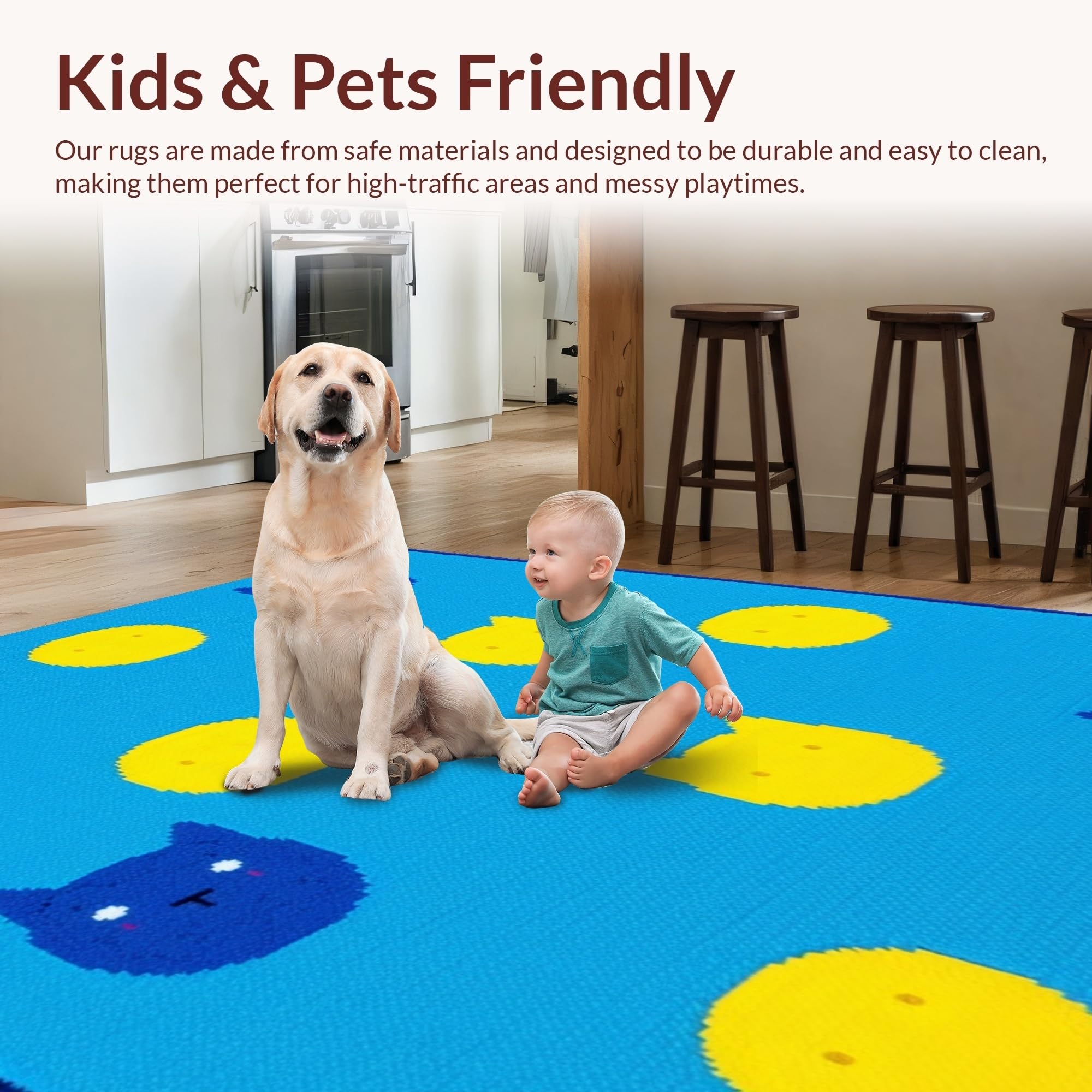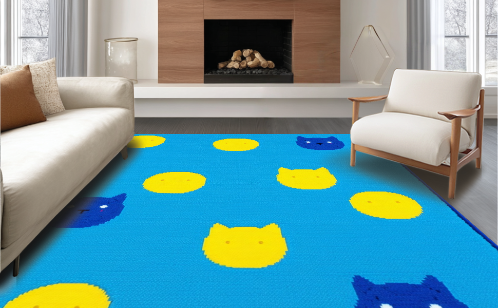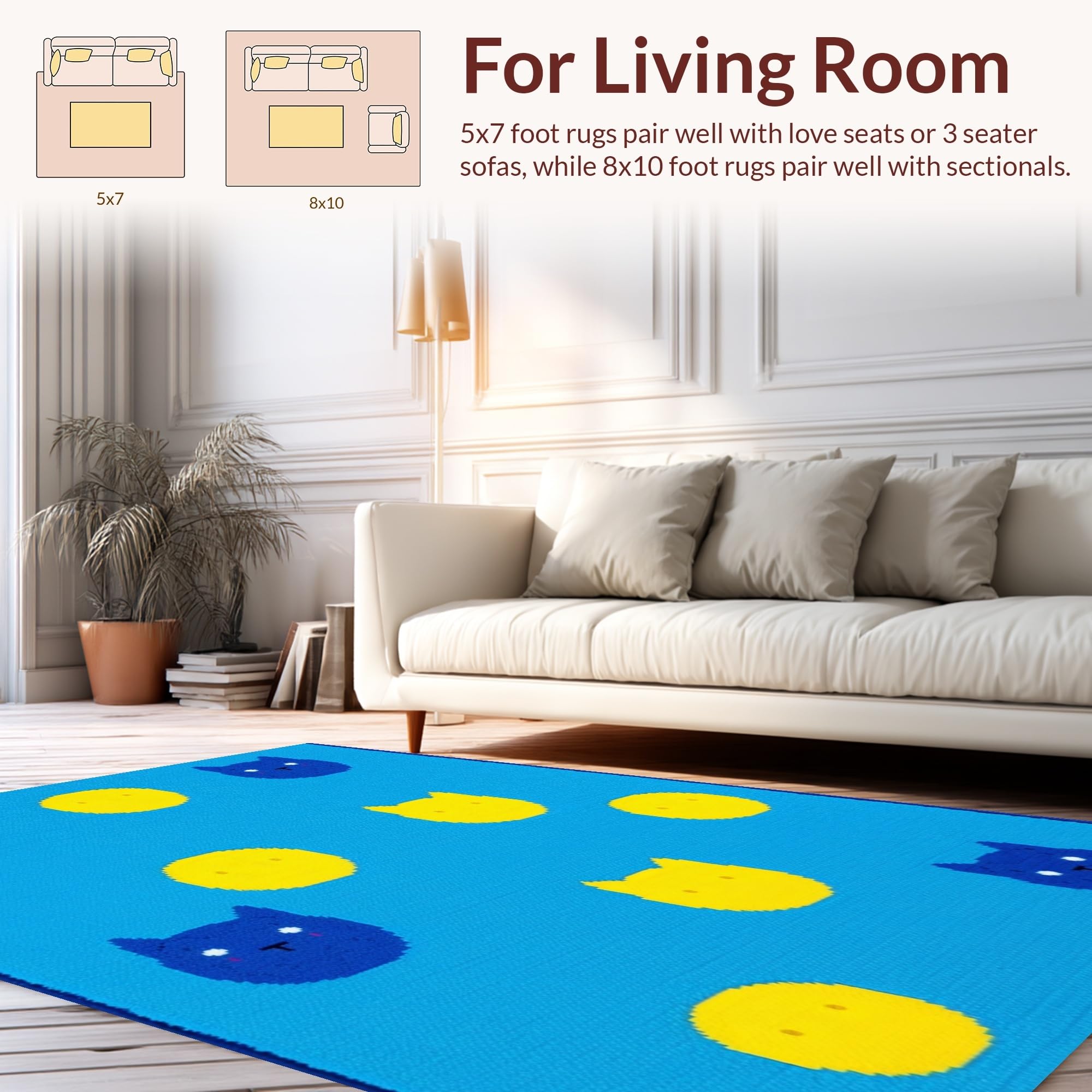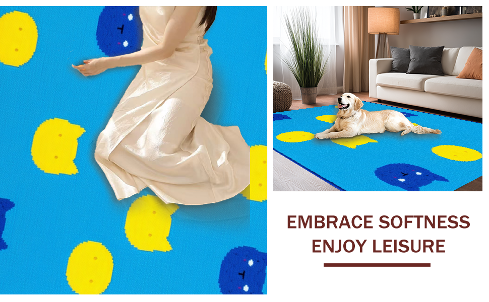 Ultra Soft Area Rug, Non Slip, Stain Resistant, Washable Area Rugs for Living Room, Bedroom, Vibrant Alphabetic Geometric Aesthetic(Blue) Overview: