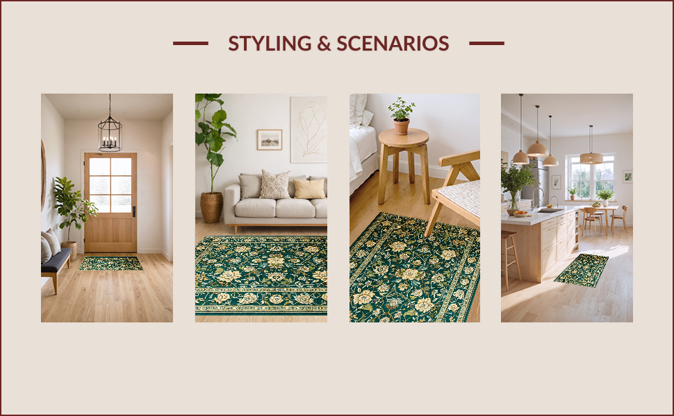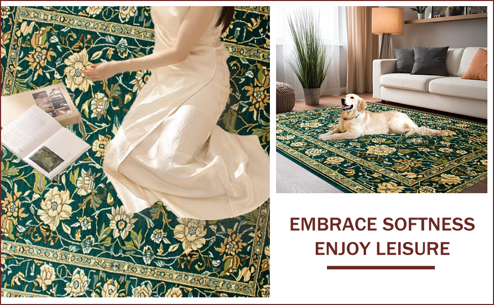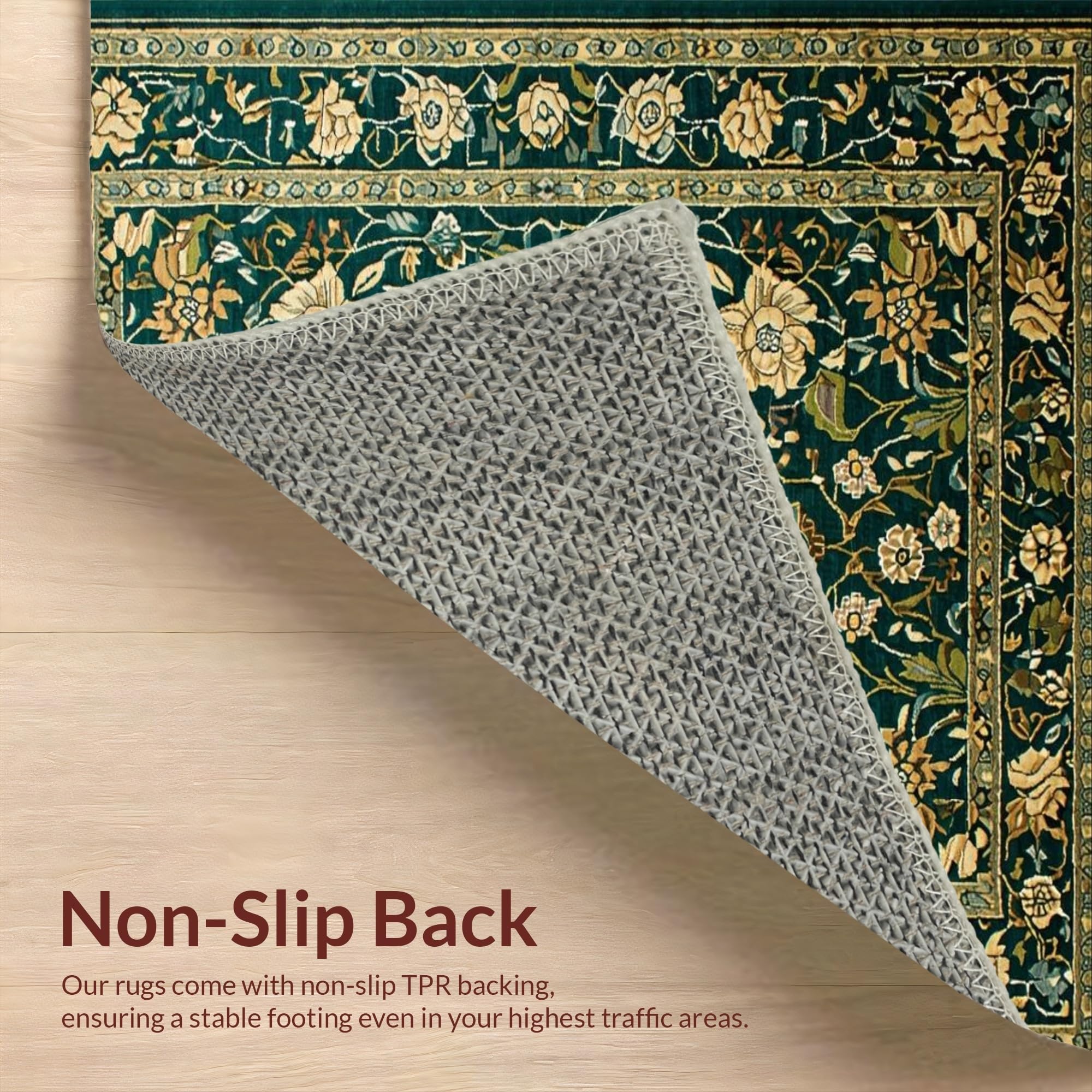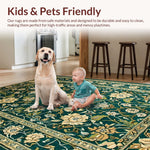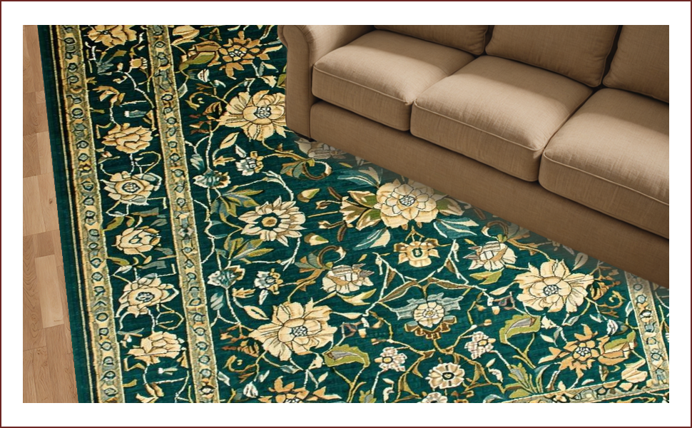 Ultra Soft Area Rug, Non Slip, Stain Resistant, Washable Area Rugs for Living Room, Bedroom, Vibrant Antique Botanical Style(Blue) Overview: