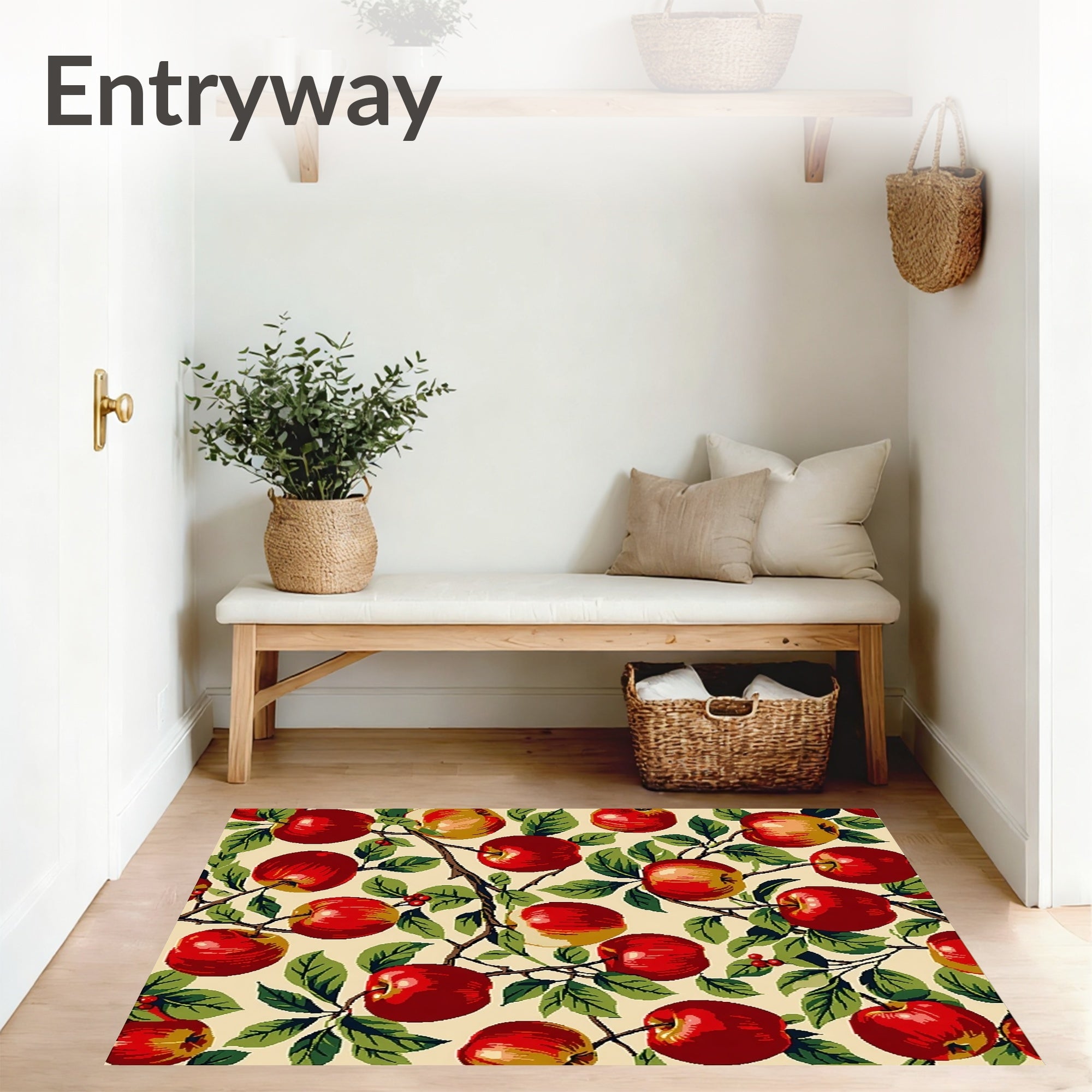 Ultra Soft Area Rug, Non Slip, Stain Resistant, Washable Area Rugs for Living Room, Bedroom, Vibrant Apple Orchard Kitchen Mats Non Slip Bedside Area(Red) Overview: