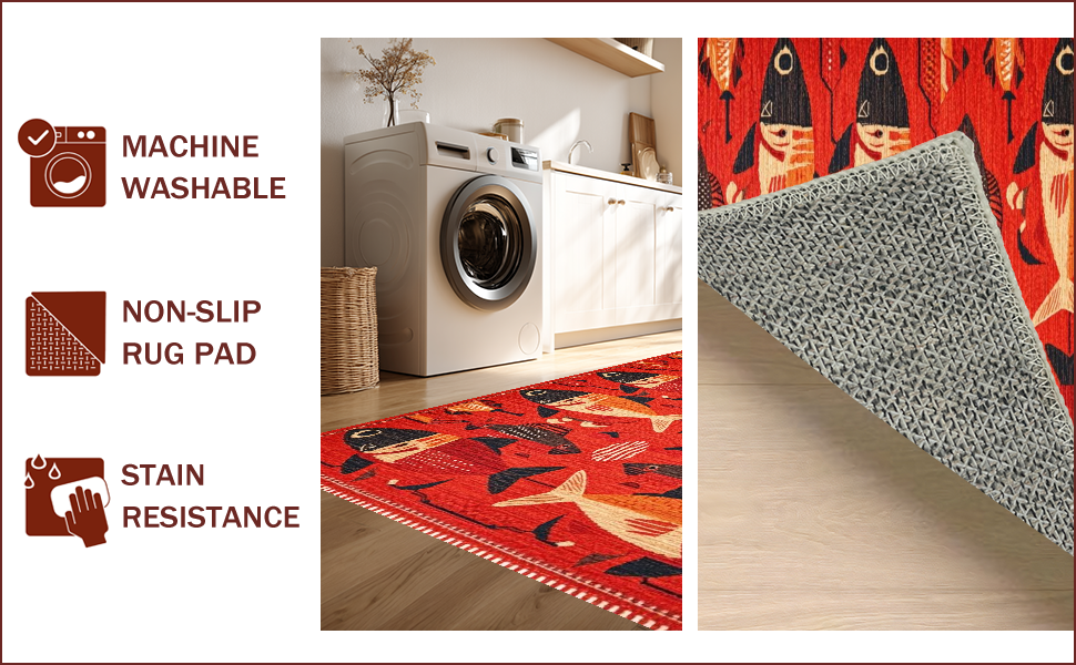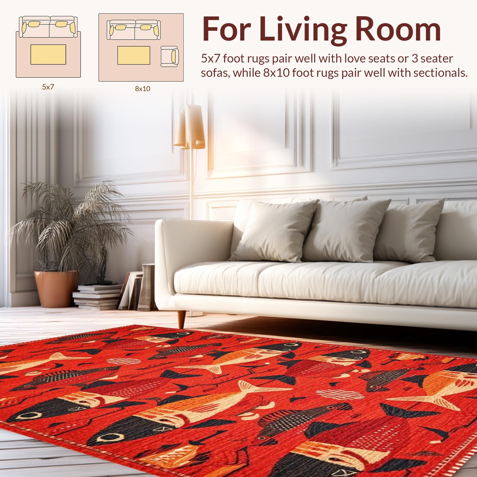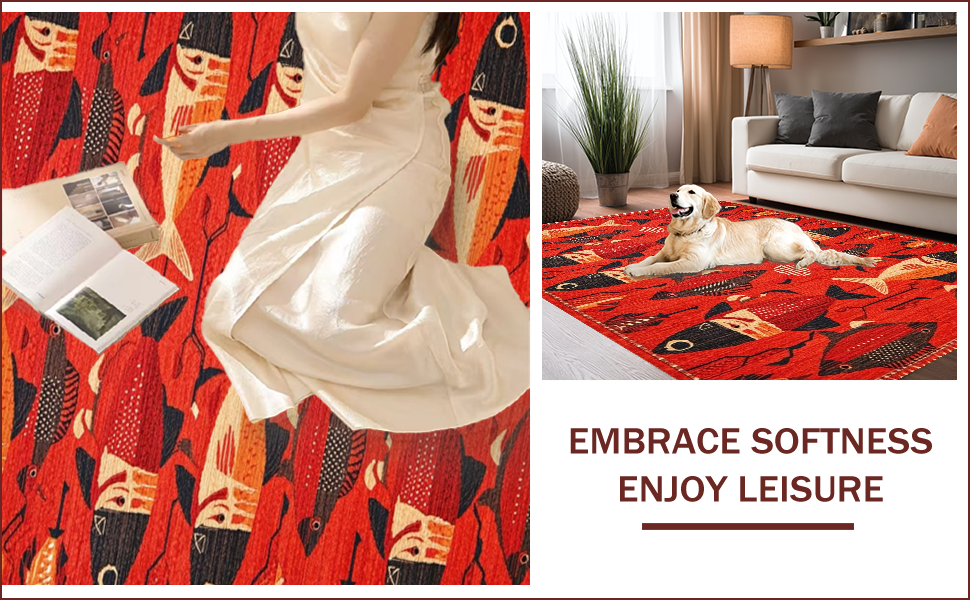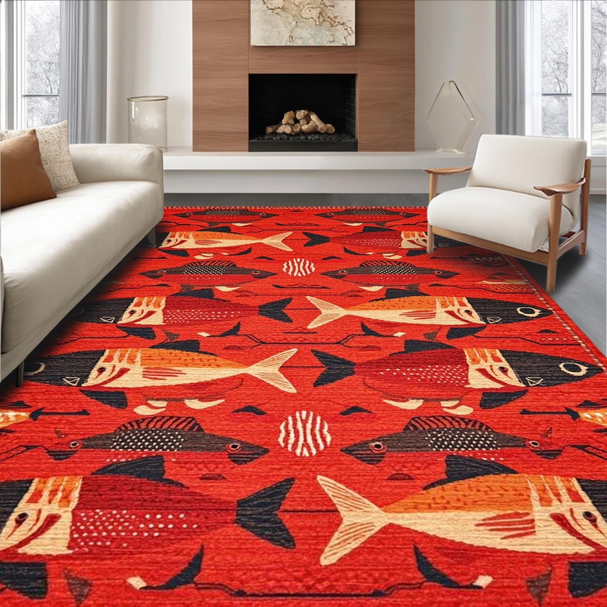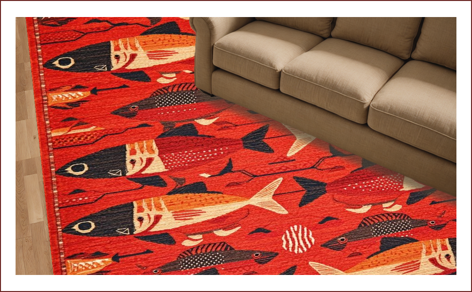 Ultra Soft Area Rug, Non Slip, Stain Resistant, Washable Area Rugs for Living Room, Bedroom, Vibrant Aquatic Artistry Theme(Red) Overview: