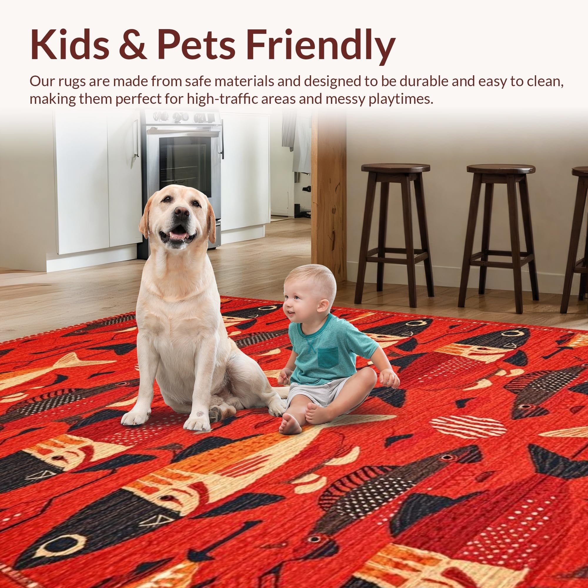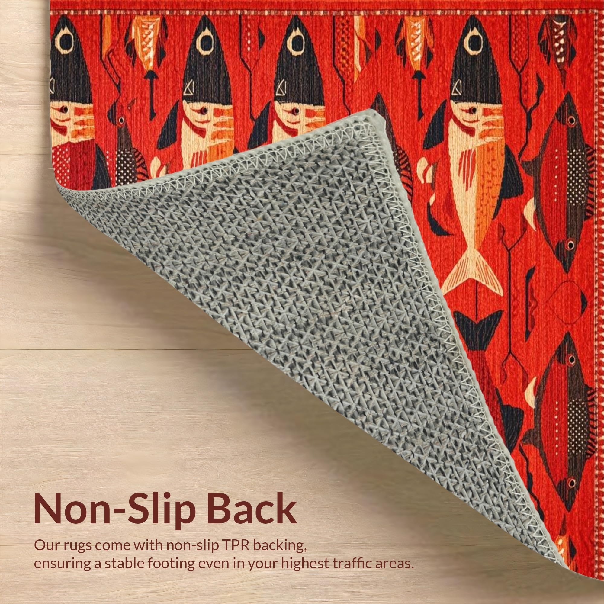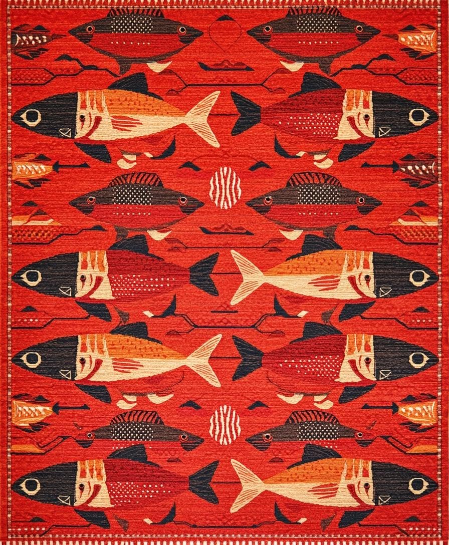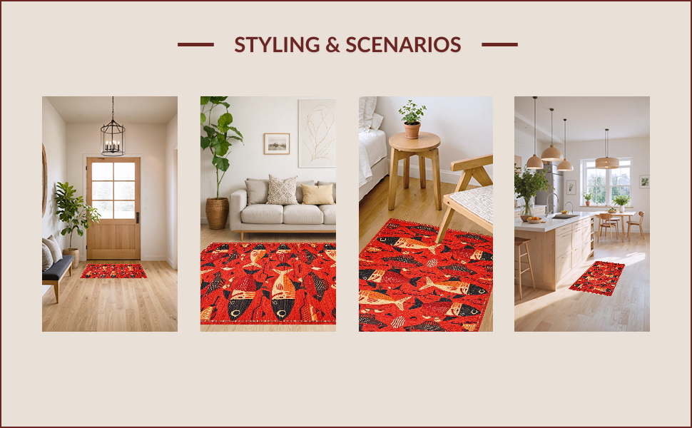 Ultra Soft Area Rug, Non Slip, Stain Resistant, Washable Area Rugs for Living Room, Bedroom, Vibrant Aquatic Artistry Theme(Red) Overview: