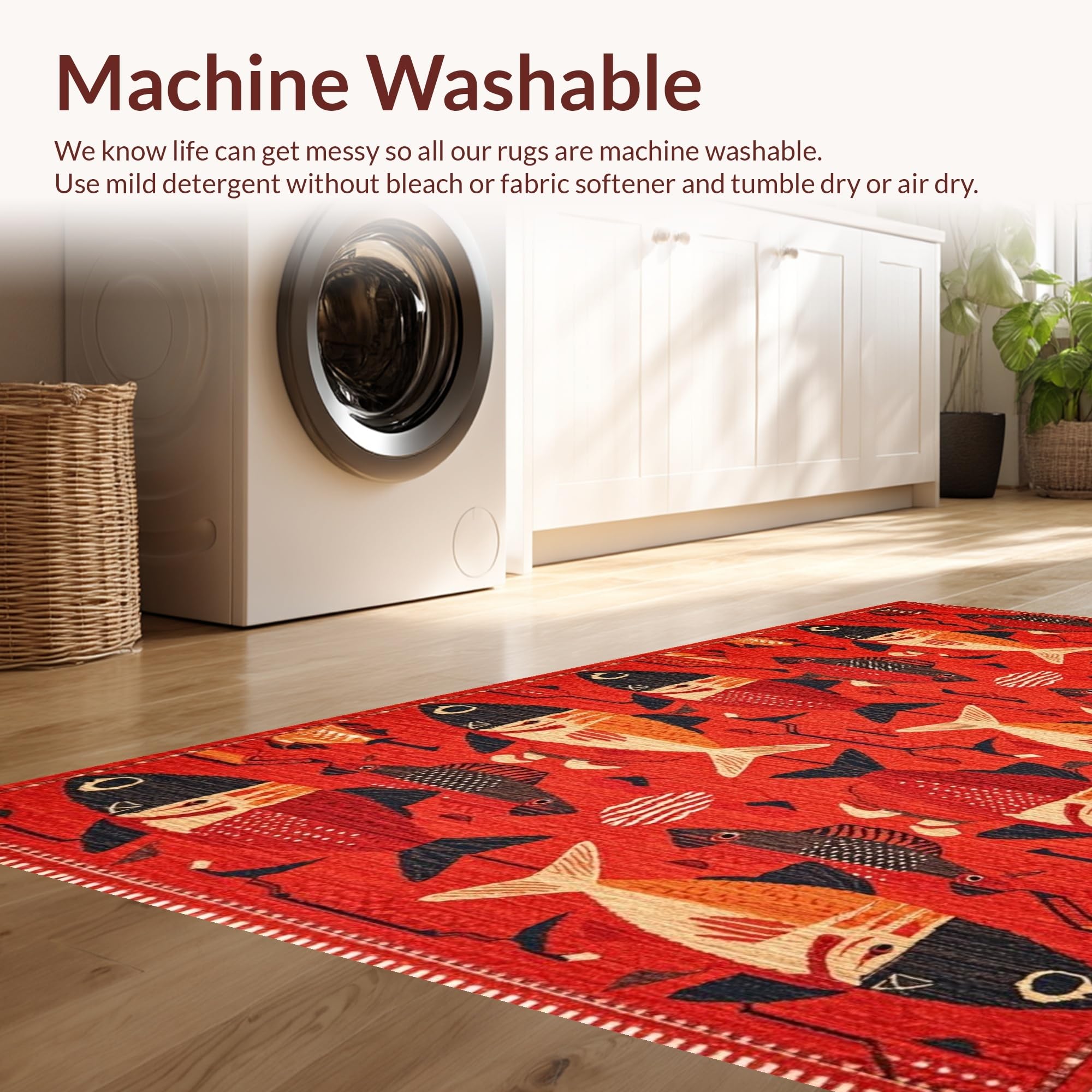 - Machine Washable: Our rugs can be easily thrown in the wash machine.