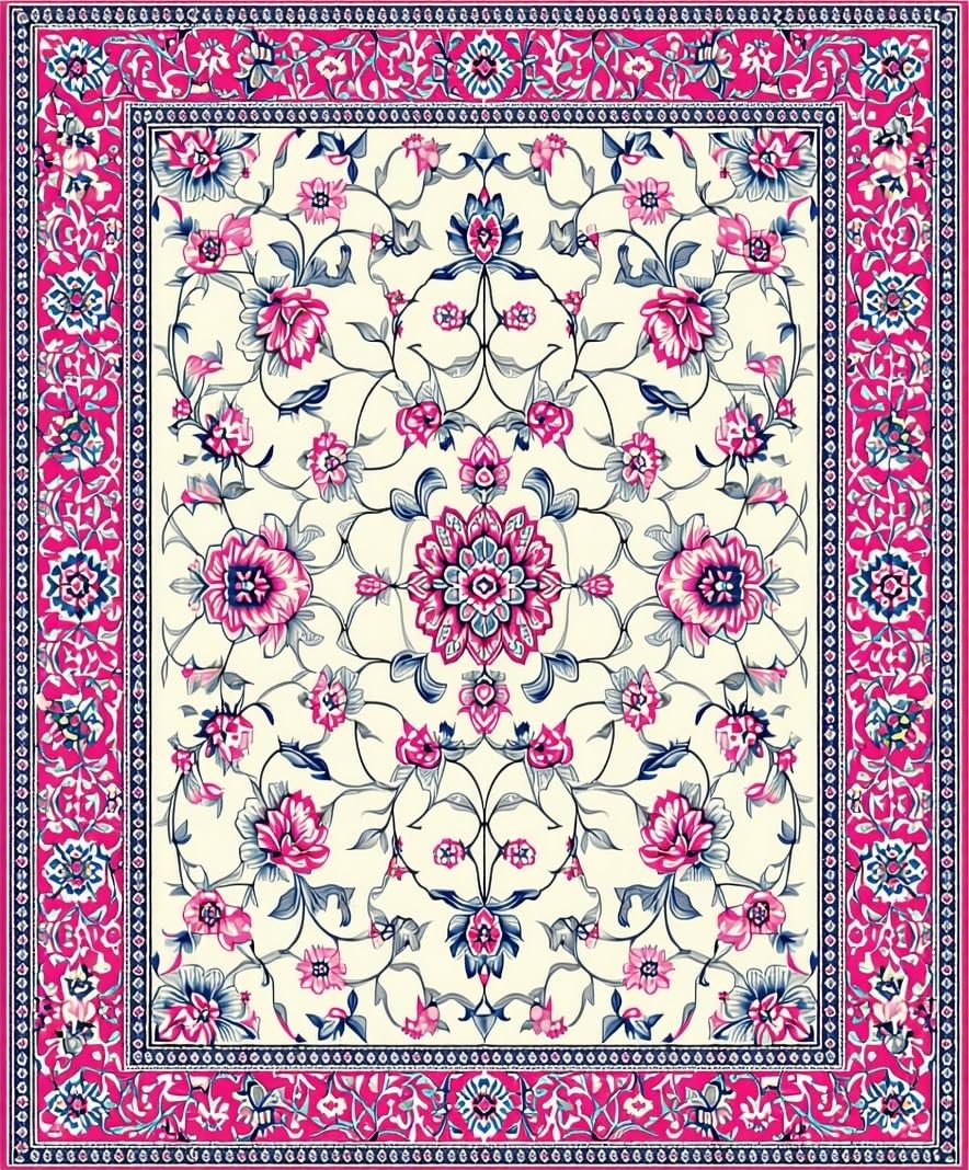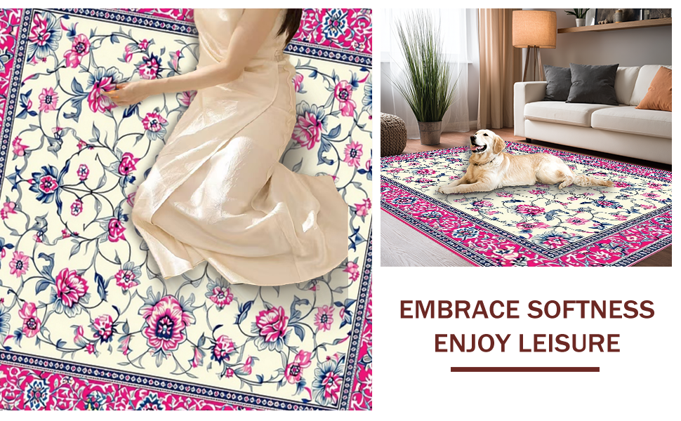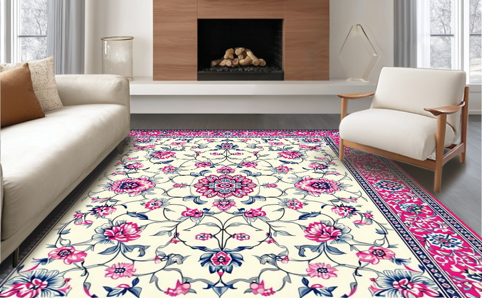 Ultra Soft Area Rug, Non Slip, Stain Resistant, Washable Area Rugs for Living Room, Bedroom, Vibrant Artful Floral Composition(White) Overview: