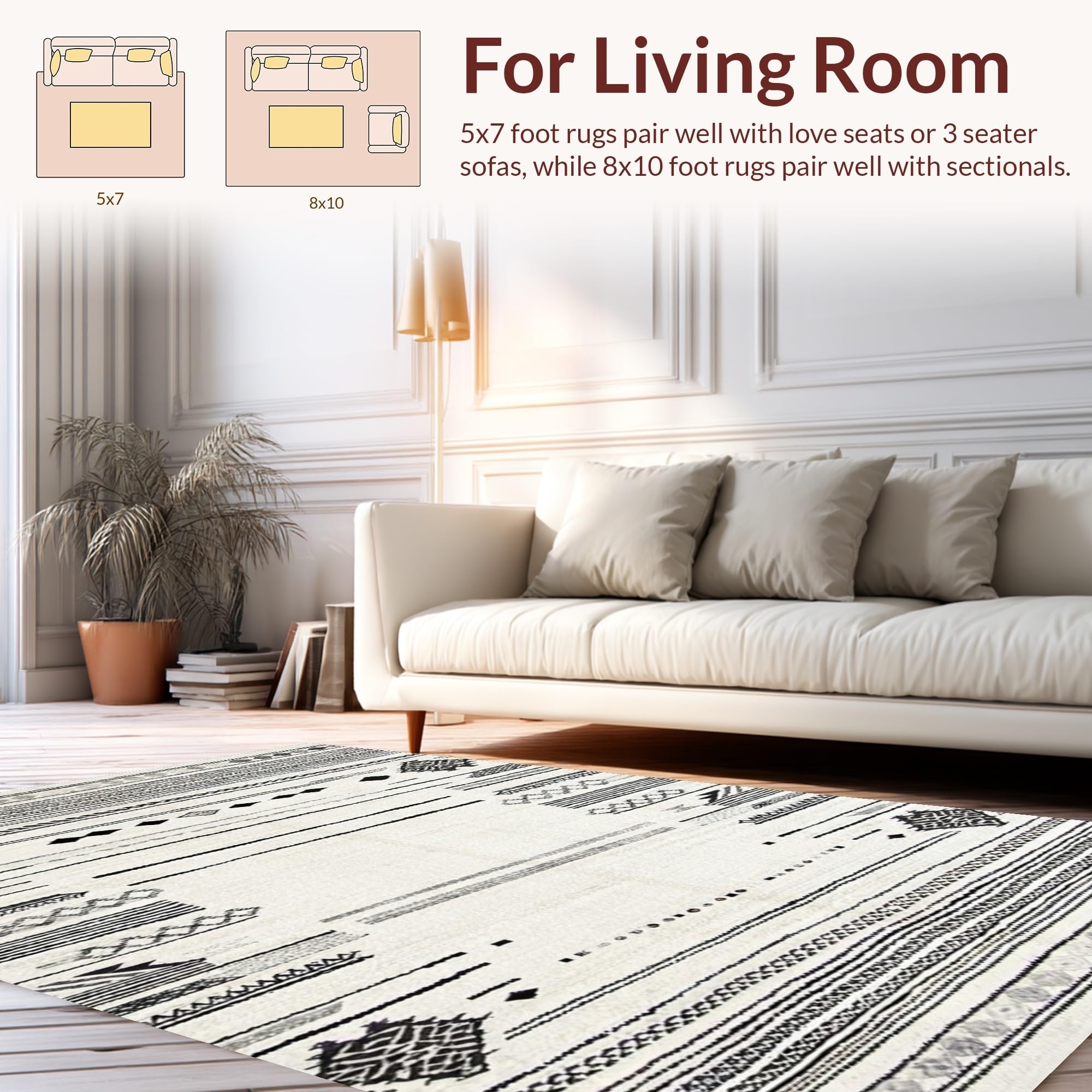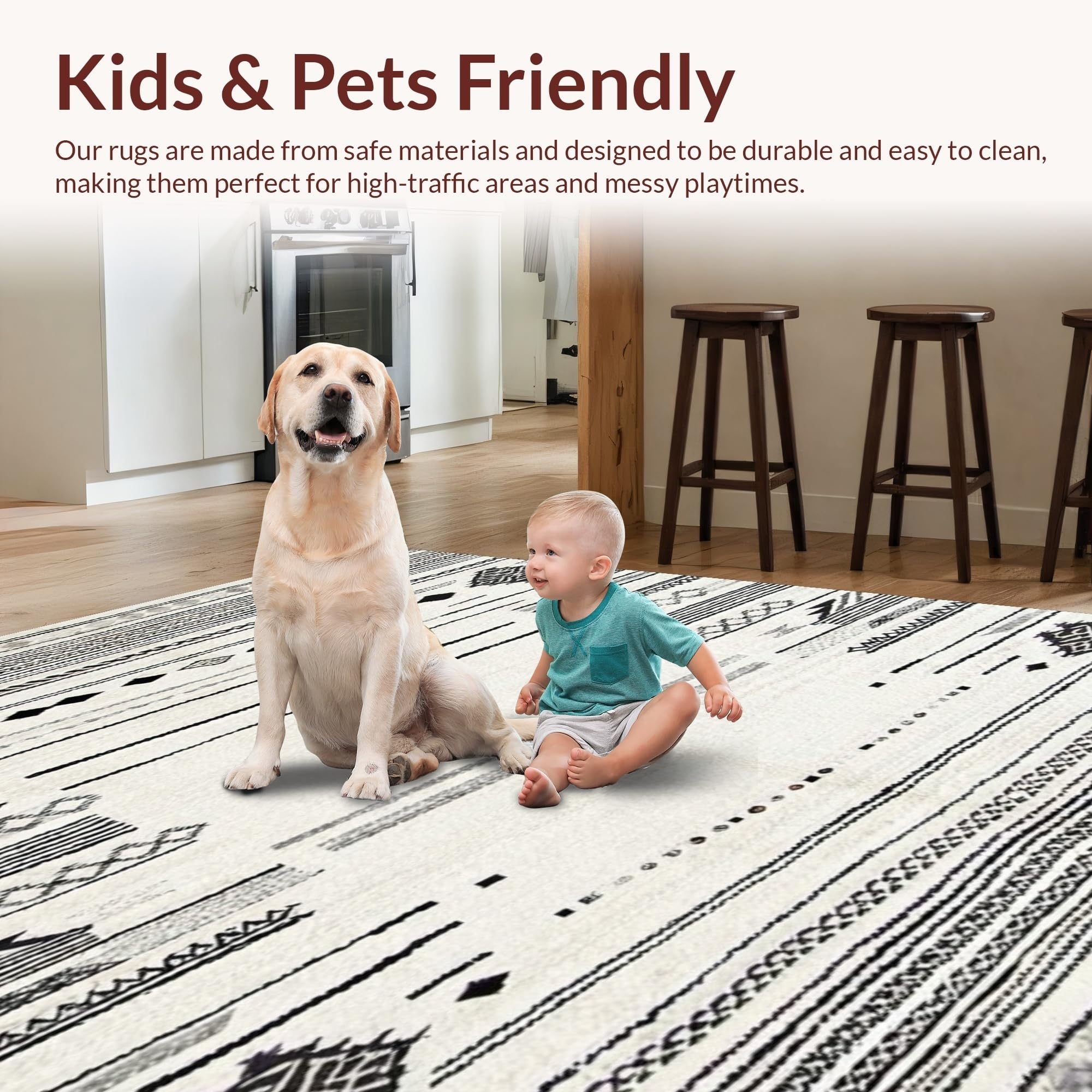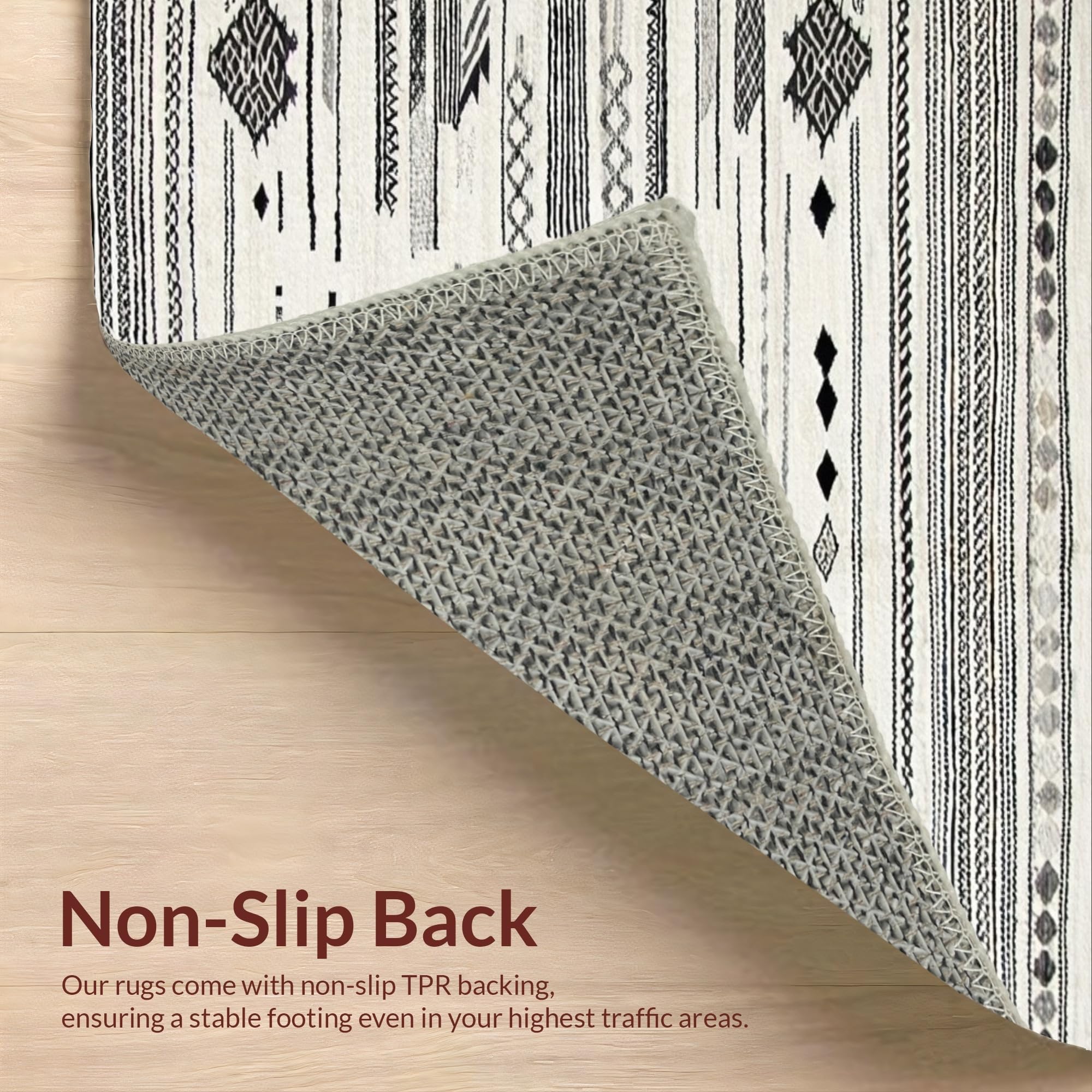 Ultra Soft Area Rug, Non Slip, Stain Resistant, Washable Area Rugs for Living Room, Bedroom, Vibrant Artistic Patterned Visuals(Black) Overview: