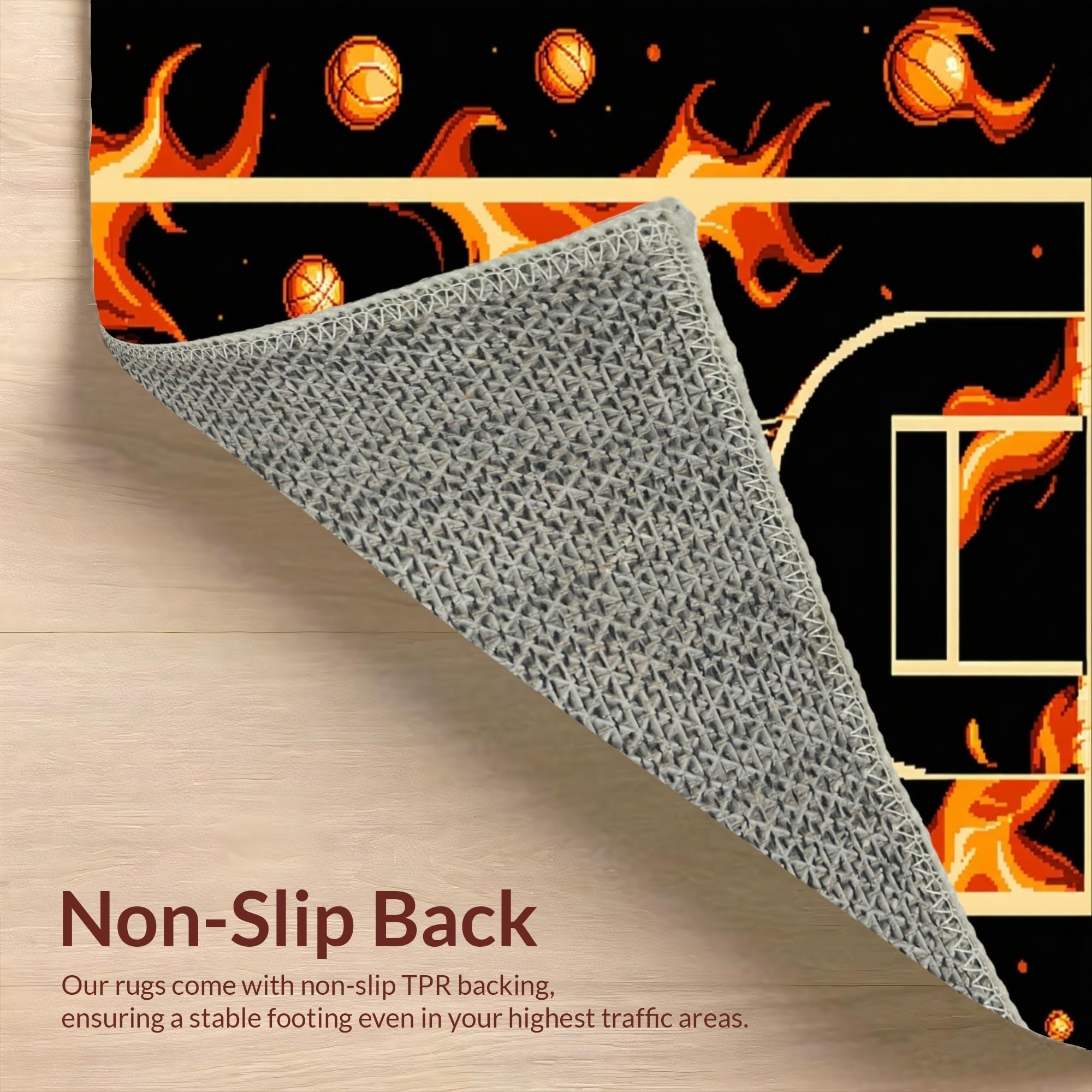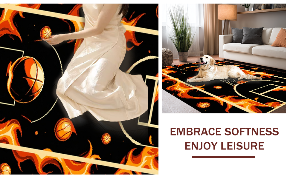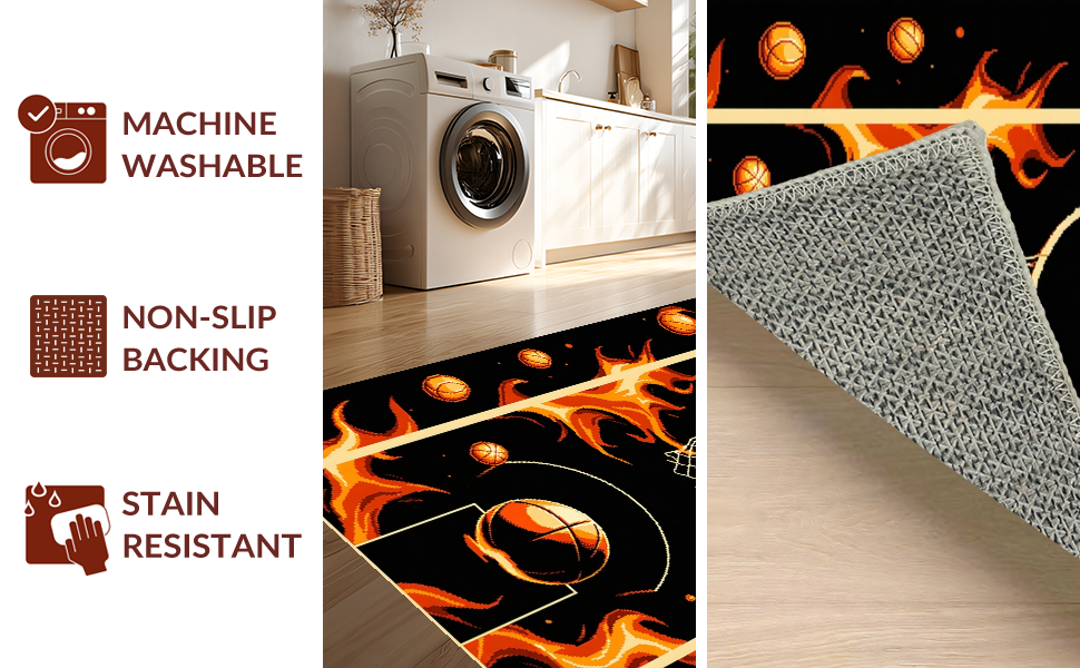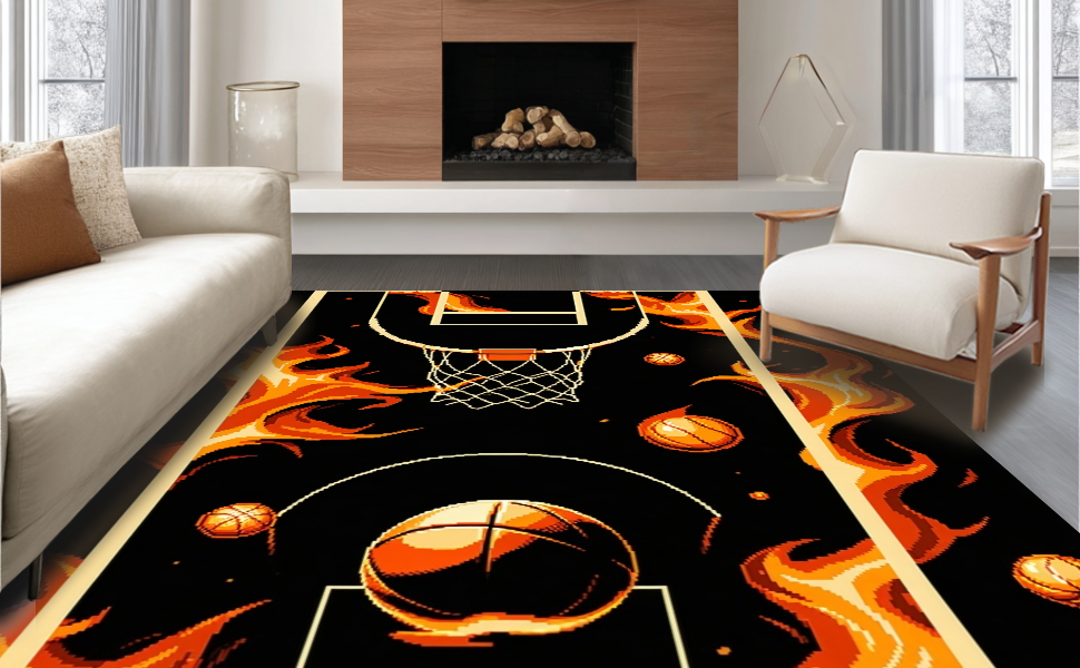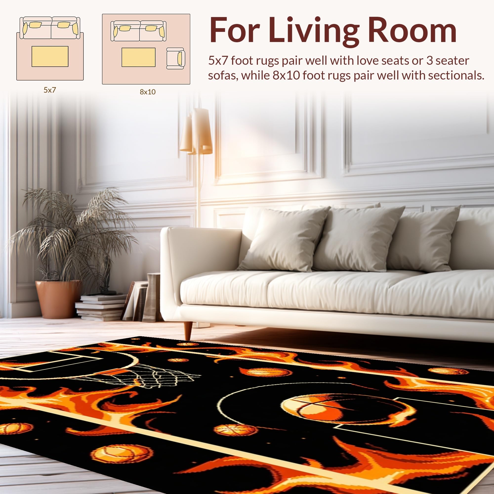 Ultra Soft Area Rug, Non Slip, Stain Resistant, Washable Area Rugs for Living Room, Bedroom, Vibrant Black Orange Aesthetic(Black) Overview: