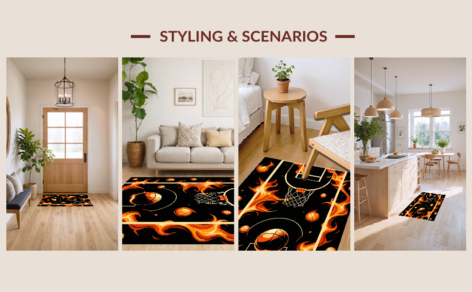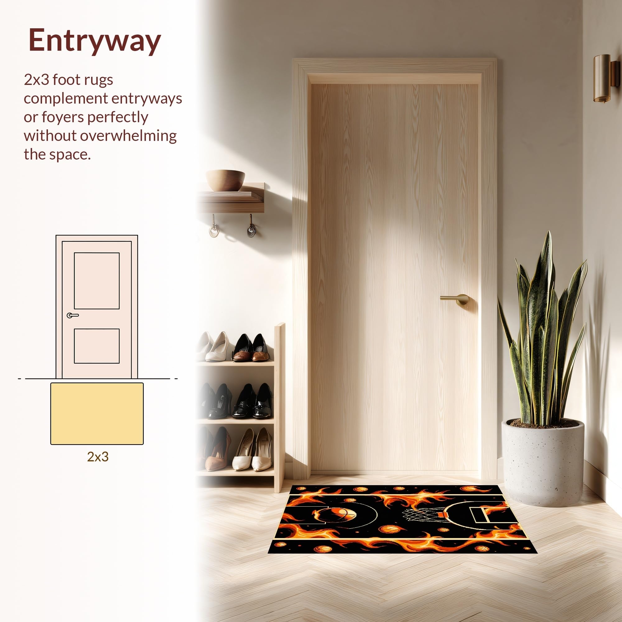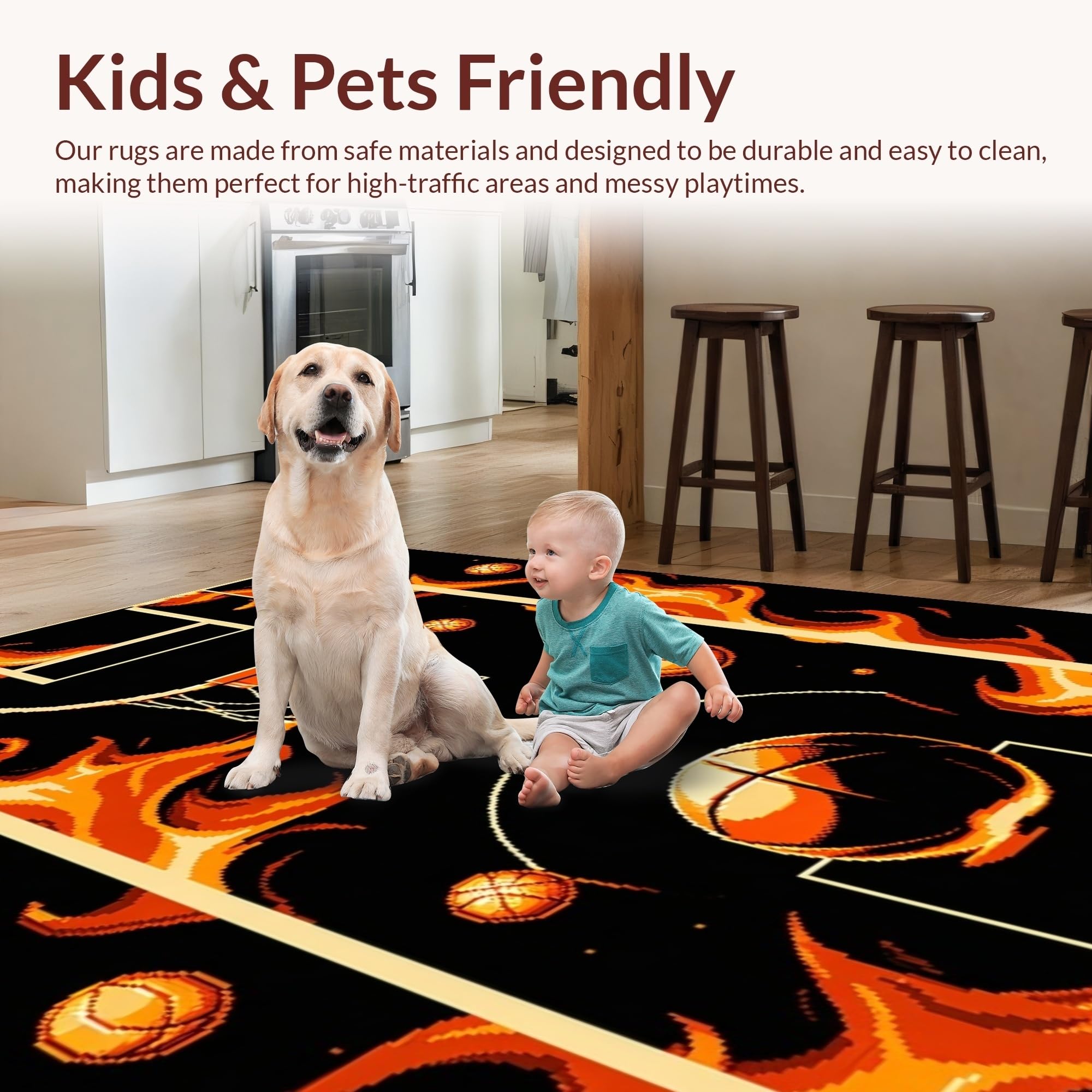 Ultra Soft Area Rug, Non Slip, Stain Resistant, Washable Area Rugs for Living Room, Bedroom, Vibrant Black Orange Aesthetic(Black) Overview: