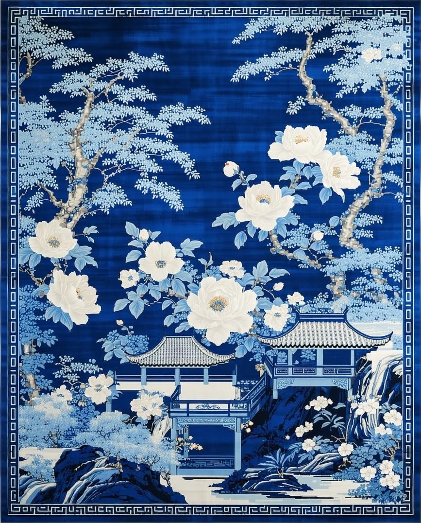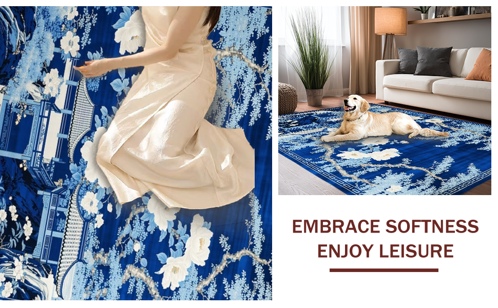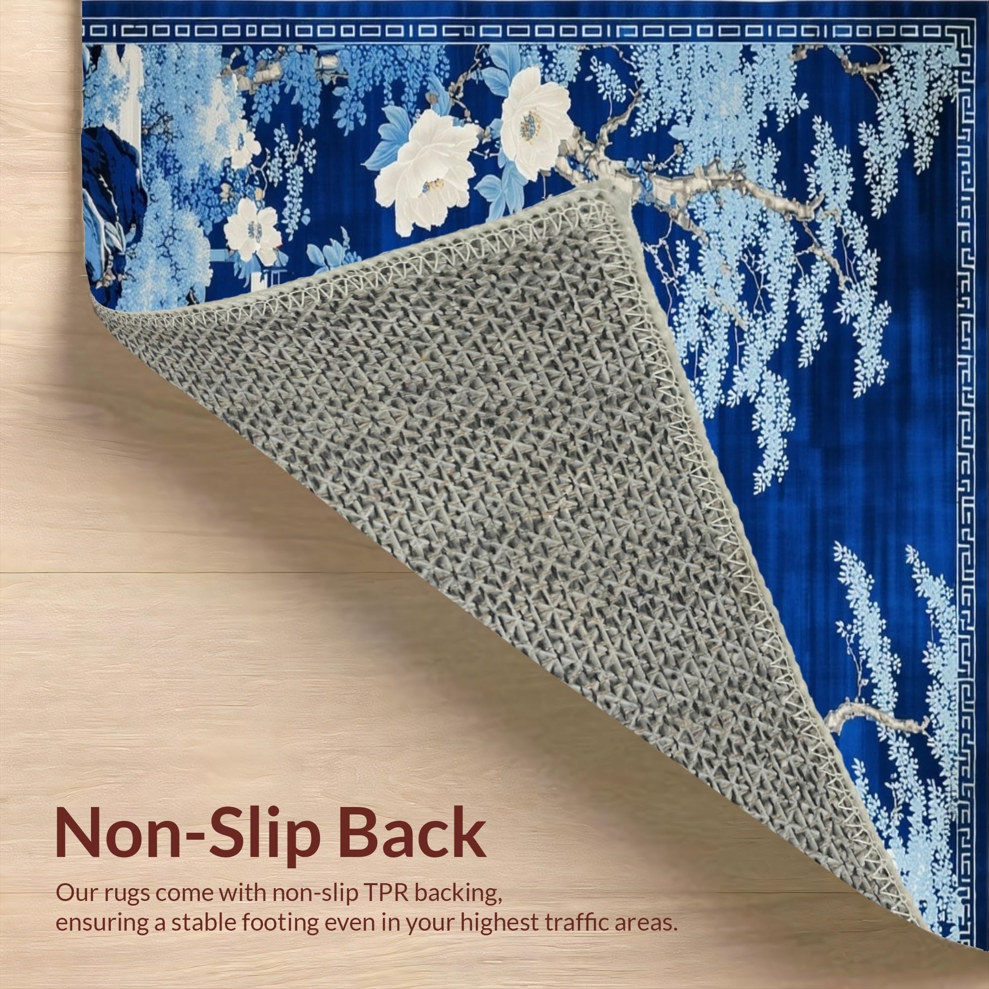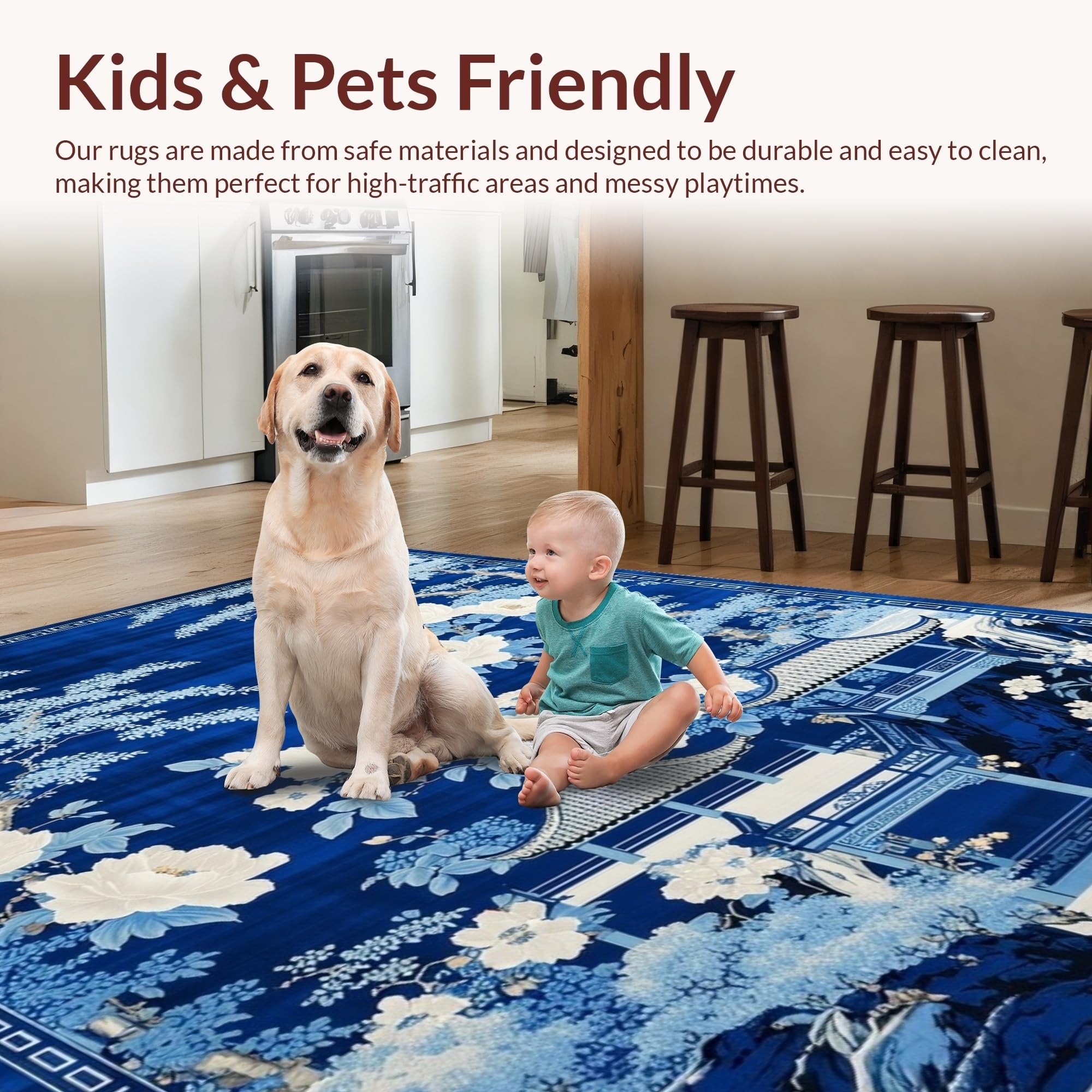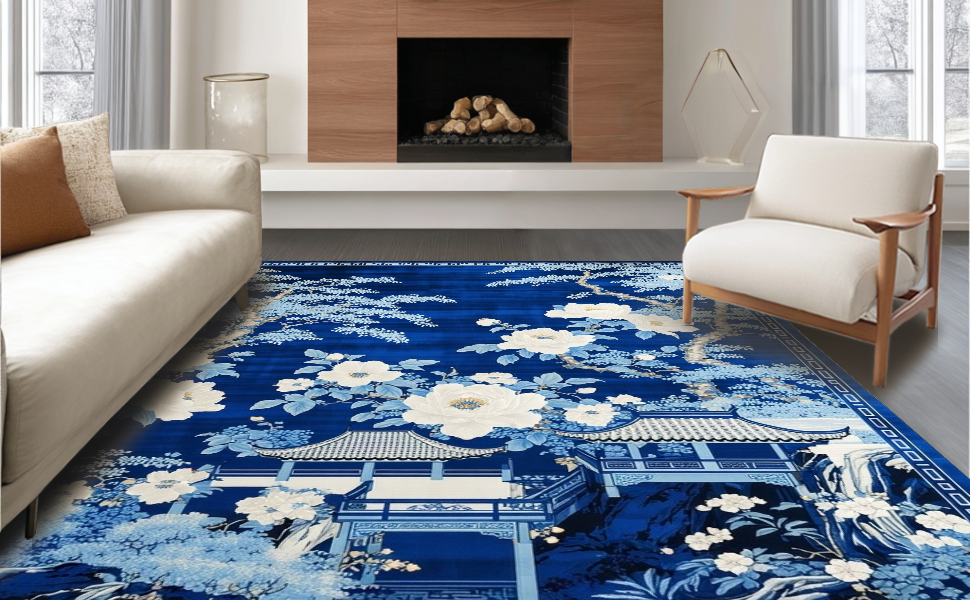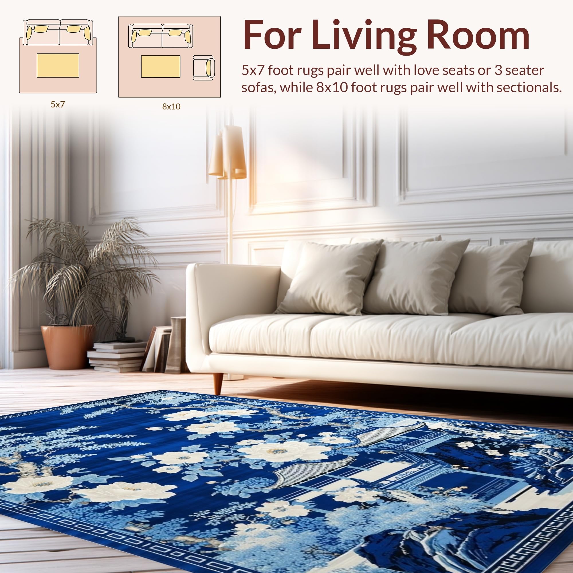 Ultra Soft Area Rug, Non Slip, Stain Resistant, Washable Area Rugs for Living Room, Bedroom, Vibrant Blue and White Trellis Artwork(Blue) Overview: