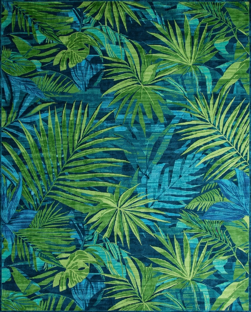 Flatwoven High Traffic Area Rug, Vibrant Boho Botanical Aesthetic, Non Slip, Stain Resistant, Washable Area Rugs for Living Room, Bedroom (Blue) Overview: