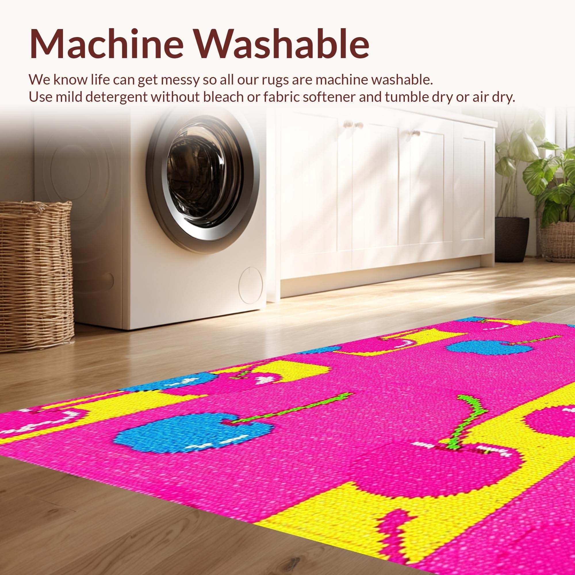 - Machine Washable: Our rugs can be easily thrown in the wash machine.