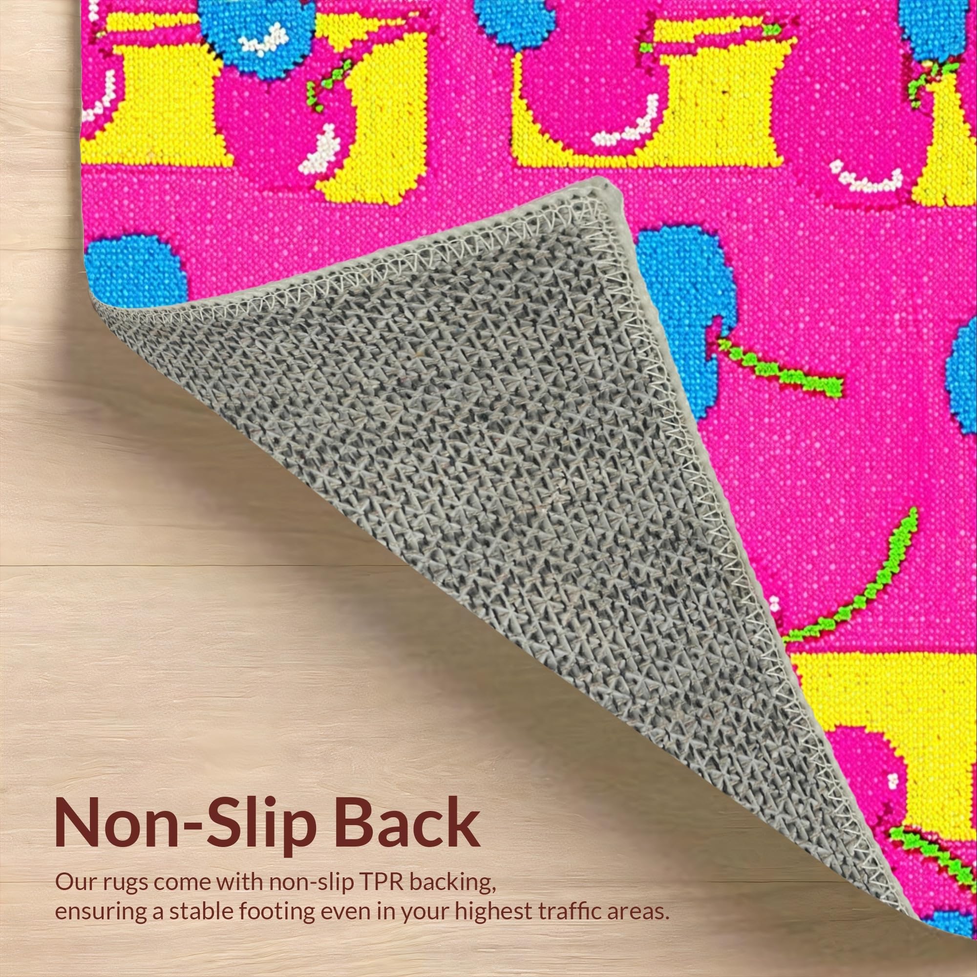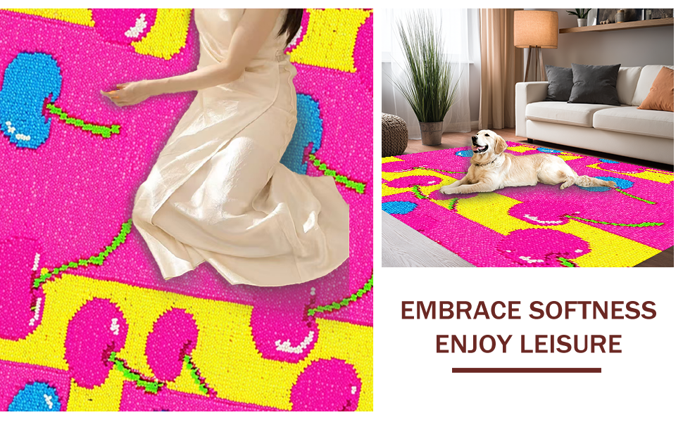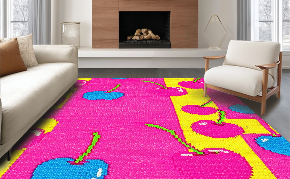 Ultra Soft Area Rug, Non Slip, Stain Resistant, Washable Area Rugs for Living Room, Bedroom, Vibrant Cartoon Floral Arrangement(Pink) Overview: