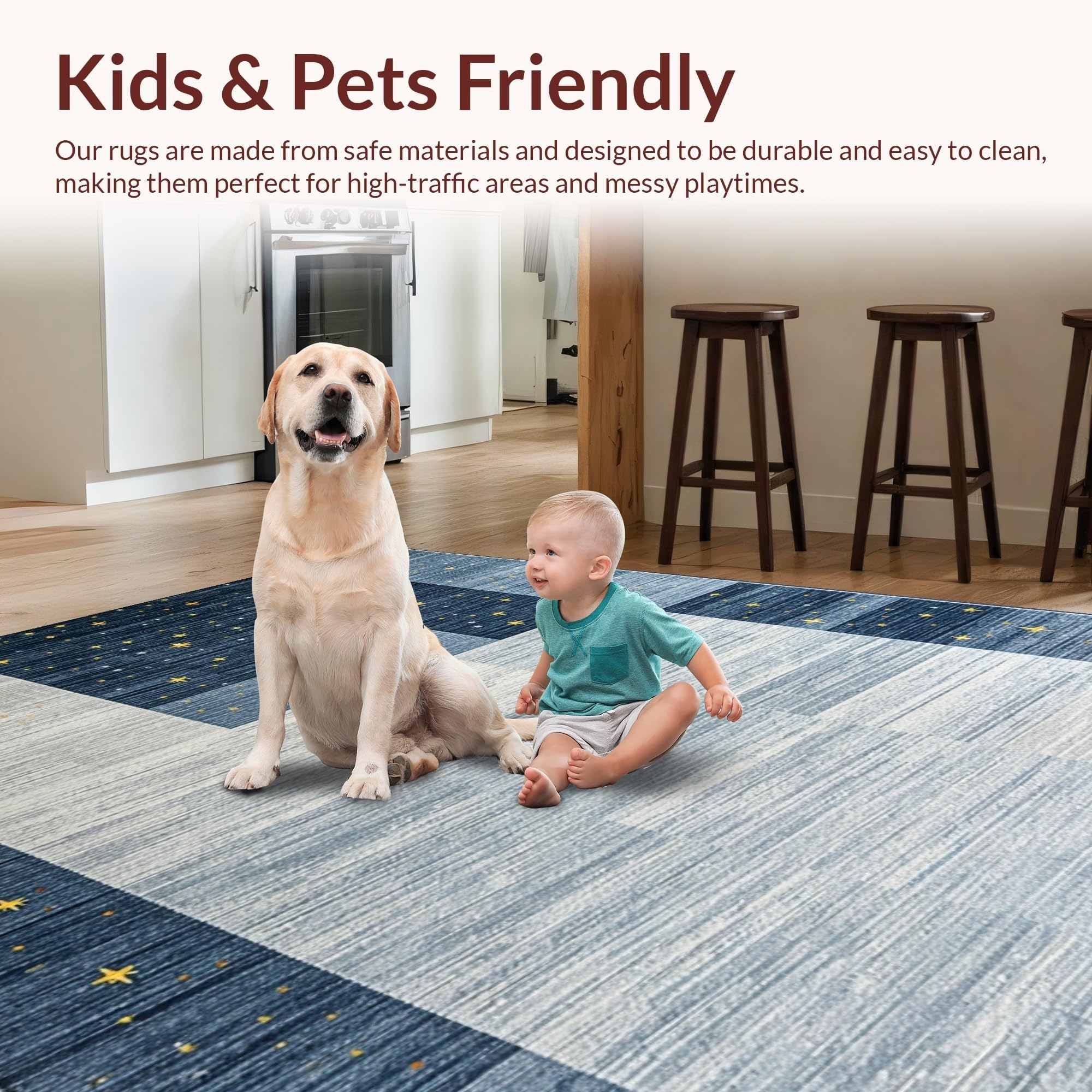 Ultra Soft Area Rug, Non Slip, Stain Resistant, Washable Area Rugs for Living Room, Bedroom, Vibrant Celestial Decor(Blue) Overview: