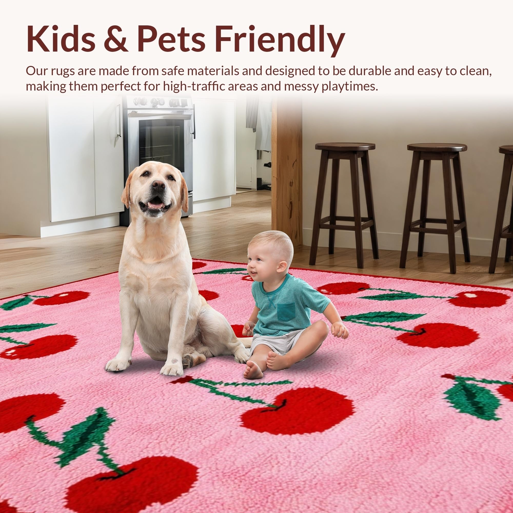 Ultra Soft Area Rug, Non Slip, Stain Resistant, Washable Area Rugs for Living Room, Bedroom, Vibrant Cheerful Nature Print(Pink) Overview: