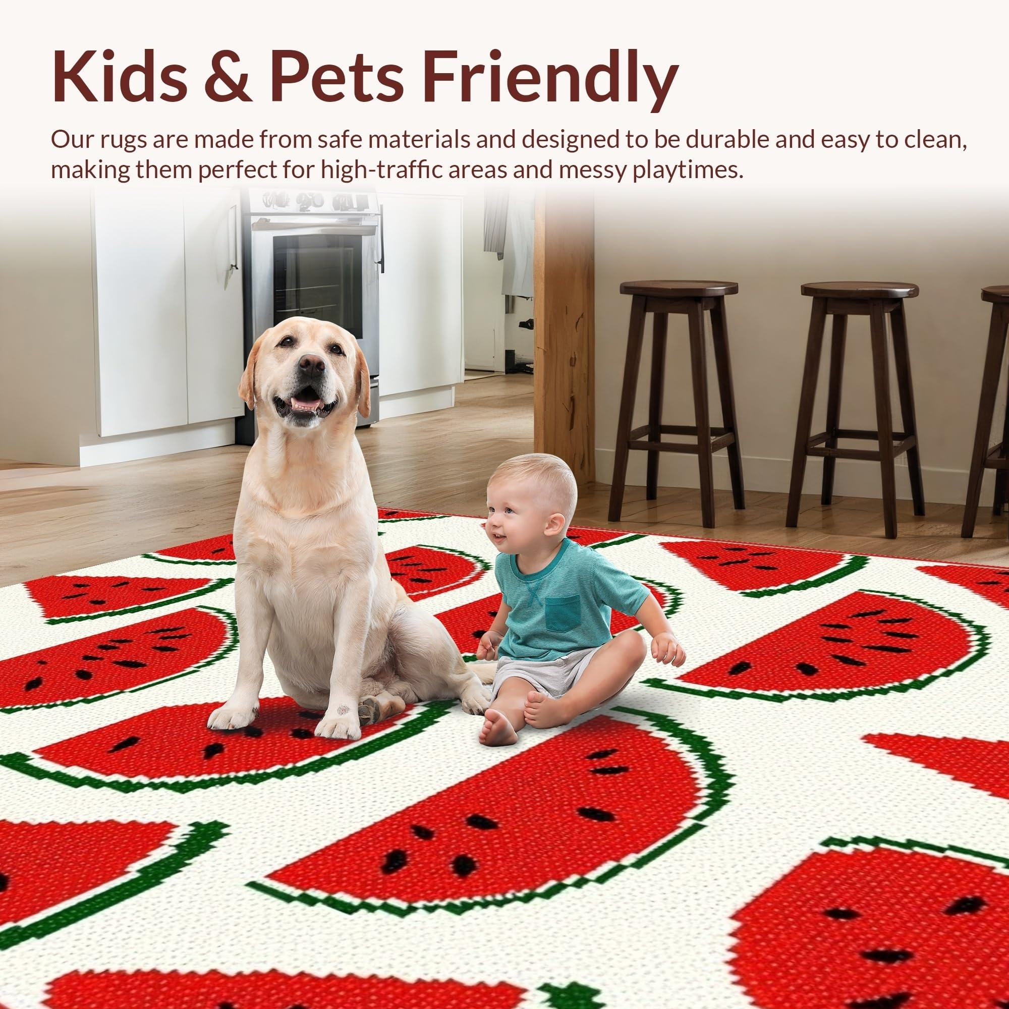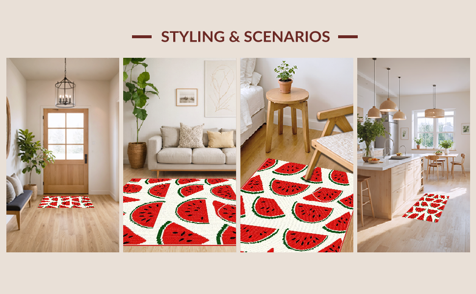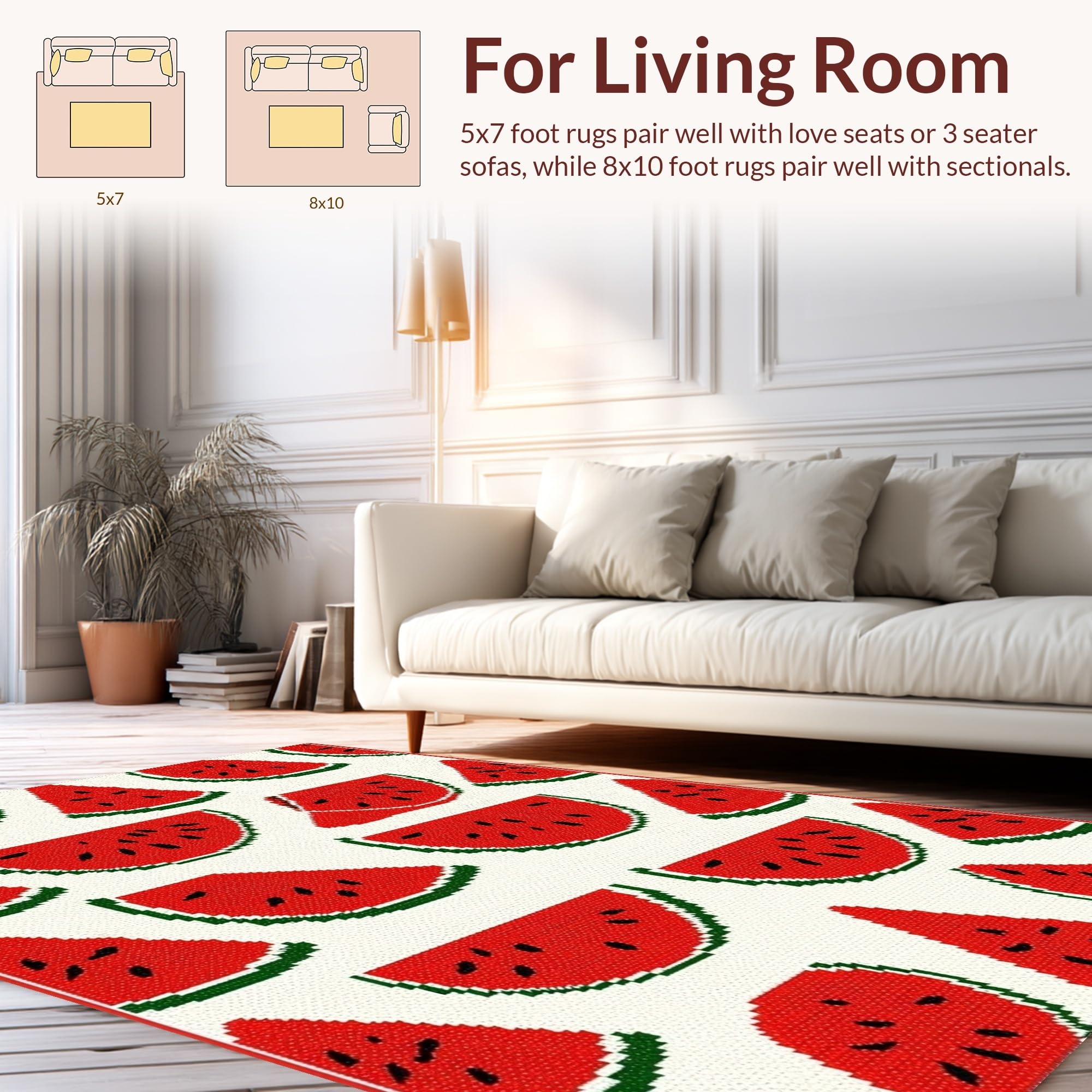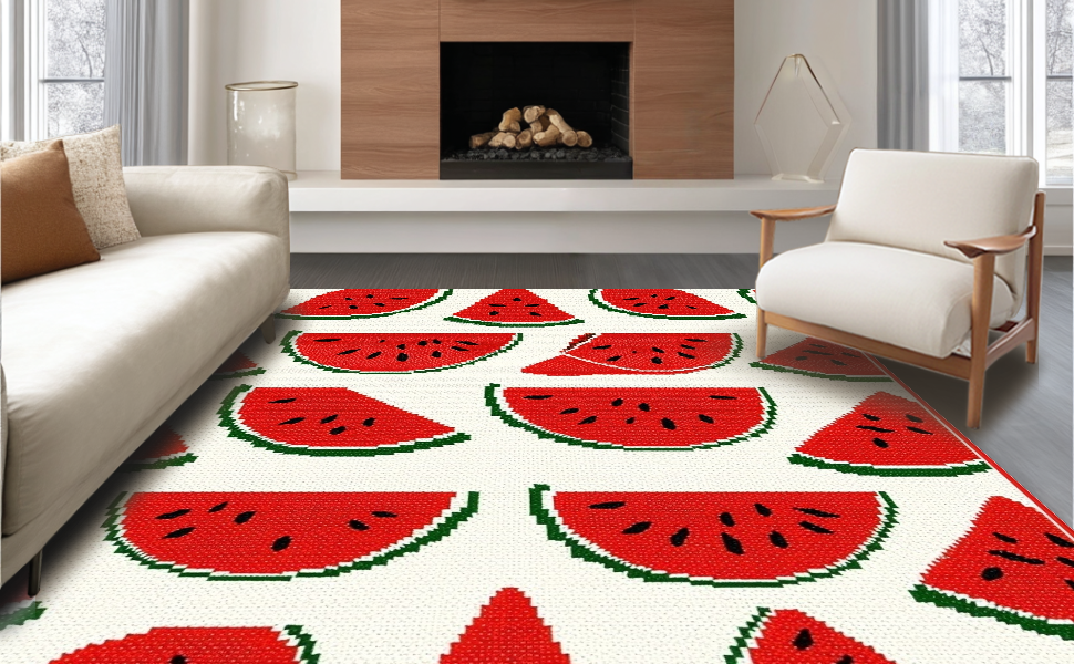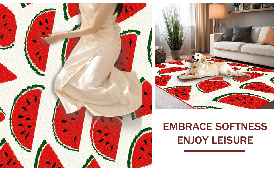 Ultra Soft Area Rug, Non Slip, Stain Resistant, Washable Area Rugs for Living Room, Bedroom, Vibrant Cheerful Watermelon Aesthetic(Red) Overview: