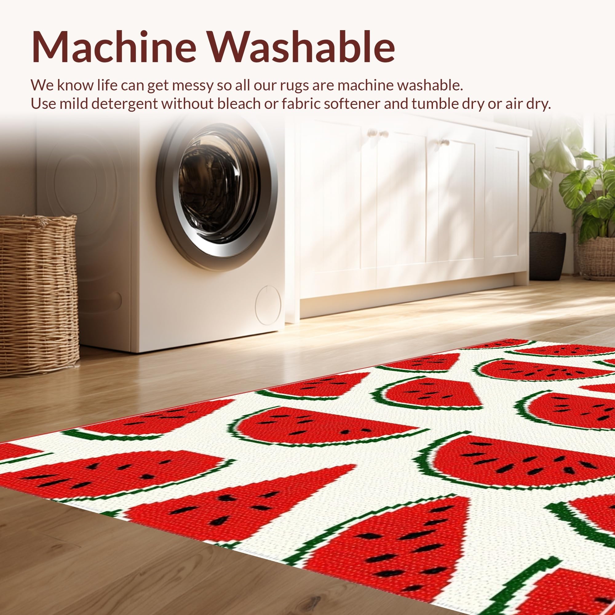 - Machine Washable: Our rugs can be easily thrown in the wash machine.