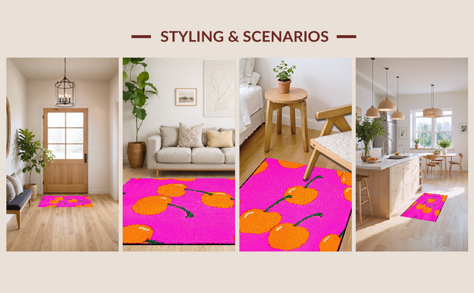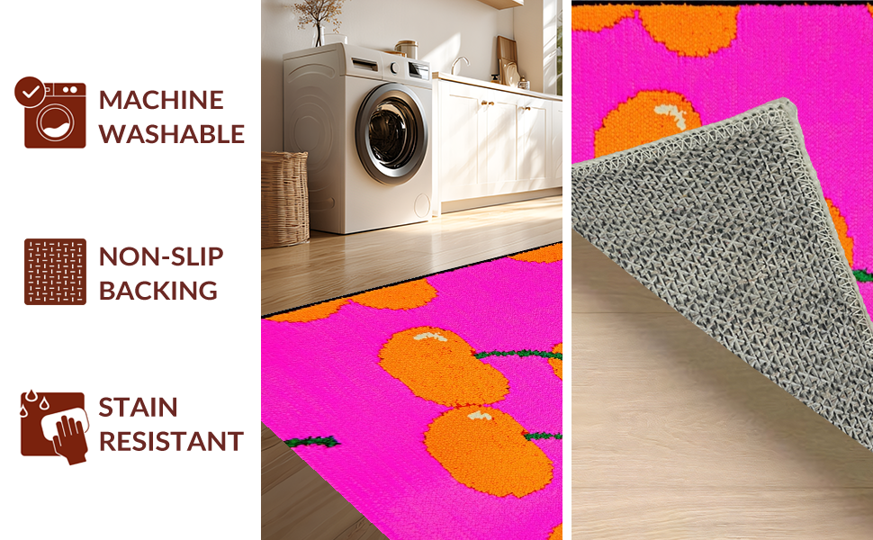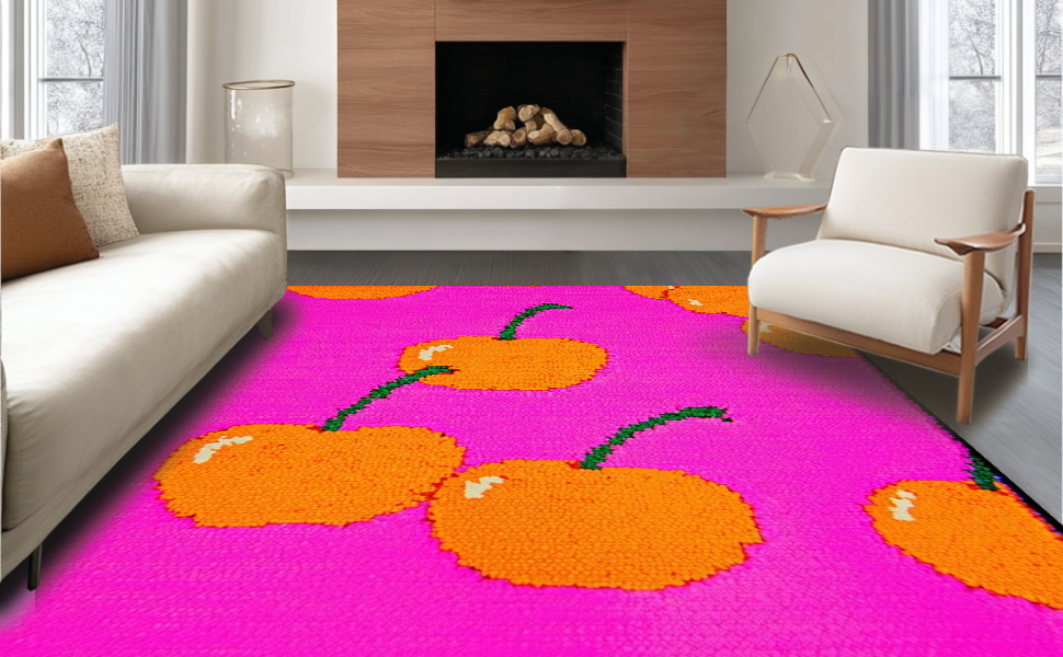Ultra Soft Area Rug, Non Slip, Stain Resistant, Washable Area Rugs for Living Room, Bedroom, Vibrant Cherry Bomb Aesthetic(Pink) Overview: