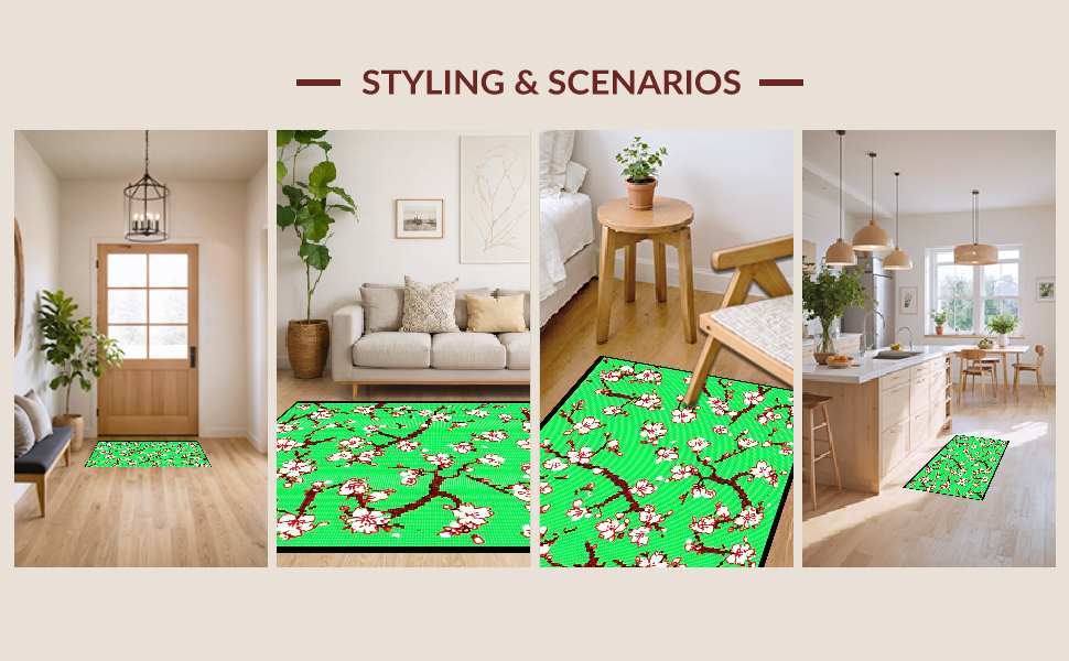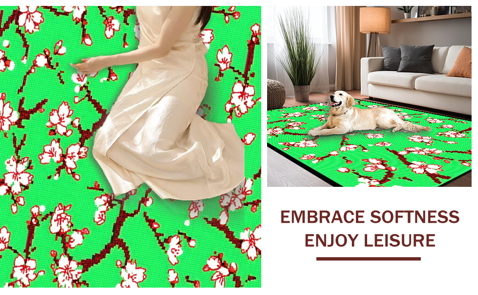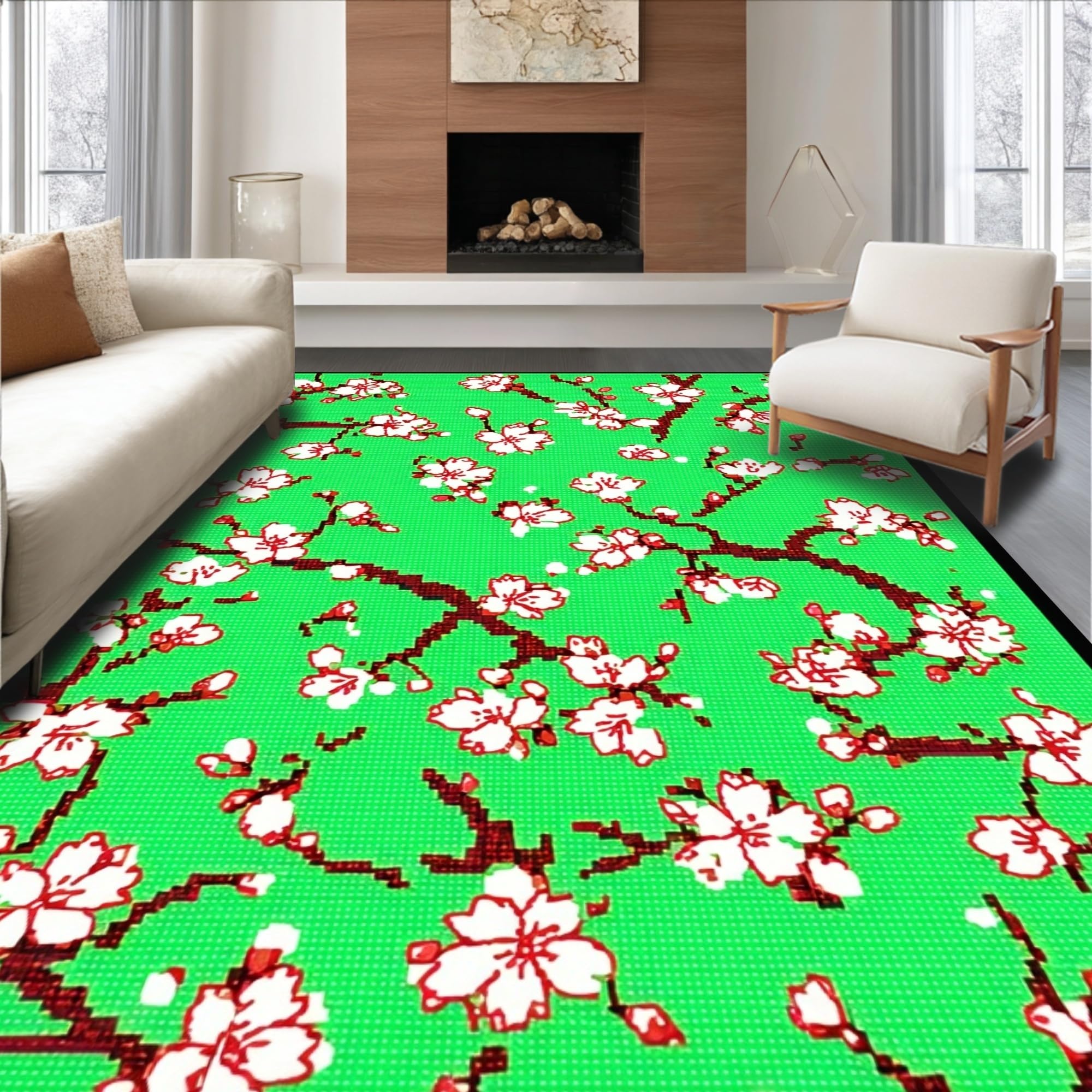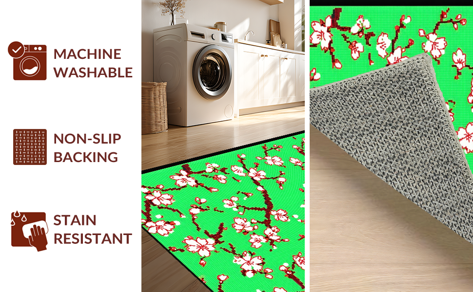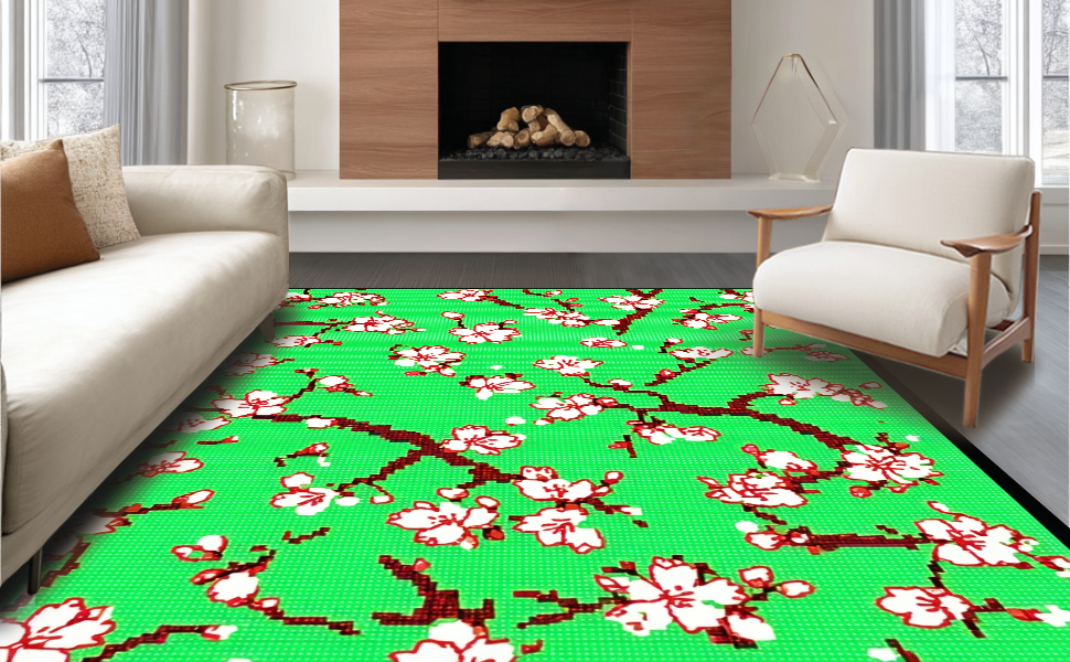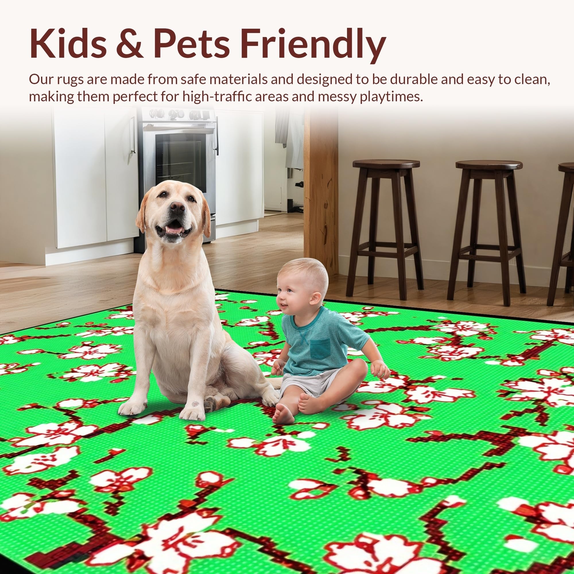 Ultra Soft Area Rug, Non Slip, Stain Resistant, Washable Area Rugs for Living Room, Bedroom, Vibrant Cherry Green Aesthetic(Green) Overview: