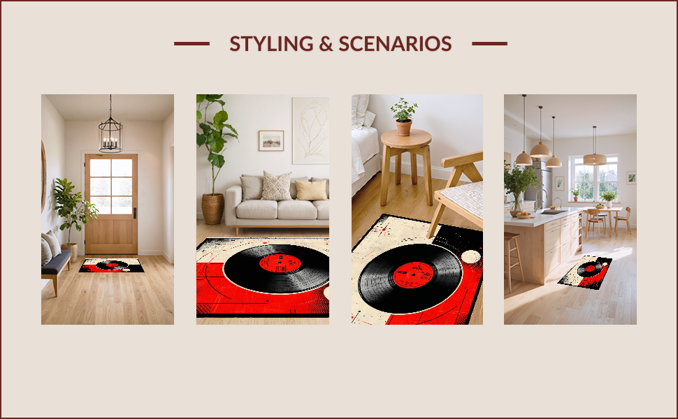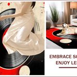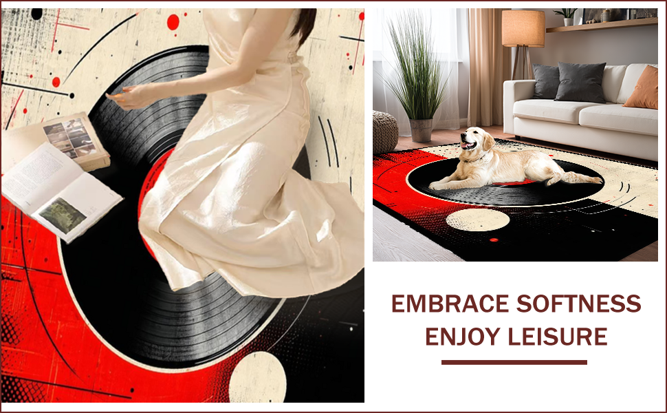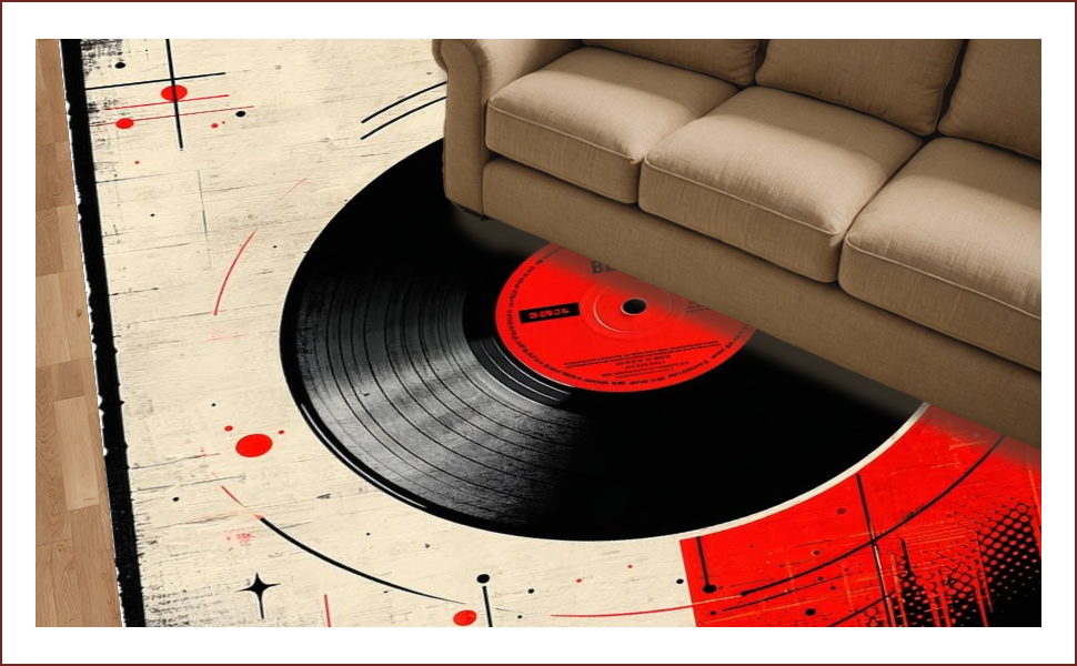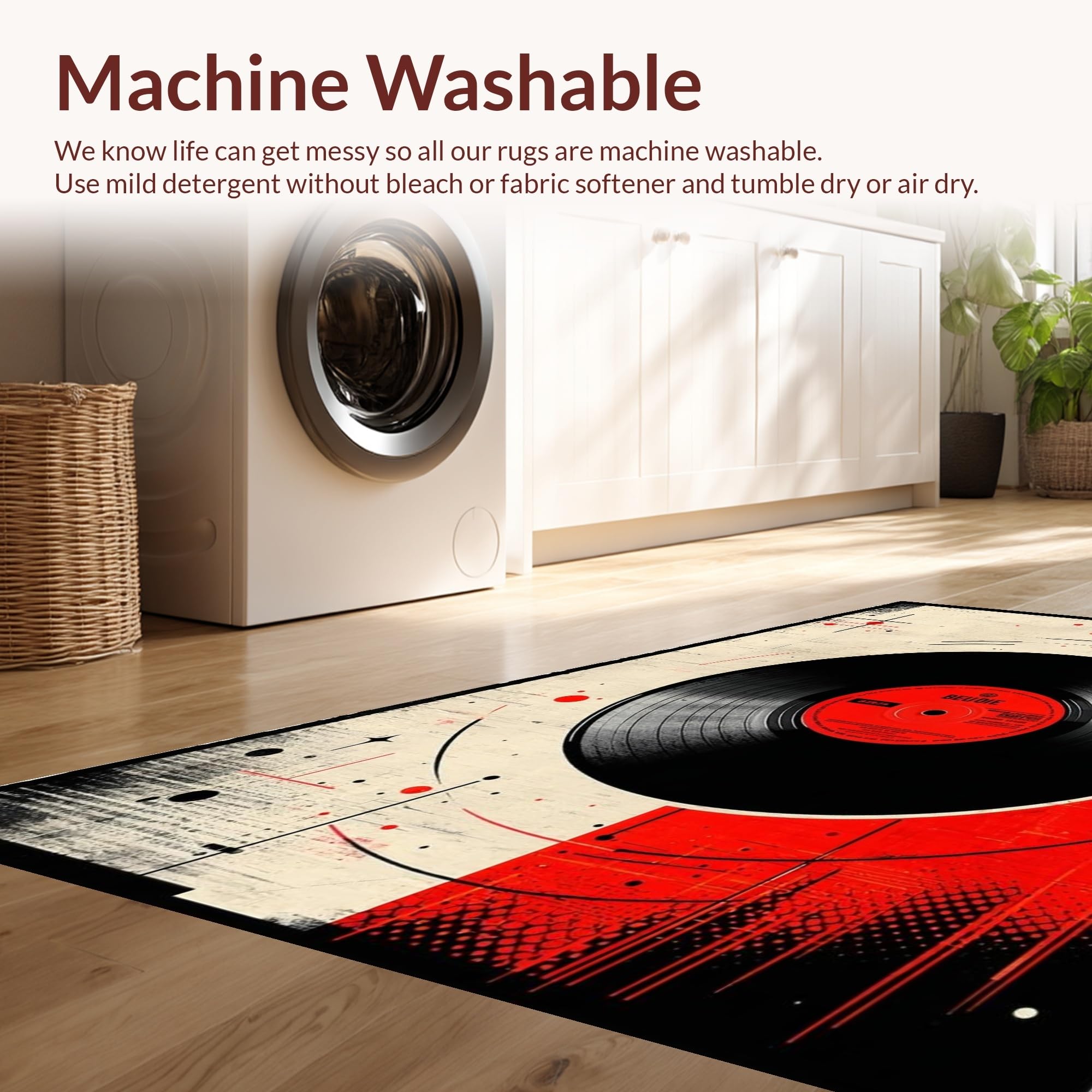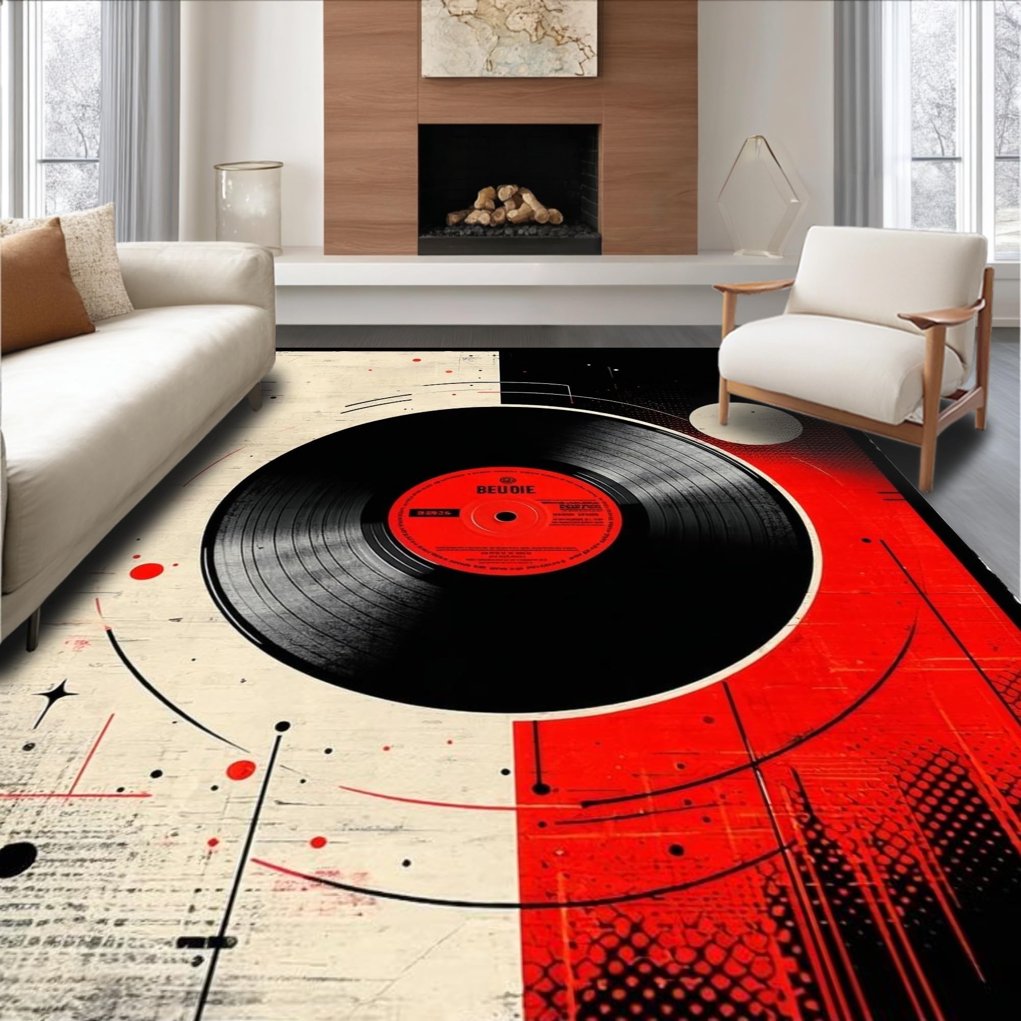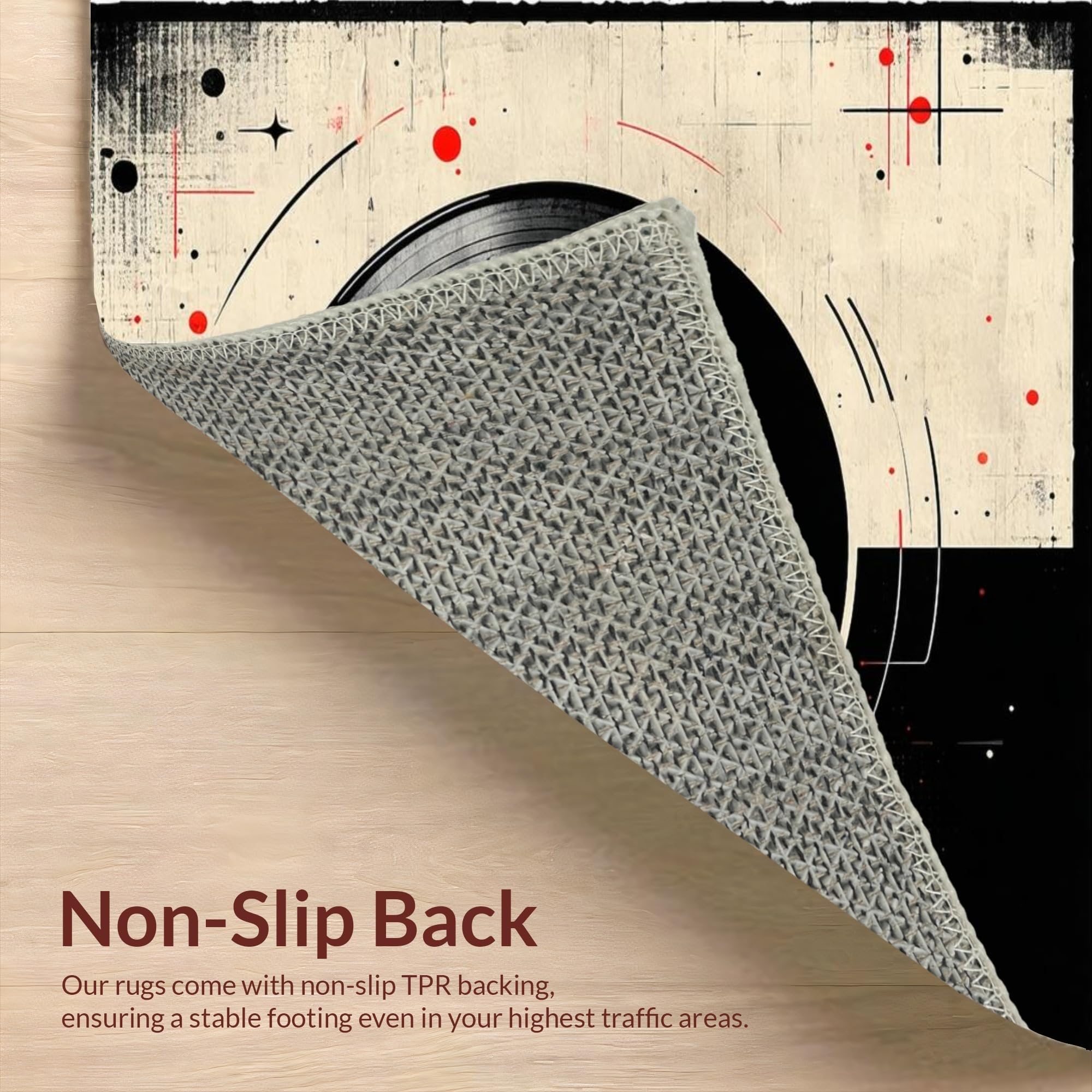 Ultra Soft Area Rug, Non Slip, Stain Resistant, Washable Area Rugs for Living Room, Bedroom, Vibrant Circular Vinyl Aesthetic(Black) Overview: