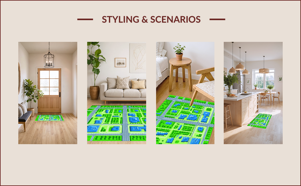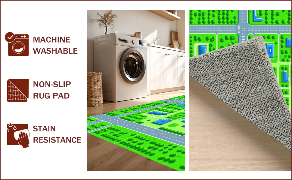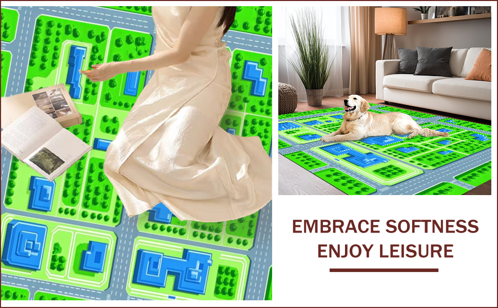 Ultra Soft Area Rug, Non Slip, Stain Resistant, Washable Area Rugs for Living Room, Bedroom, Vibrant Cityscape Adventure Theme(Green) Overview: