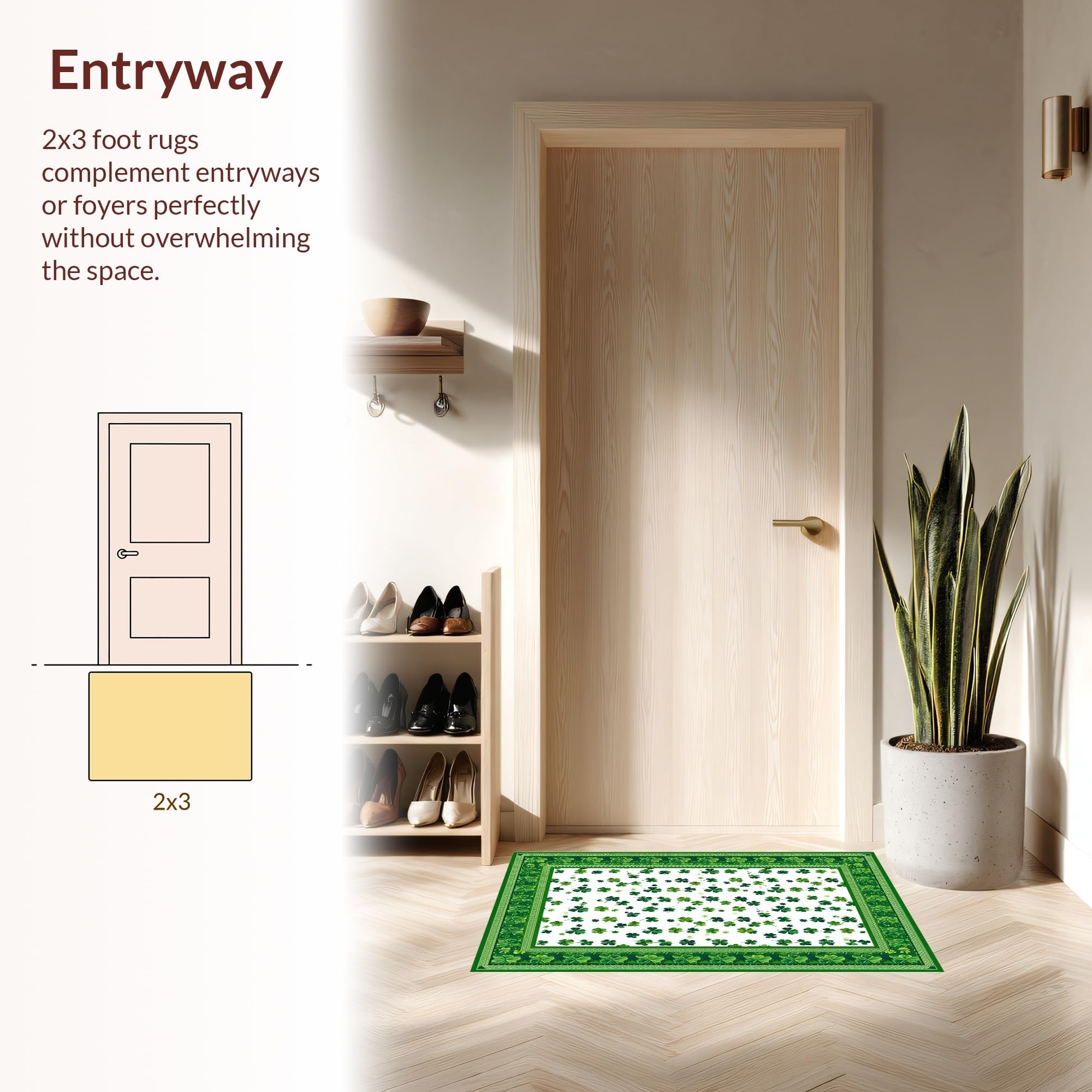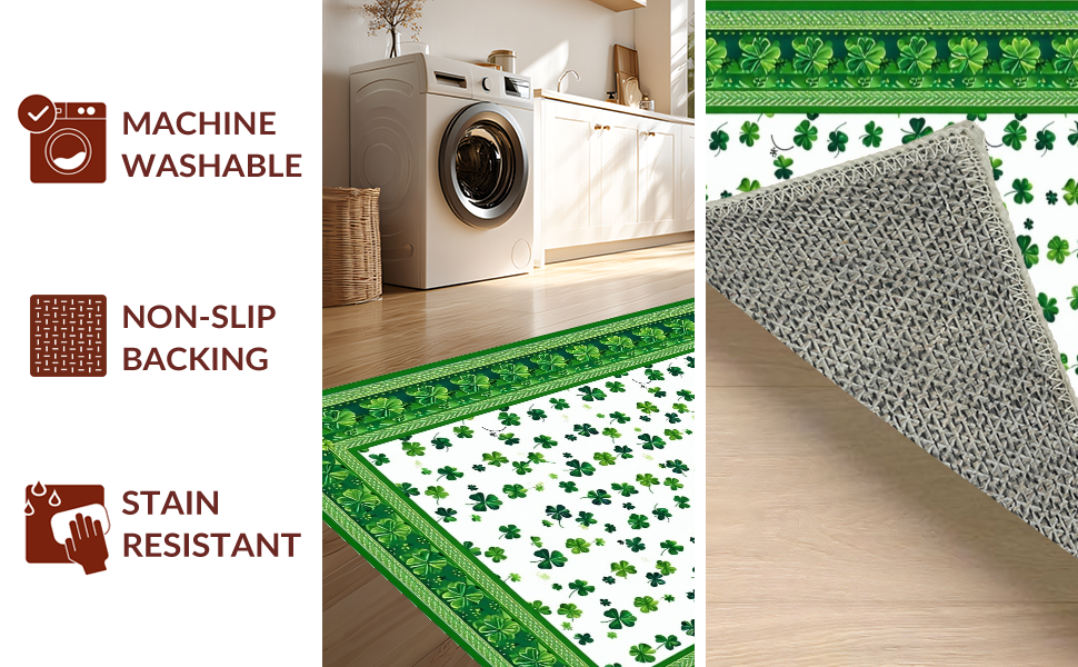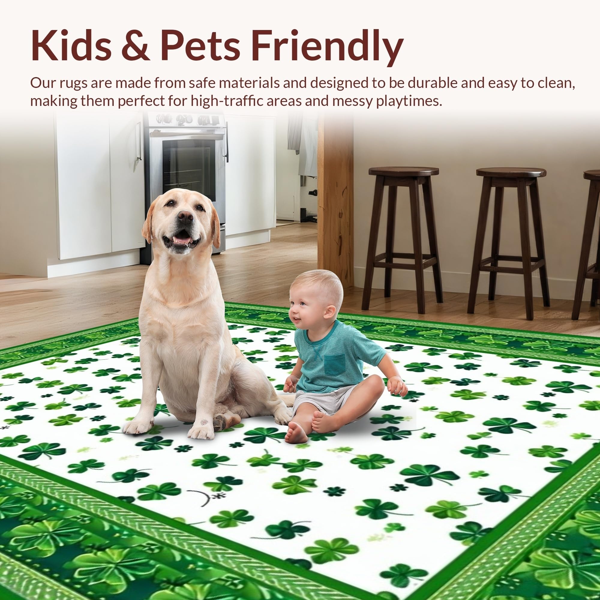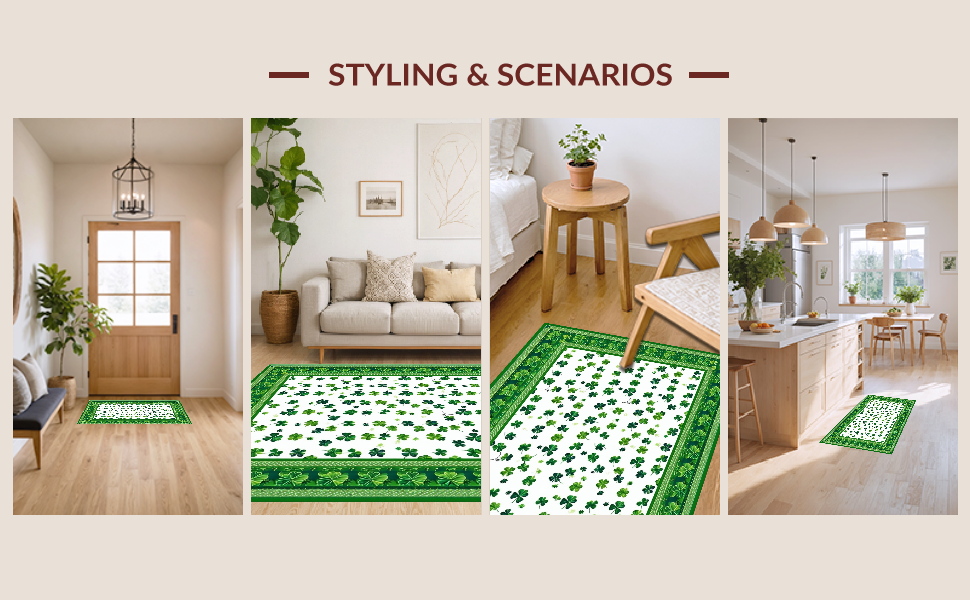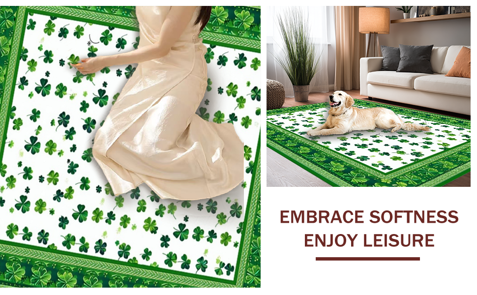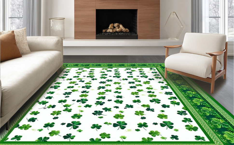 Ultra Soft Area Rug, Non Slip, Stain Resistant, Washable Area Rugs for Living Room, Bedroom, Vibrant Clover Pattern Design(Green) Overview: