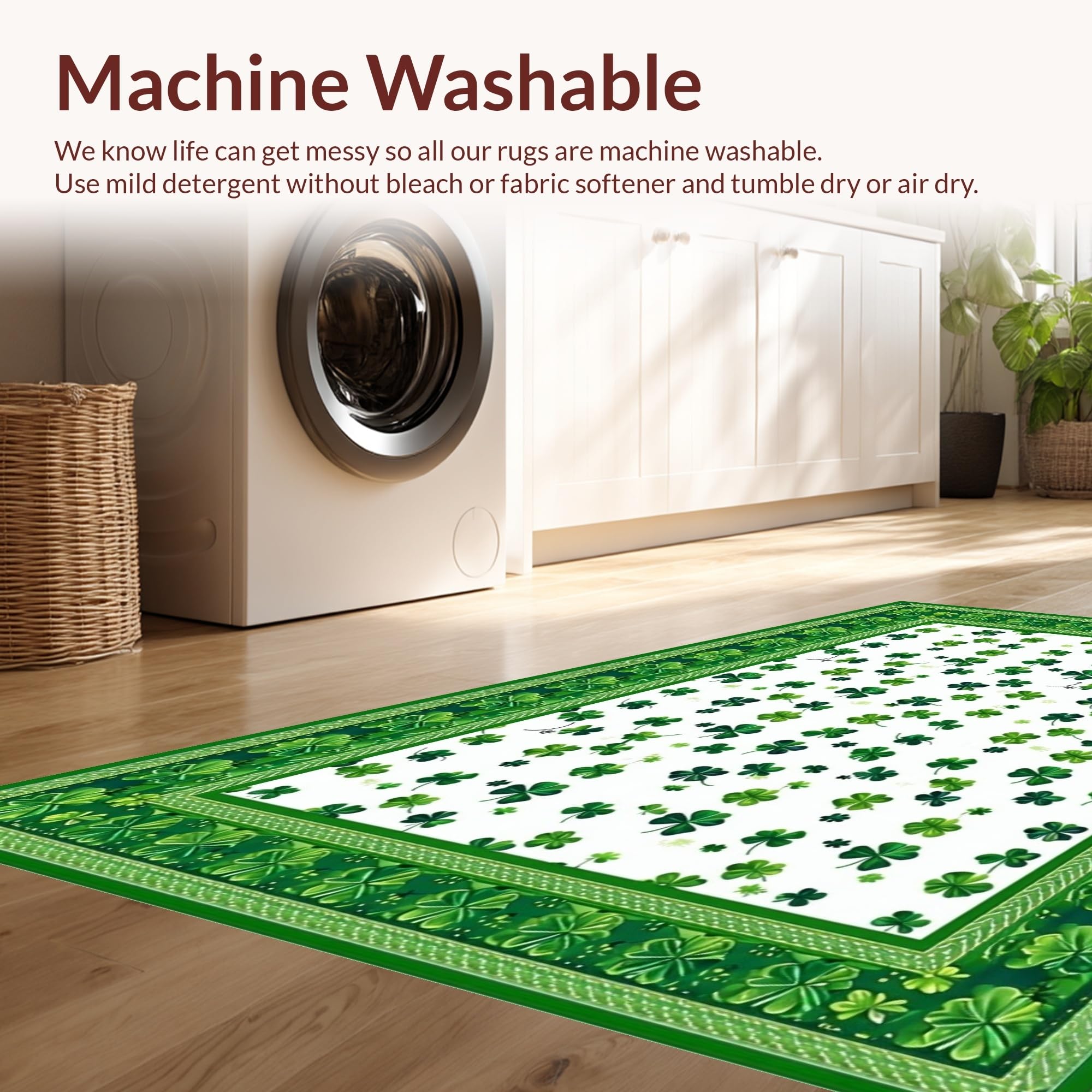 - Machine Washable: Our rugs can be easily thrown in the wash machine.