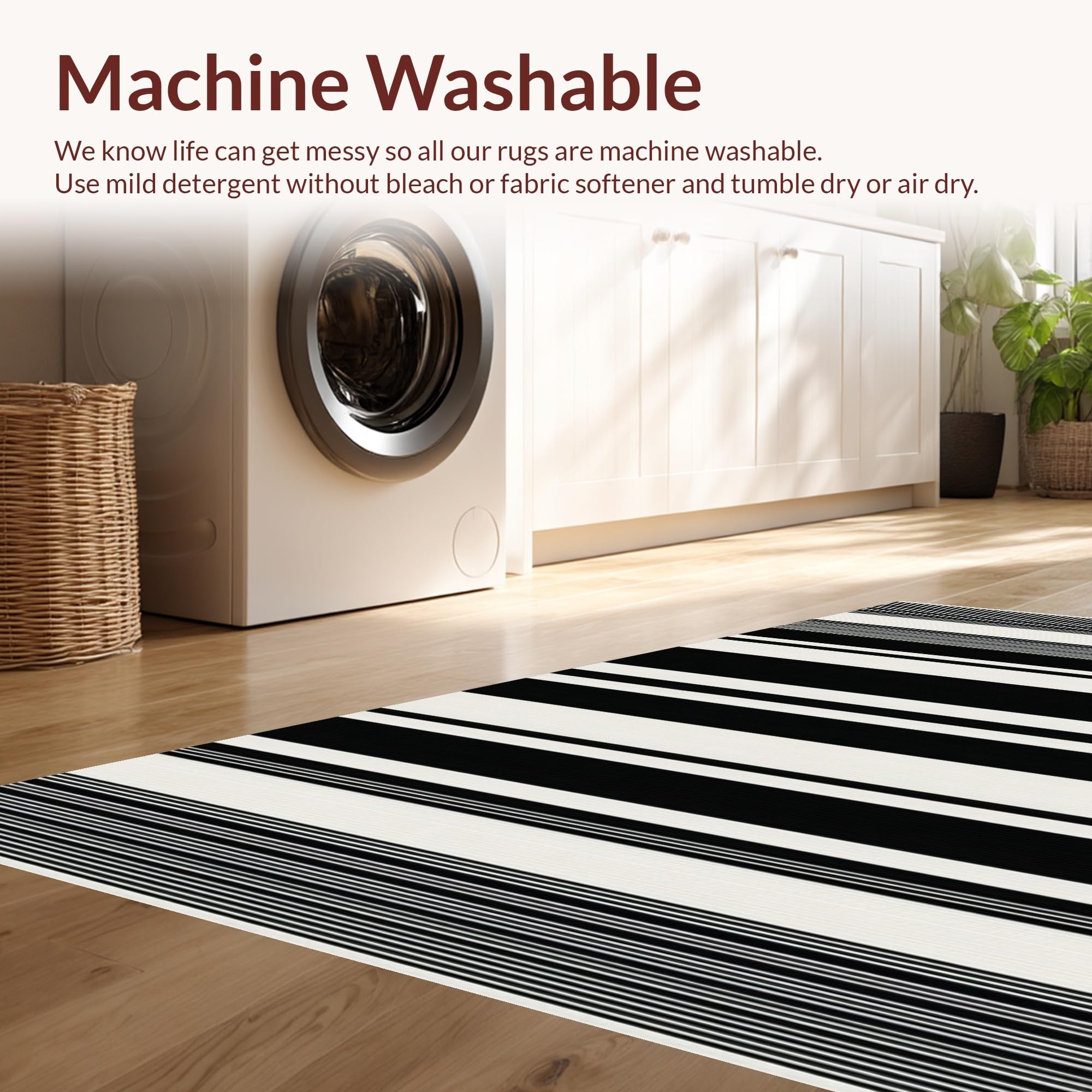 - Machine Washable: Our rugs can be easily thrown in the wash machine.