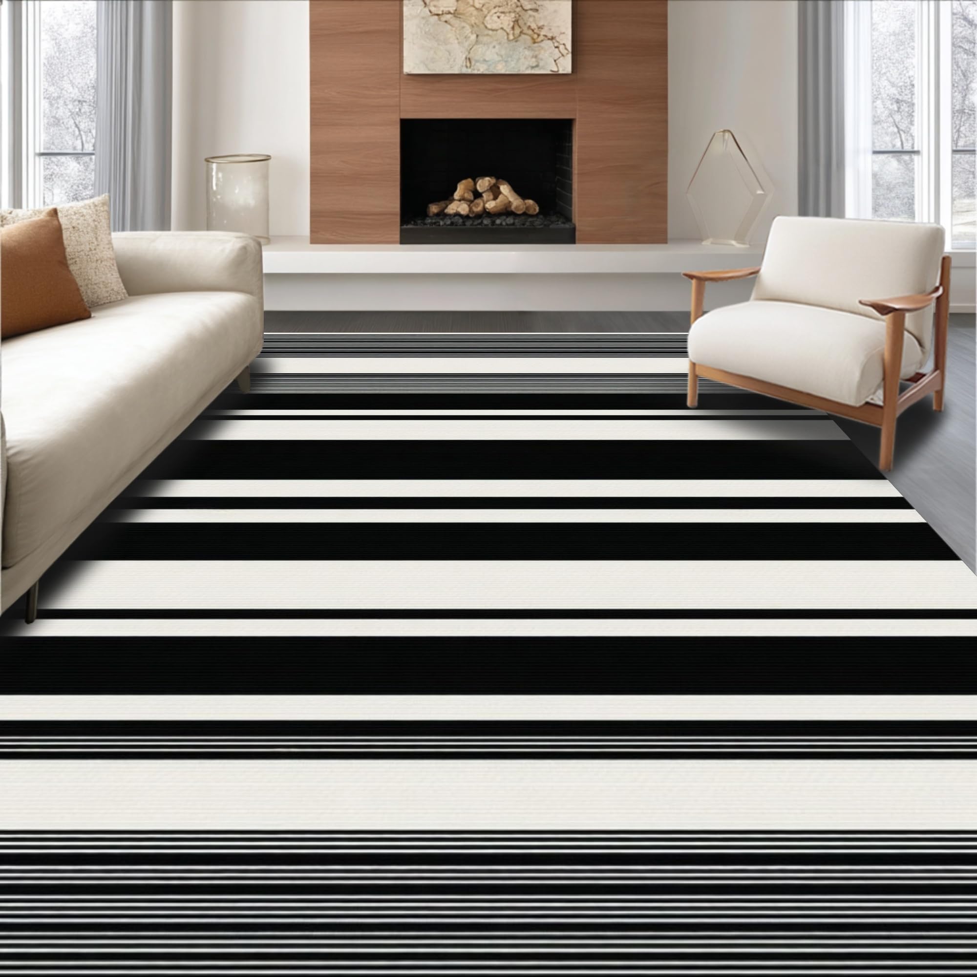 Ultra Soft Area Rug, Non Slip, Stain Resistant, Washable Area Rugs for Living Room, Bedroom, Vibrant Coastal Diamond Layout(Black) Overview: