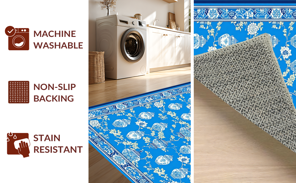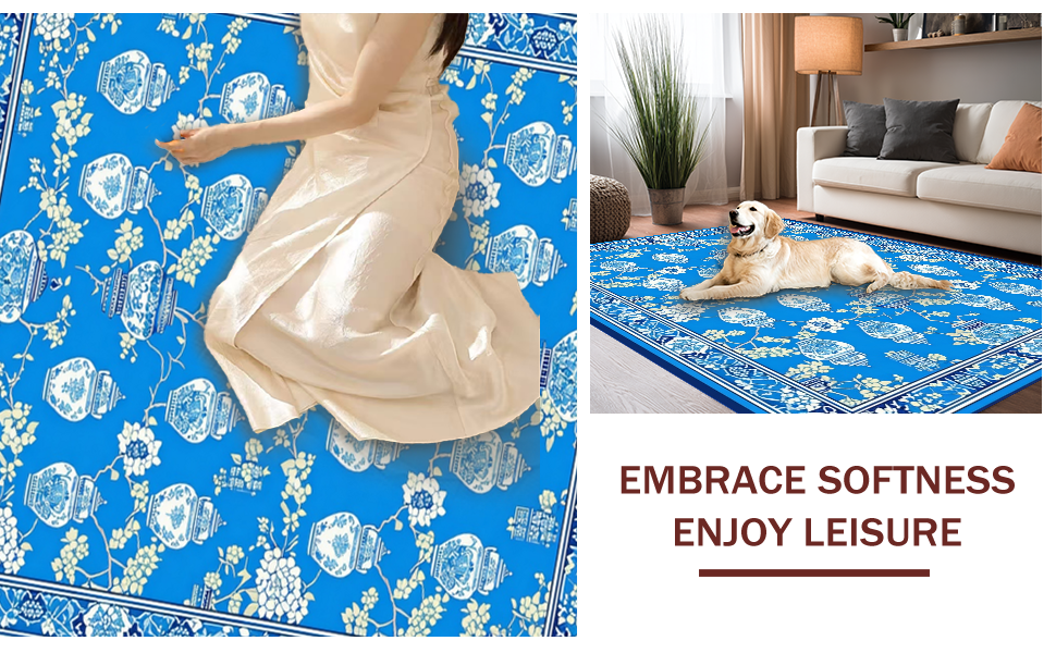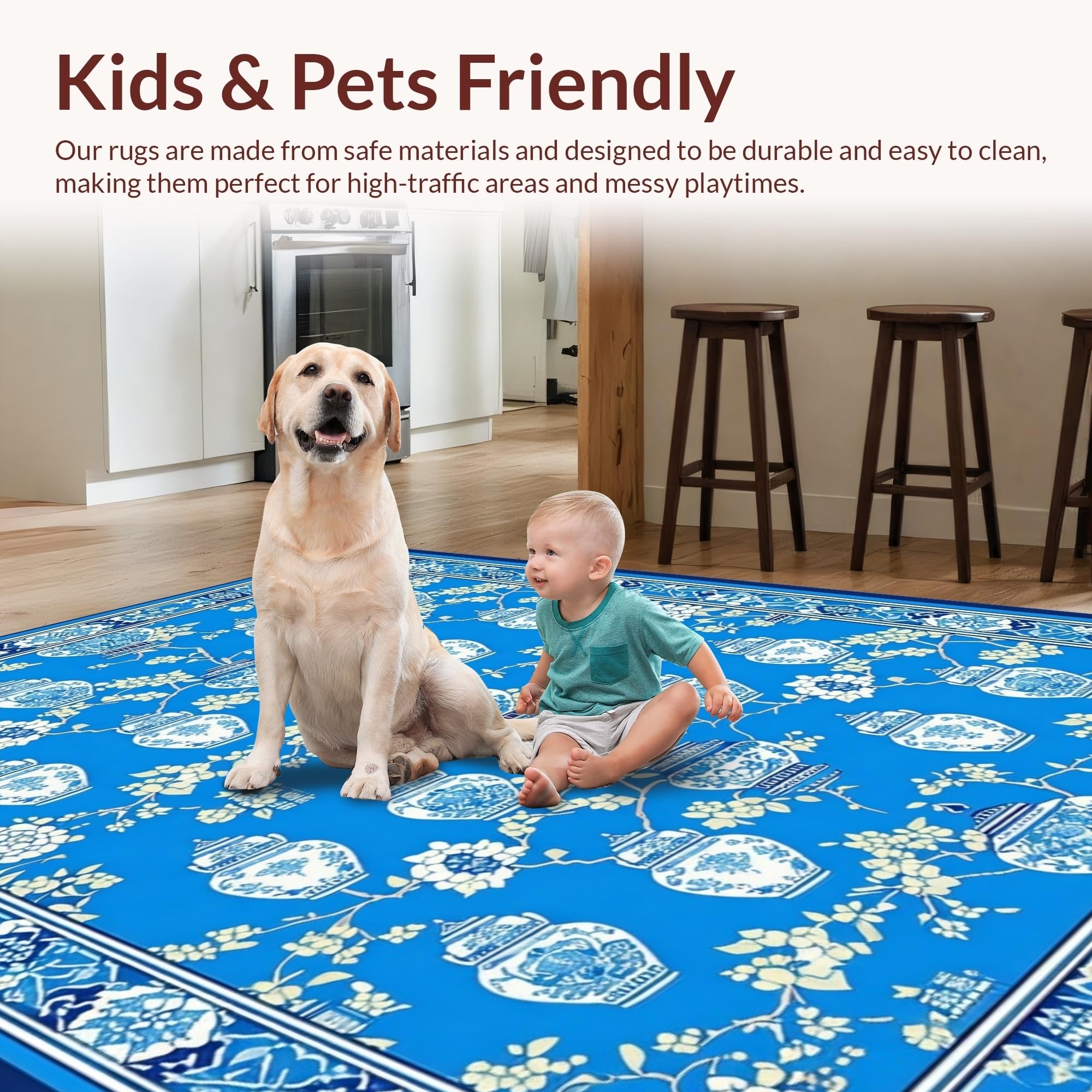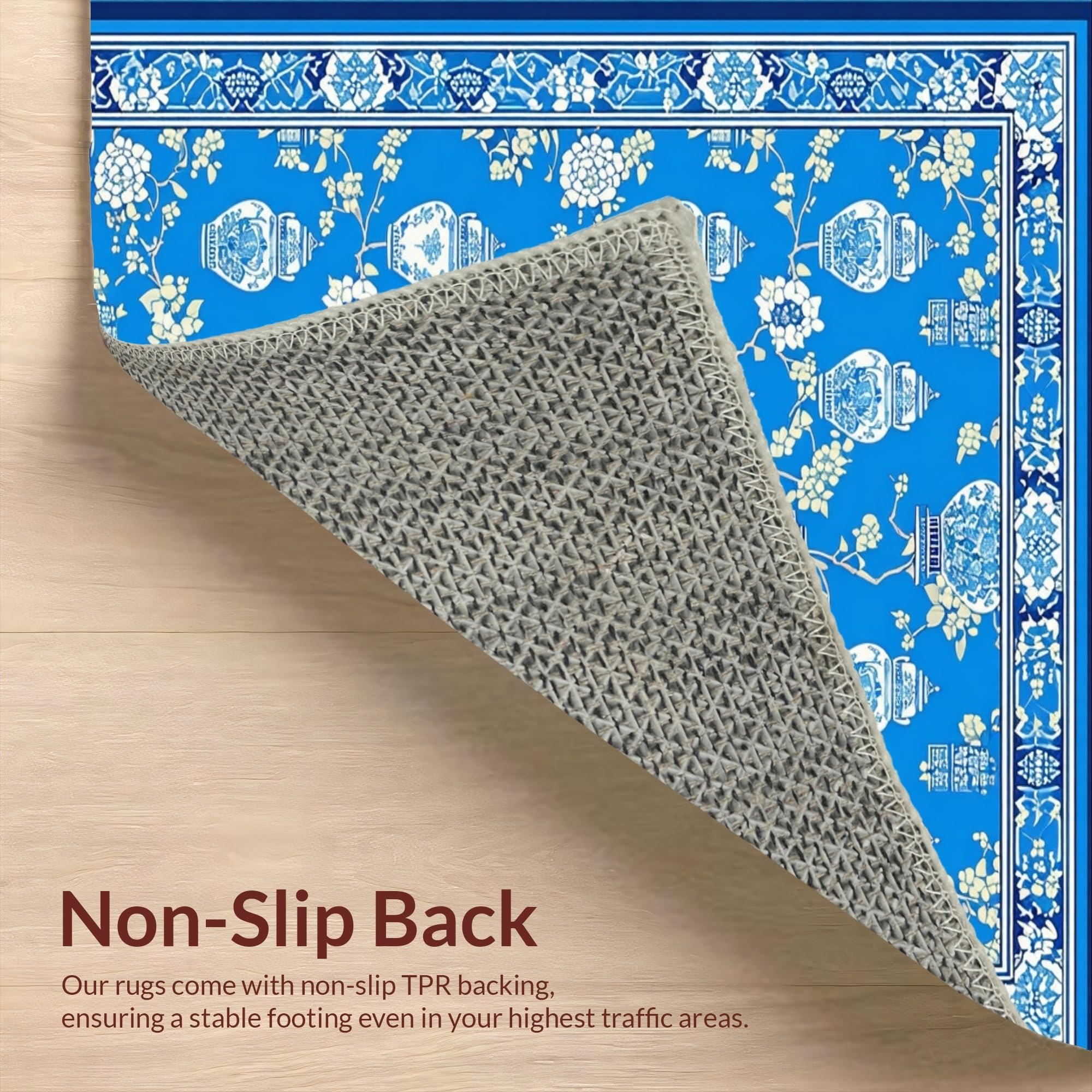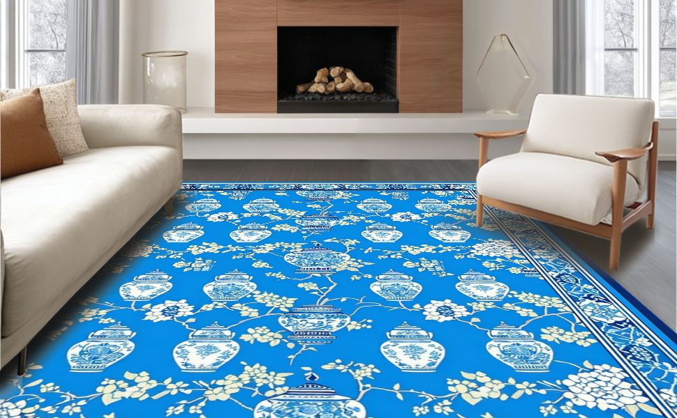 Ultra Soft Area Rug, Non Slip, Stain Resistant, Washable Area Rugs for Living Room, Bedroom, Vibrant Coastal Ginger Jar Pattern(Blue) Overview: