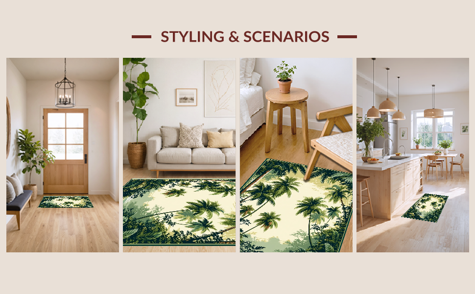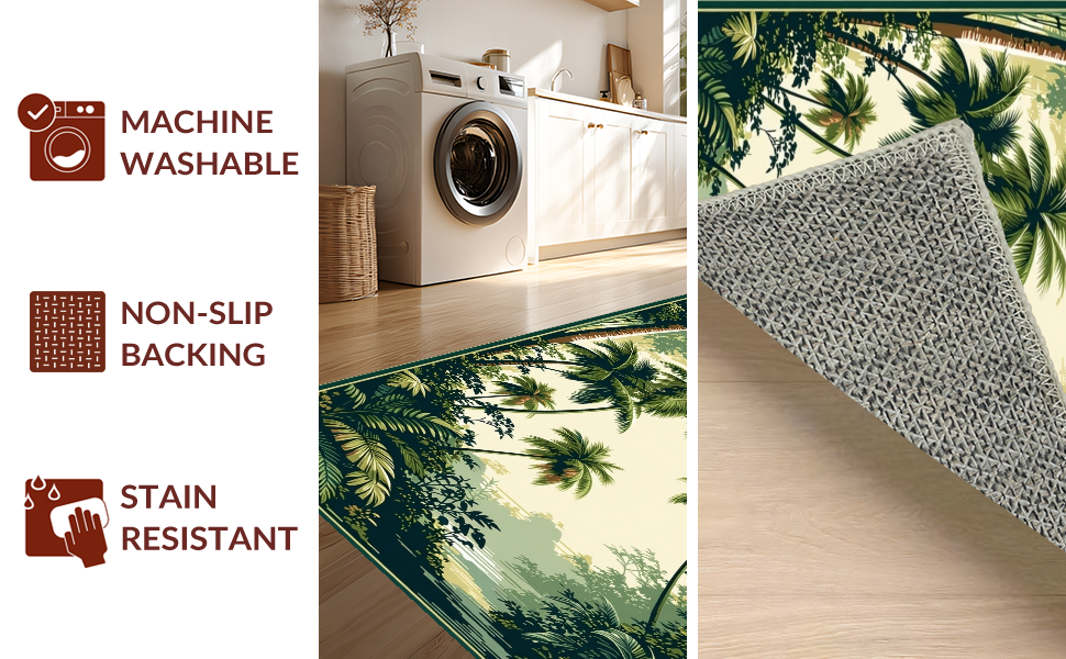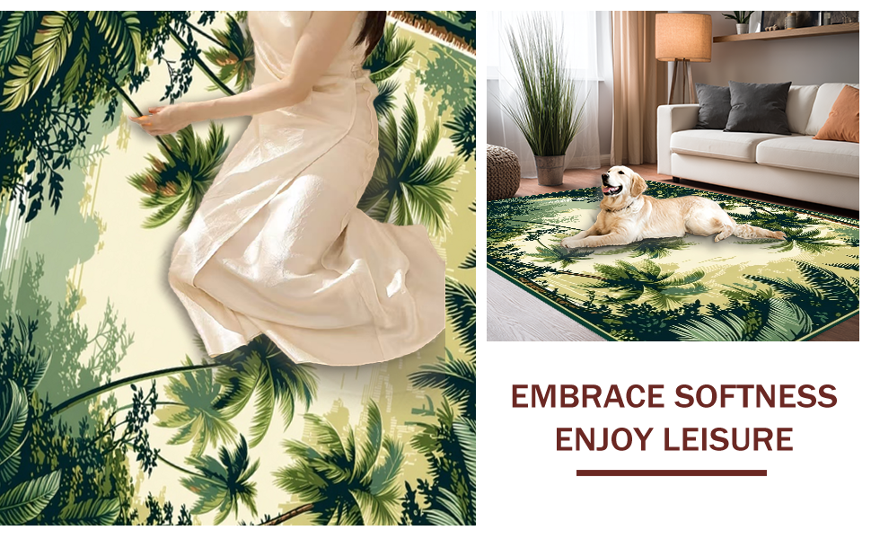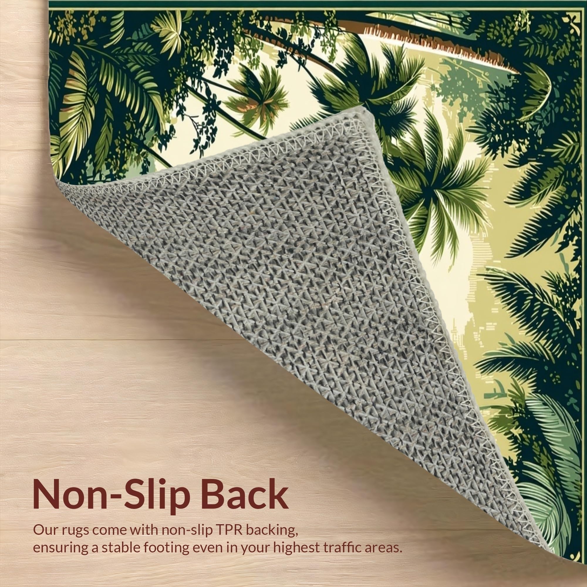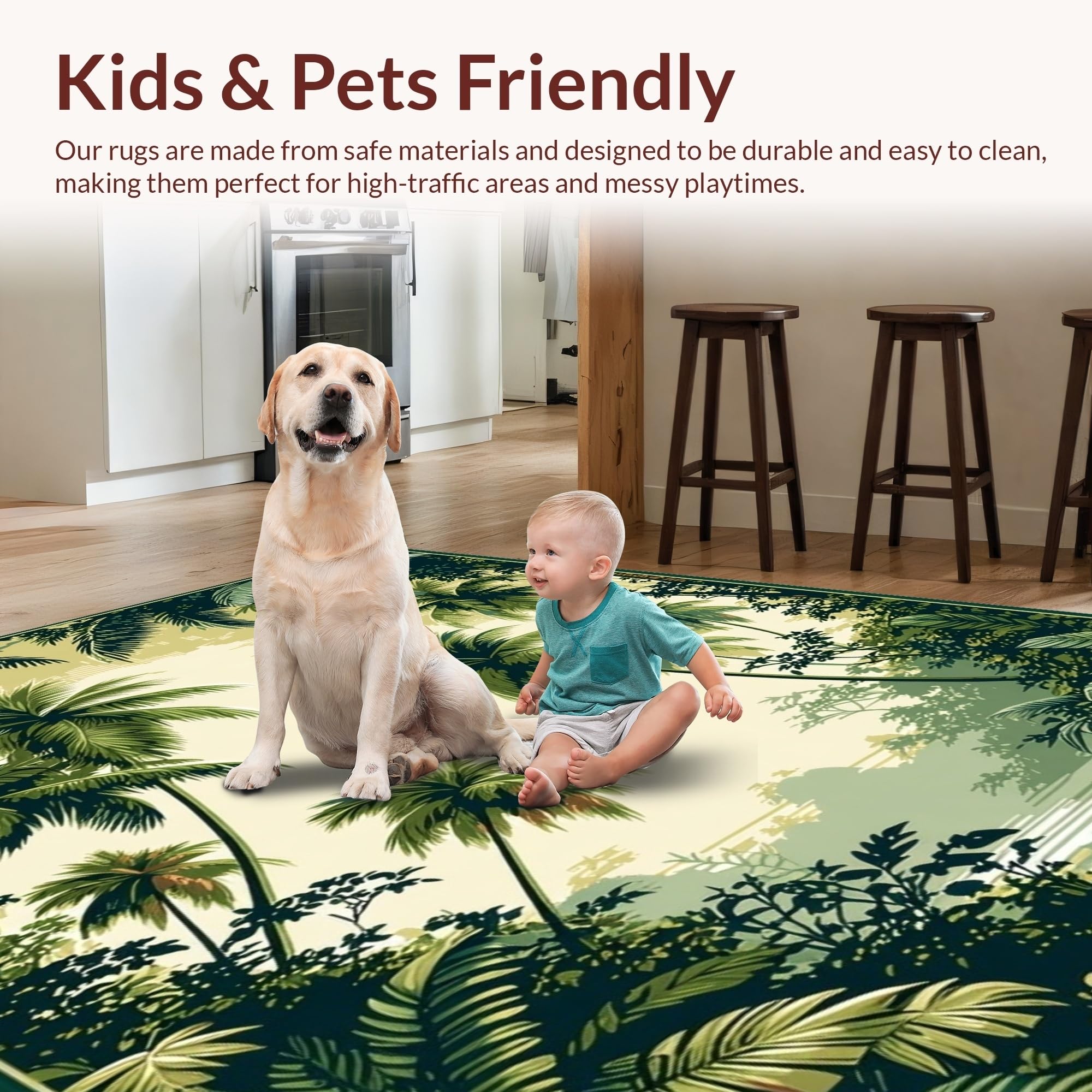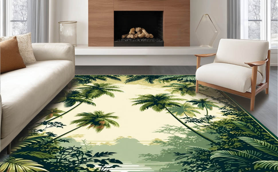 Ultra Soft Area Rug, Non Slip, Stain Resistant, Washable Area Rugs for Living Room, Bedroom, Vibrant Coastal Retreat Design(Green) Overview: