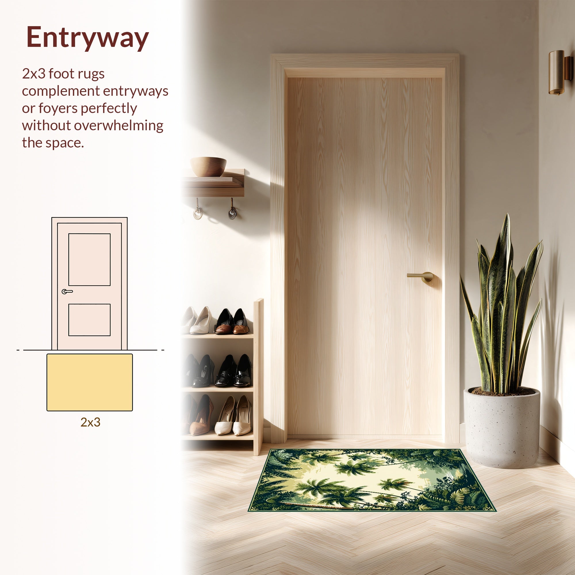 Flatwoven High Traffic Area Rug, Vibrant Retreat Design, Non Slip, Stain Resistant, Washable Area Rugs for Living Room, Bedroom (Green) Overview: