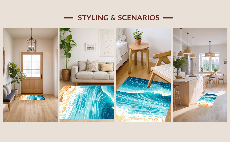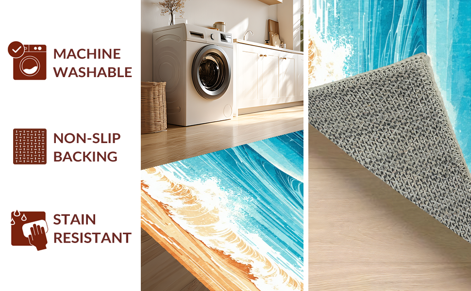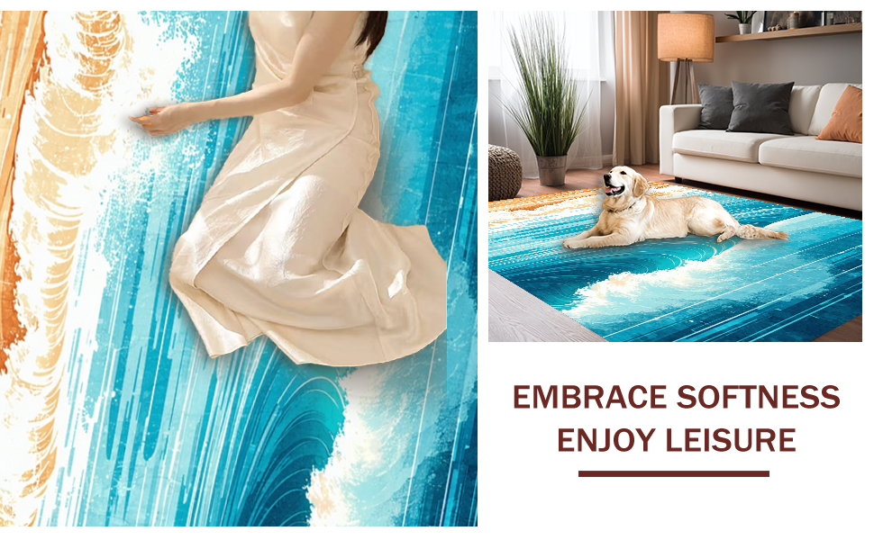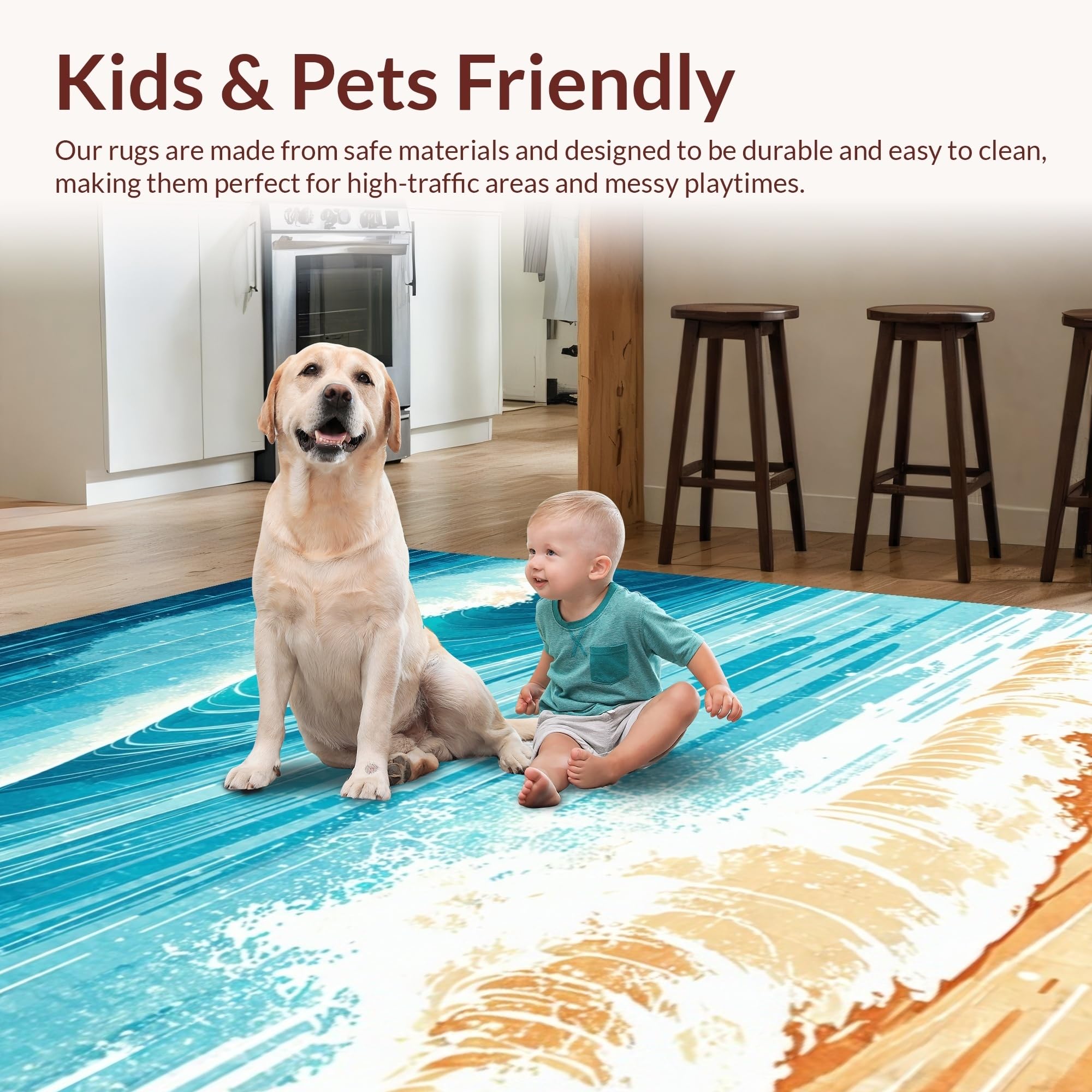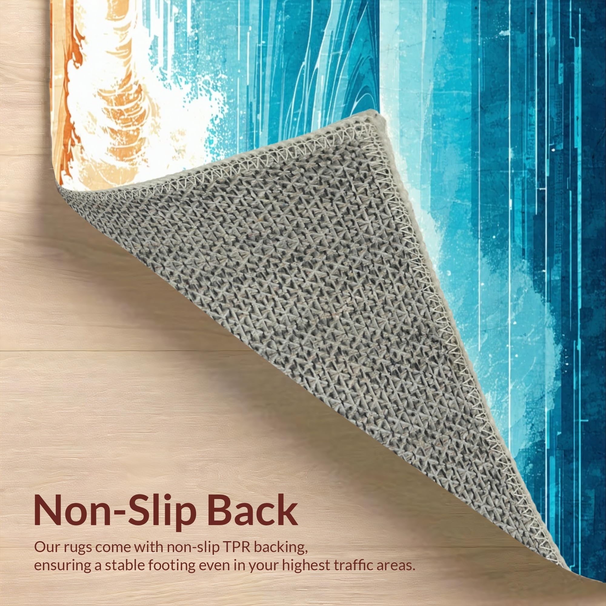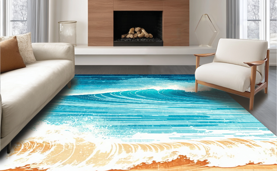 Ultra Soft Area Rug, Non Slip, Stain Resistant, Washable Area Rugs for Living Room, Bedroom, Vibrant Coastal Surfboard Motif(Blue) Overview: