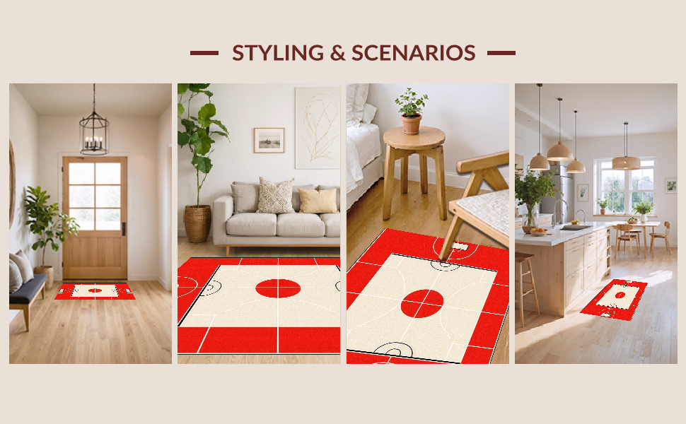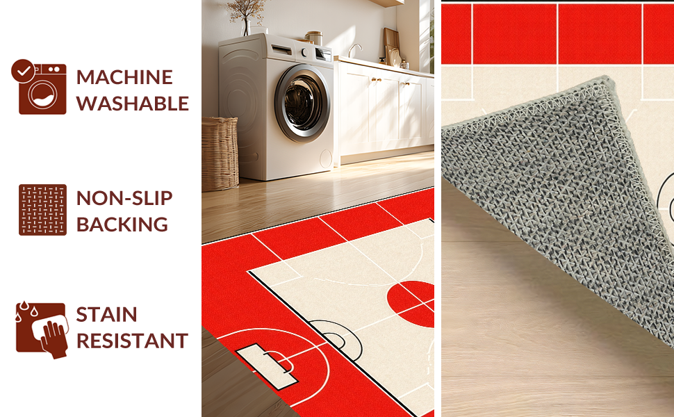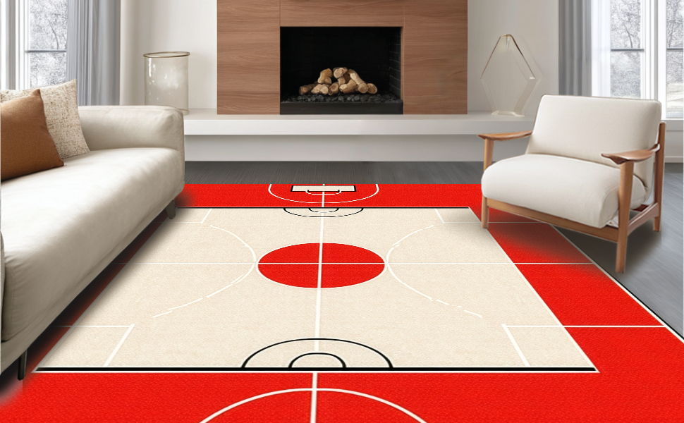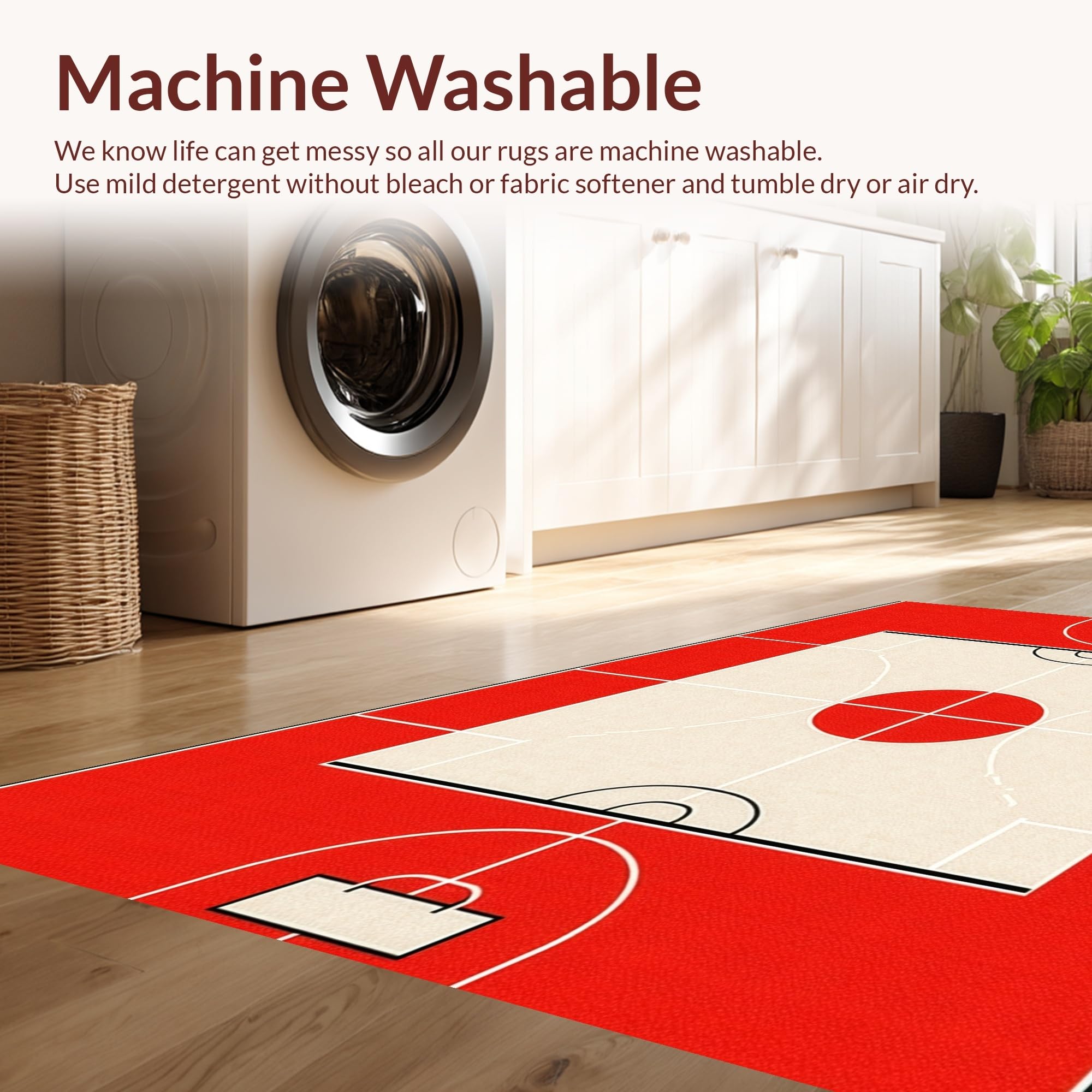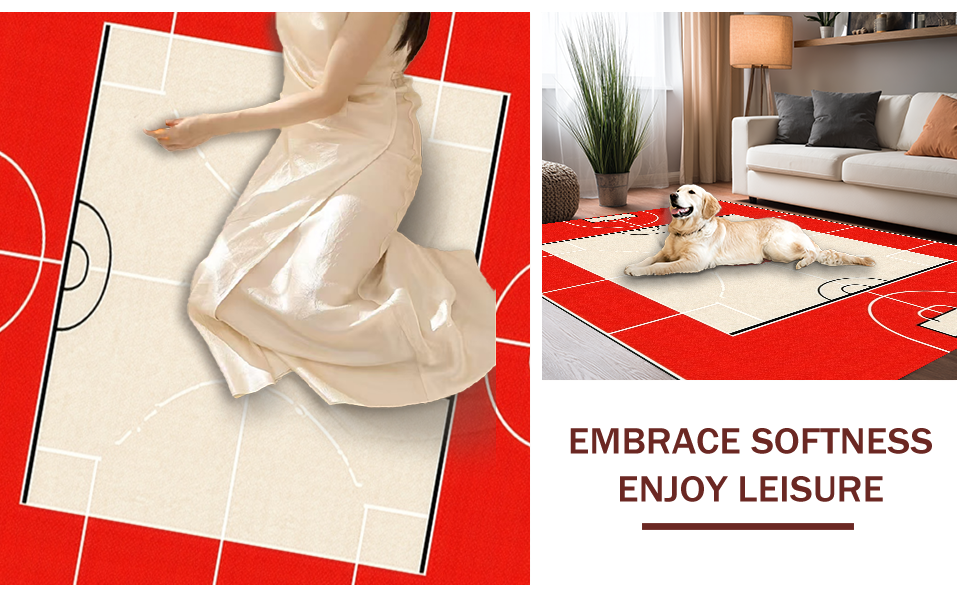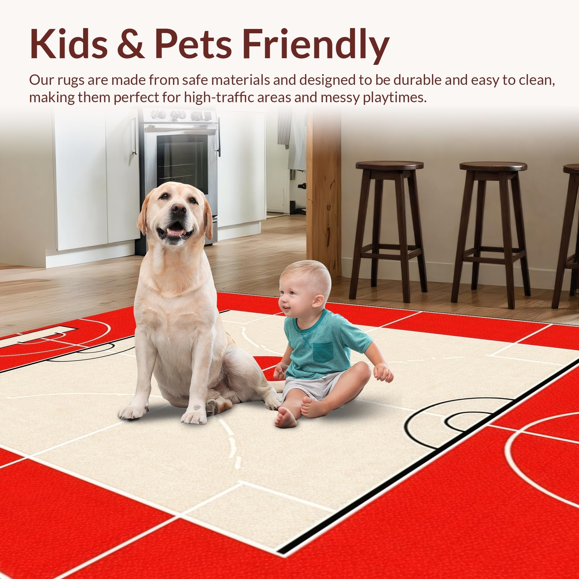 Ultra Soft Area Rug, Non Slip, Stain Resistant, Washable Area Rugs for Living Room, Bedroom, Vibrant Colorful Athletic Motif(Red) Overview: