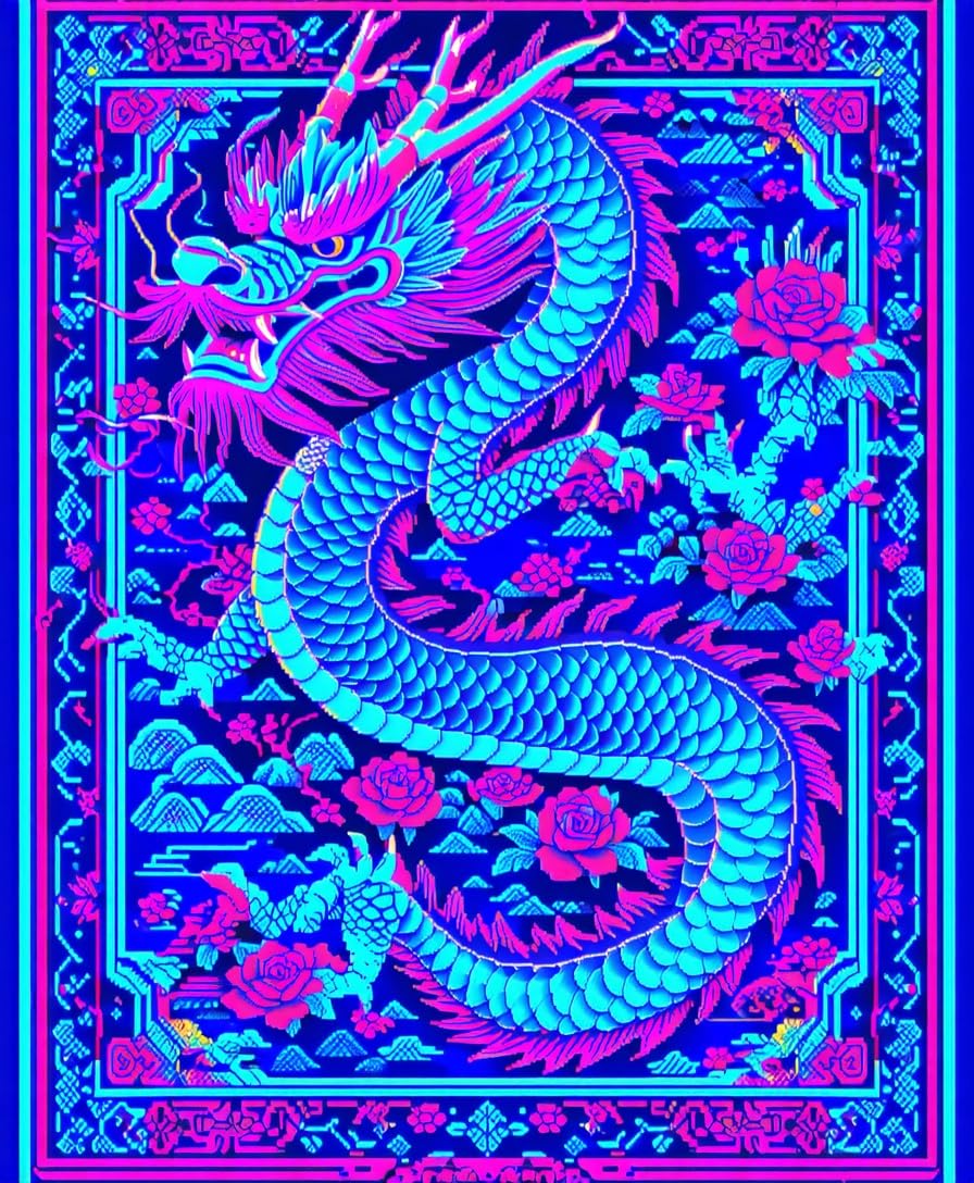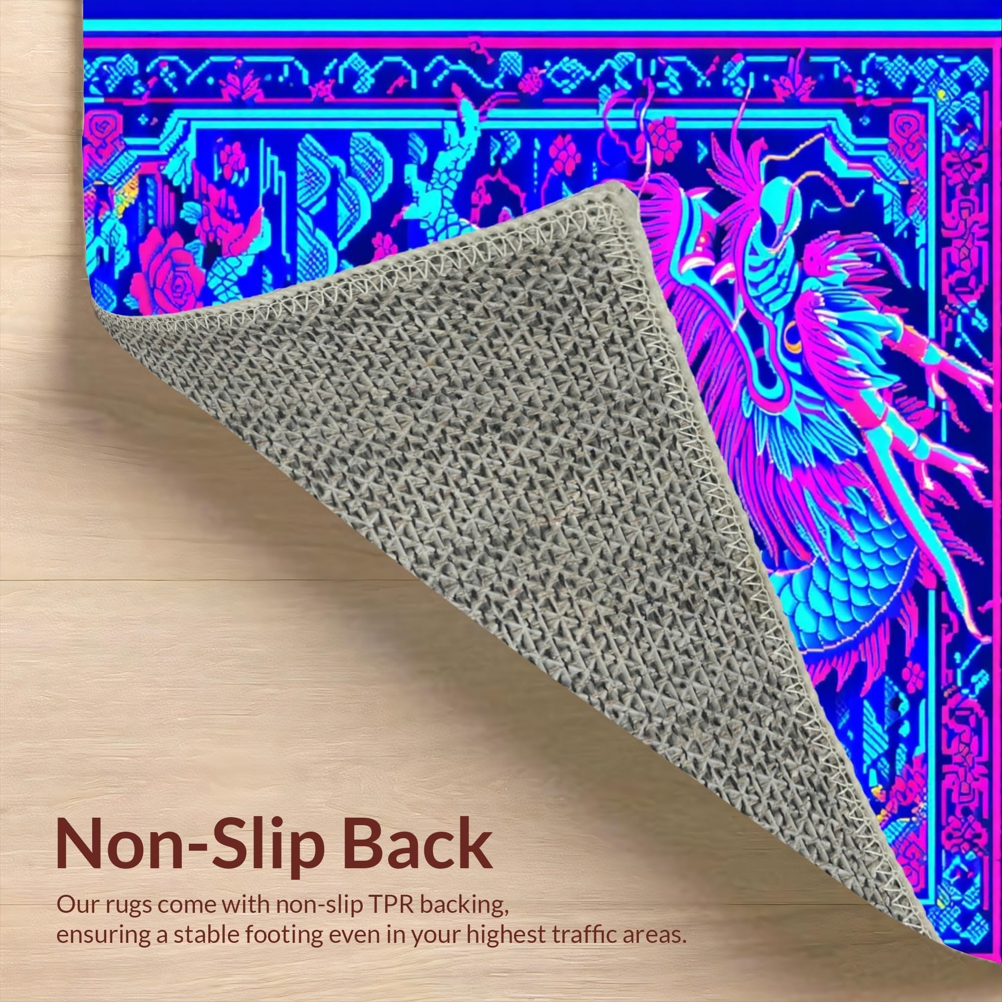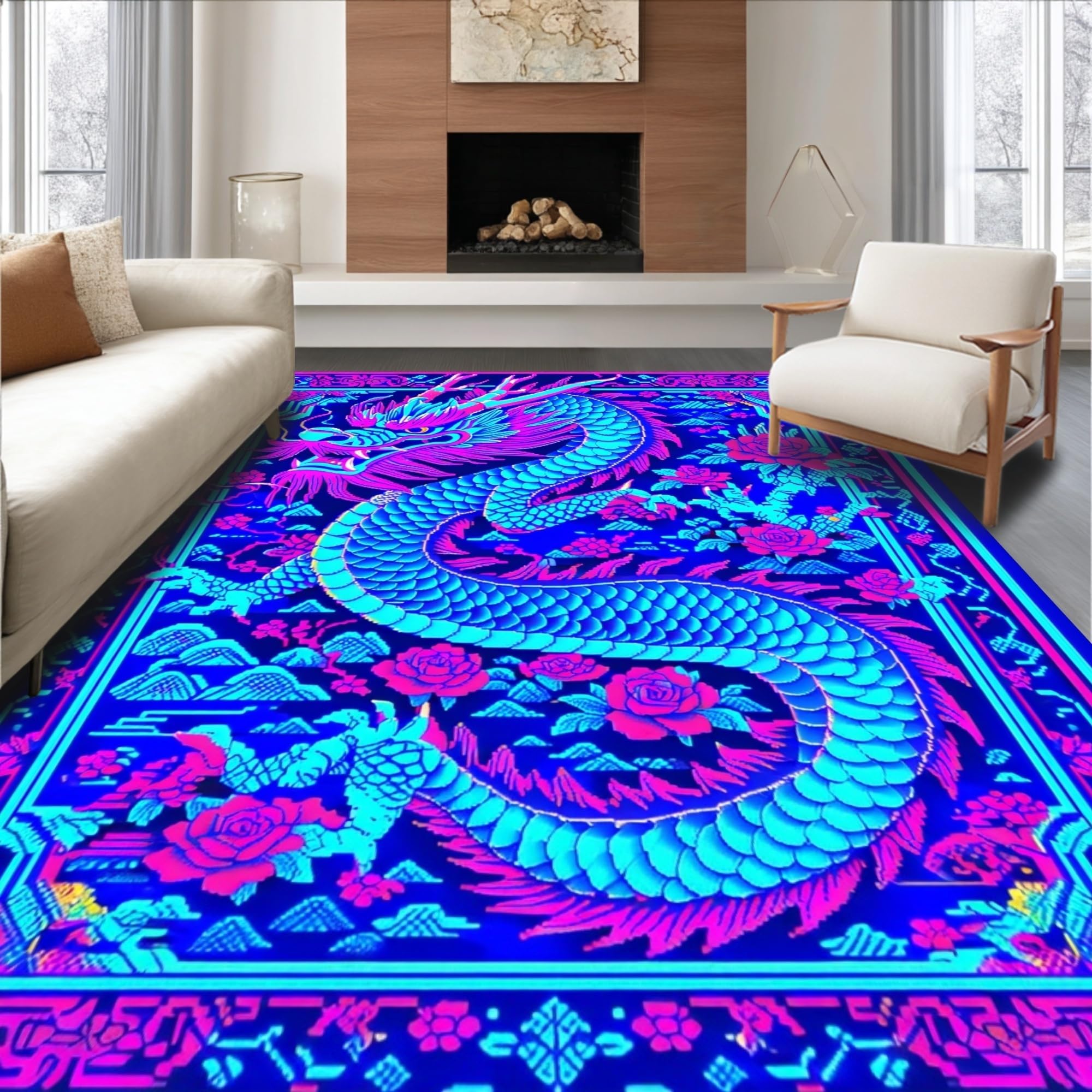 Ultra Soft Area Rug, Non Slip, Stain Resistant, Washable Area Rugs for Living Room, Bedroom, Vibrant Colorful Mythical Design(Blue) Overview: