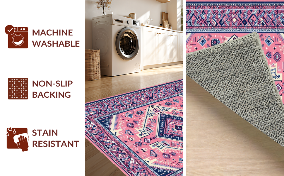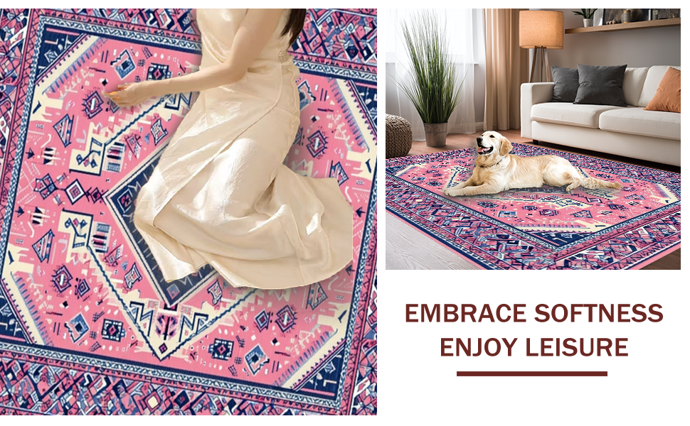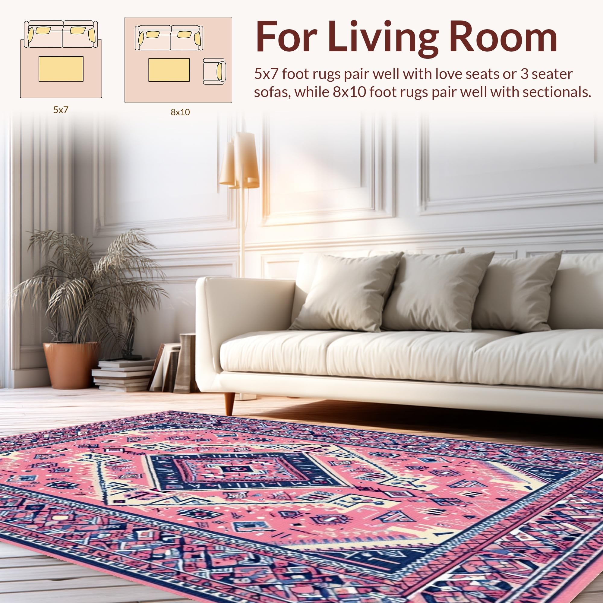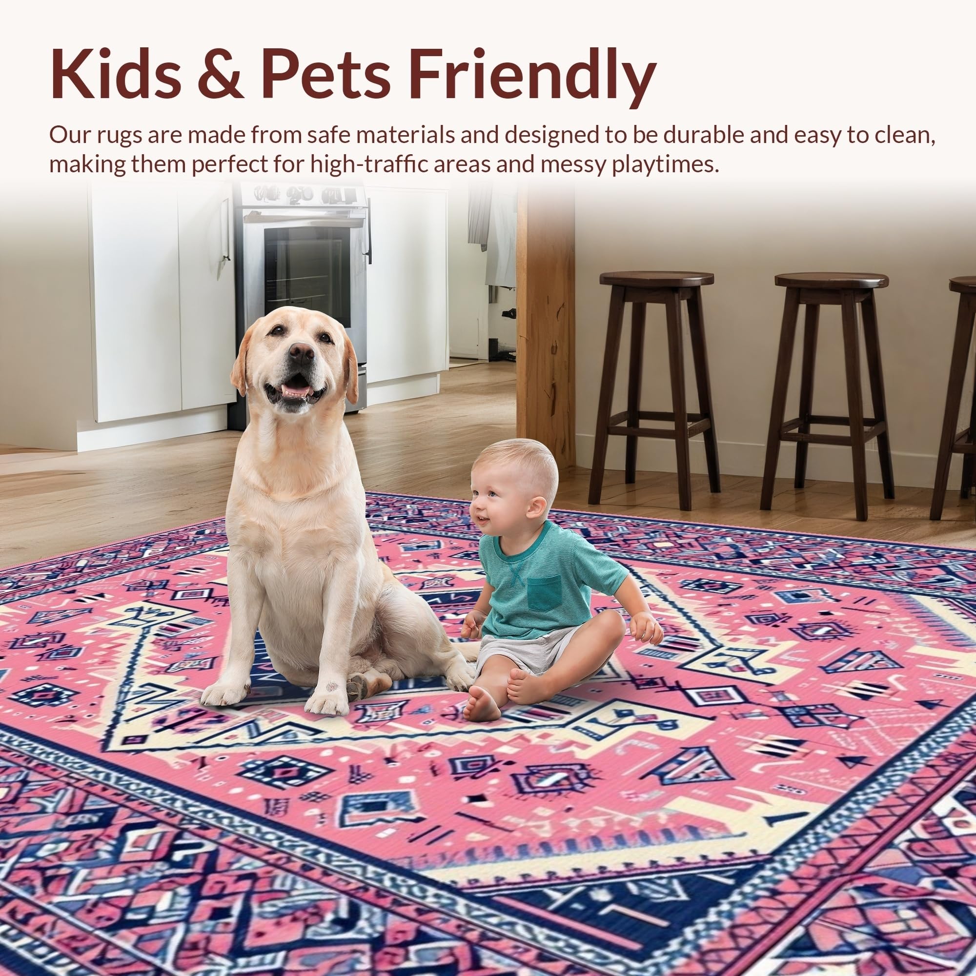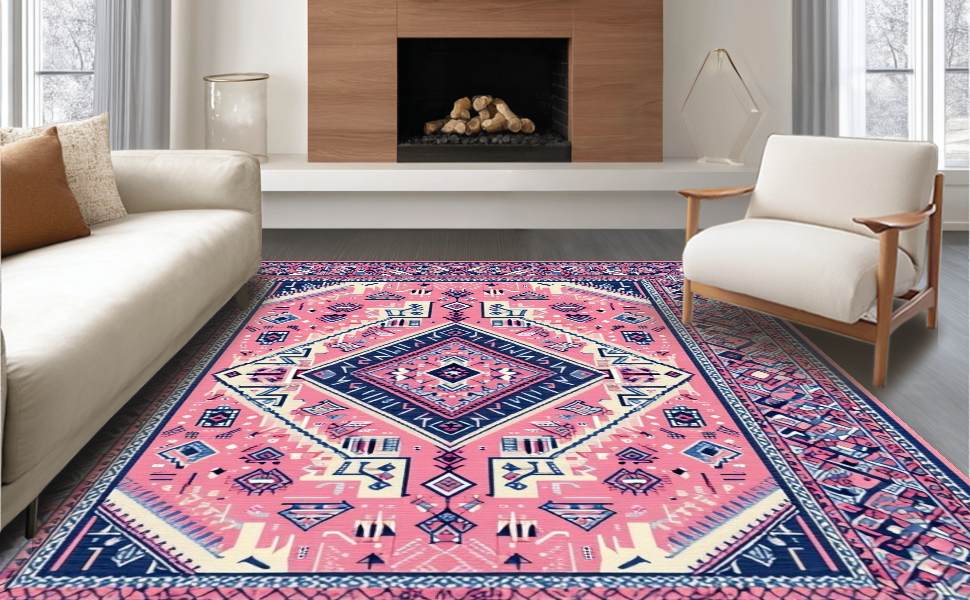 Ultra Soft Area Rug, Non Slip, Stain Resistant, Washable Area Rugs for Living Room, Bedroom, Vibrant Contemporary Ogee Design(Pink) Overview: