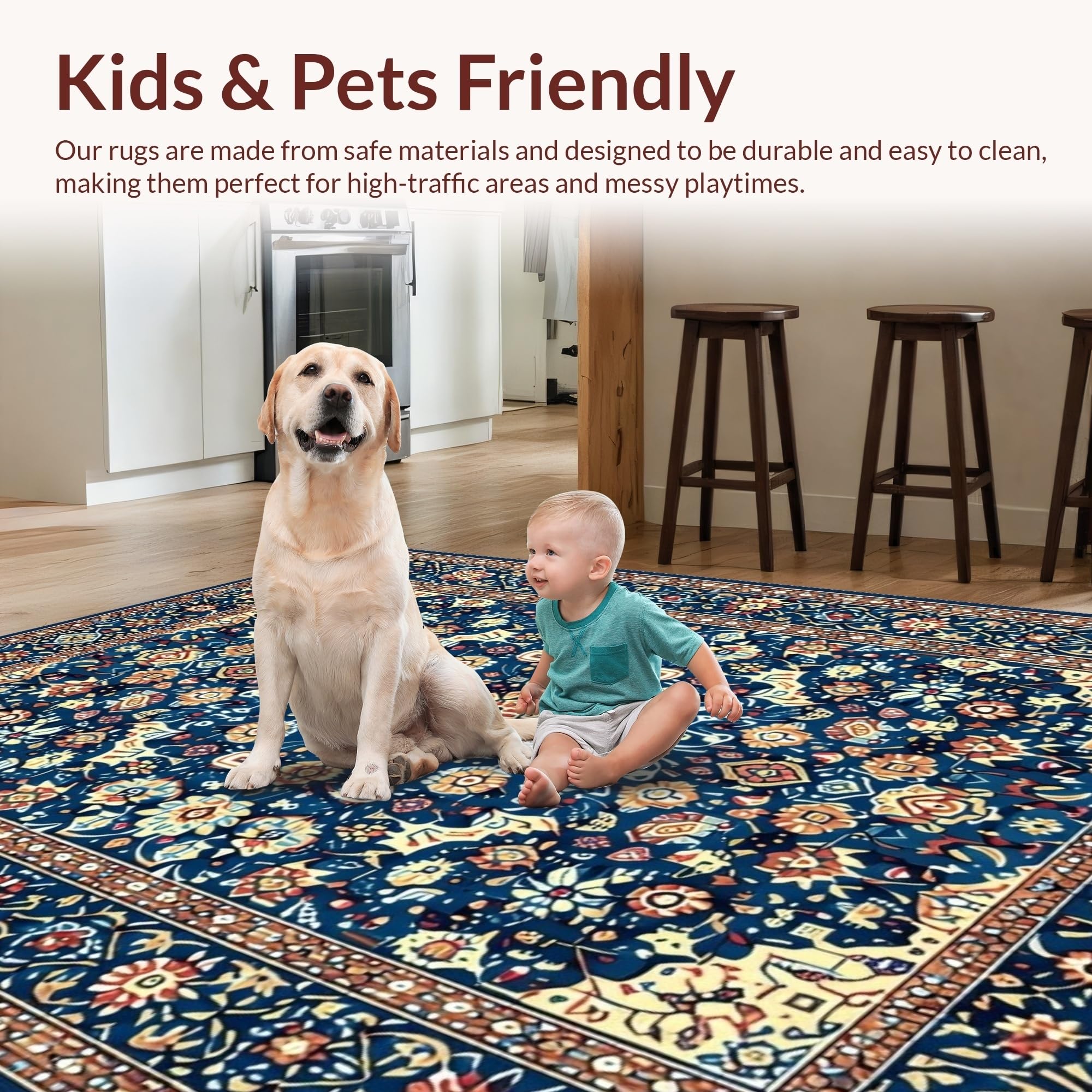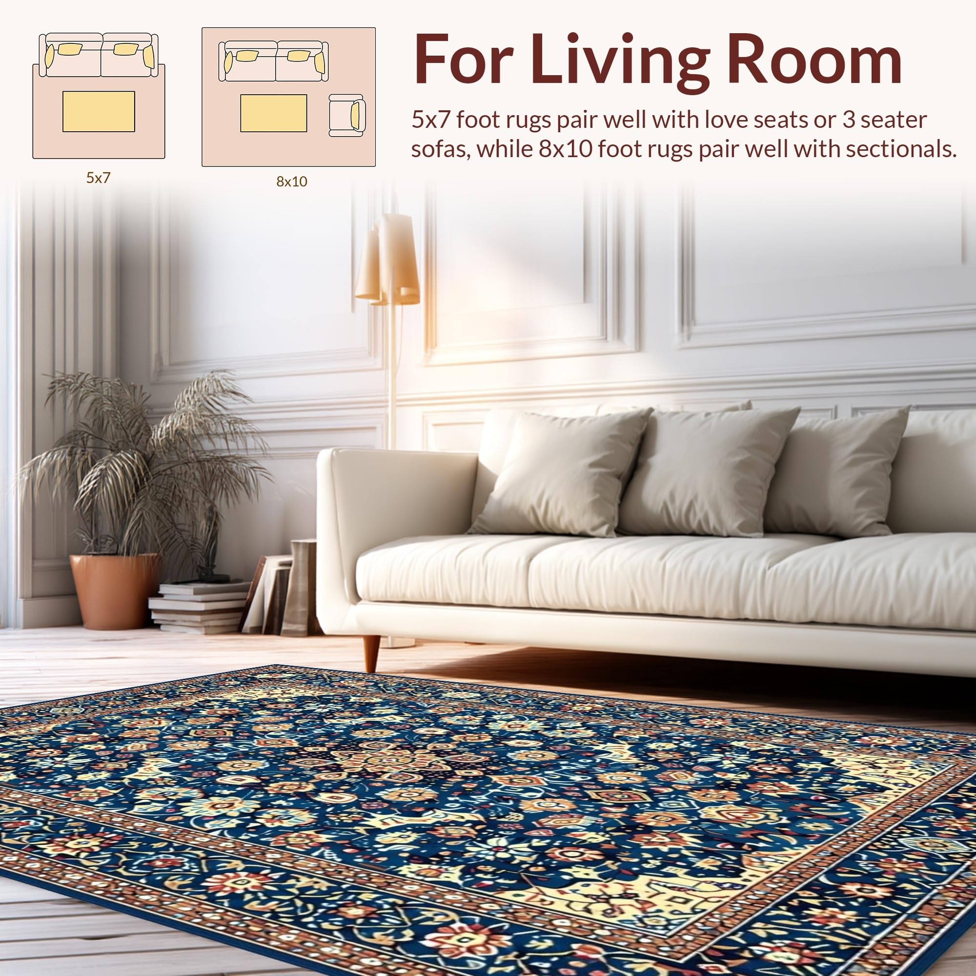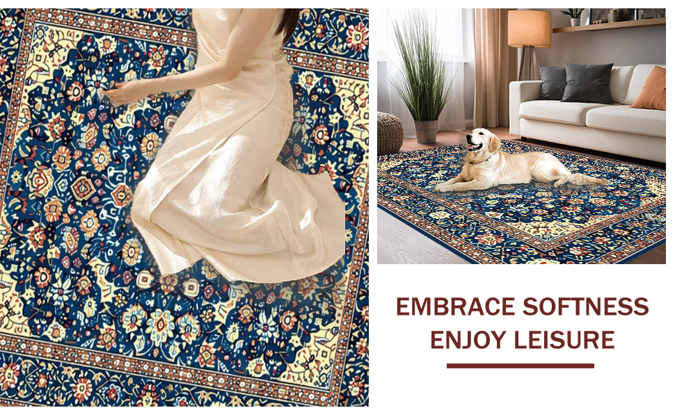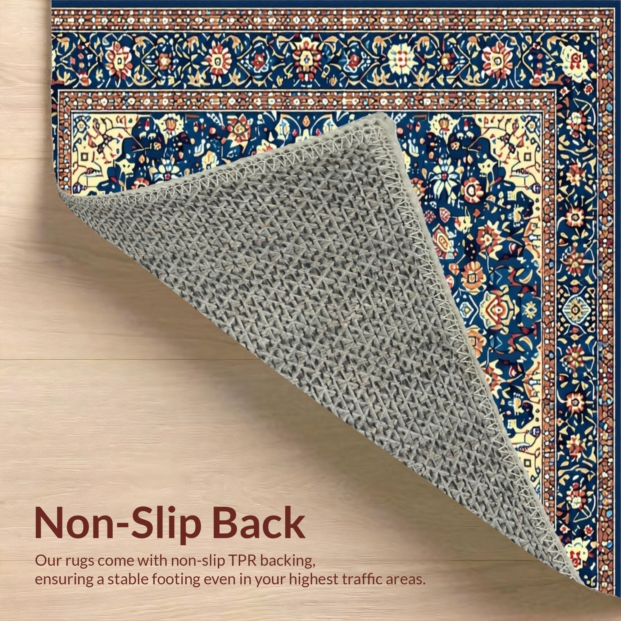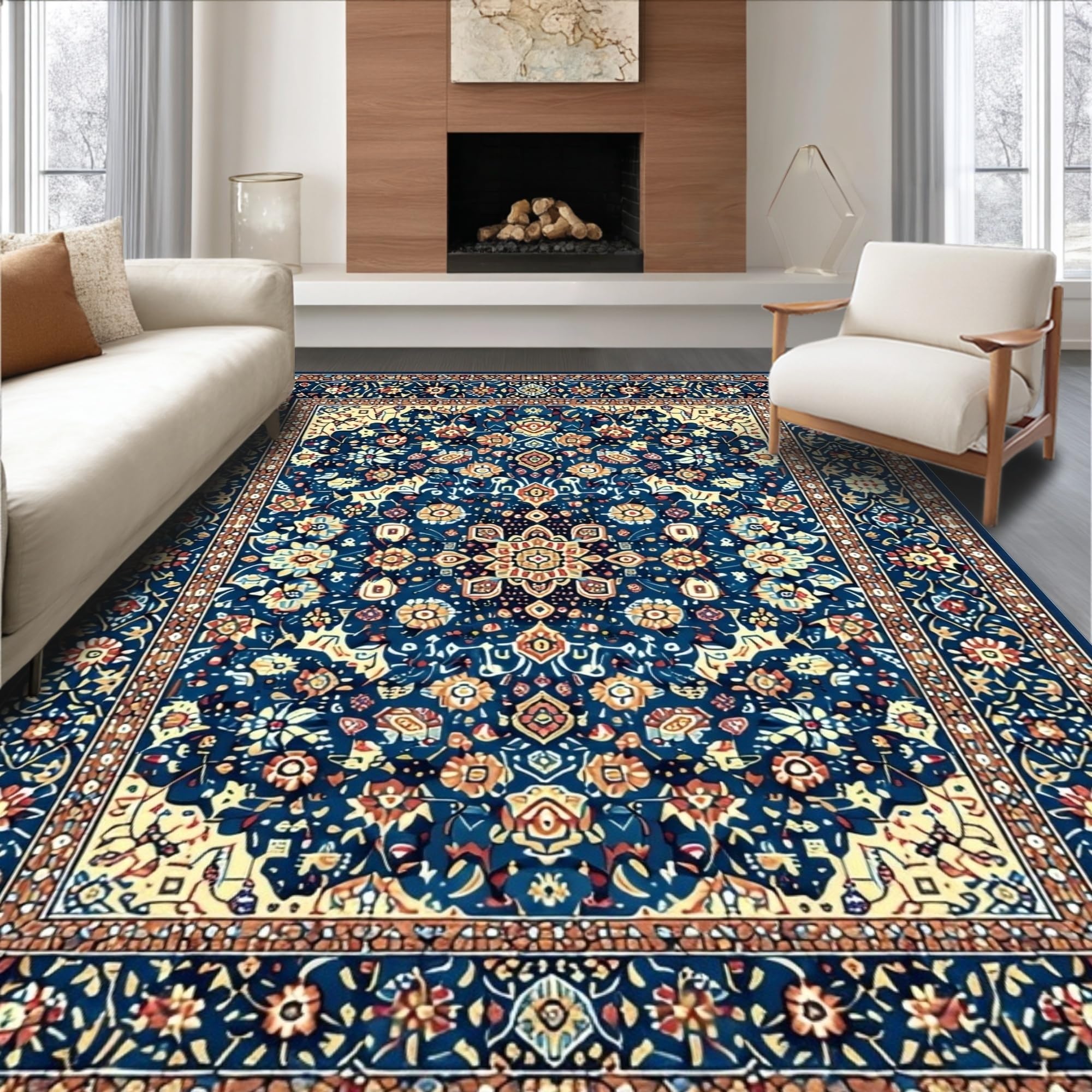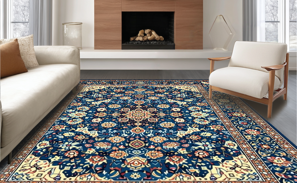 Ultra Soft Area Rug, Non Slip, Stain Resistant, Washable Area Rugs for Living Room, Bedroom, Vibrant Contrast Floral Arrangement(Blue) Overview: