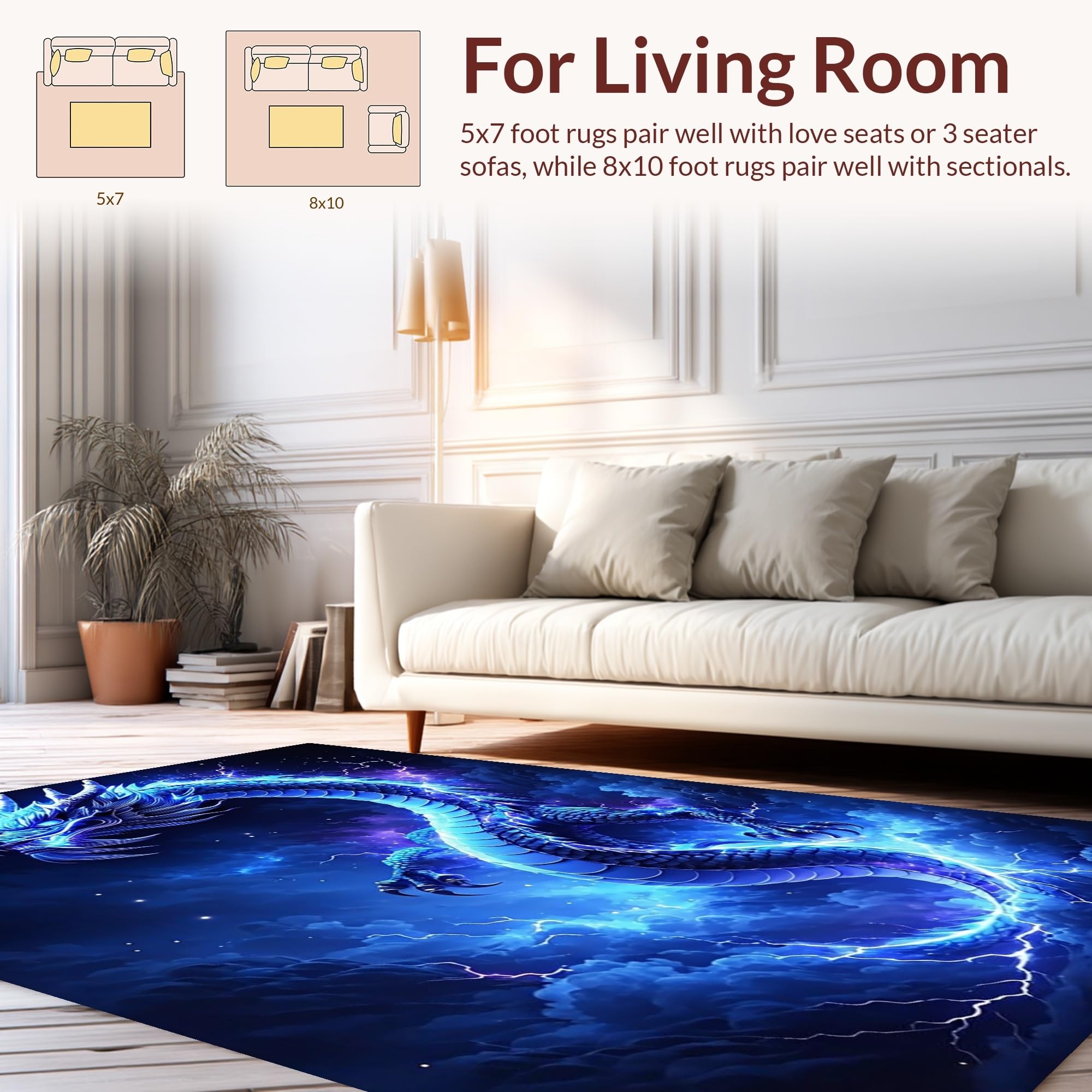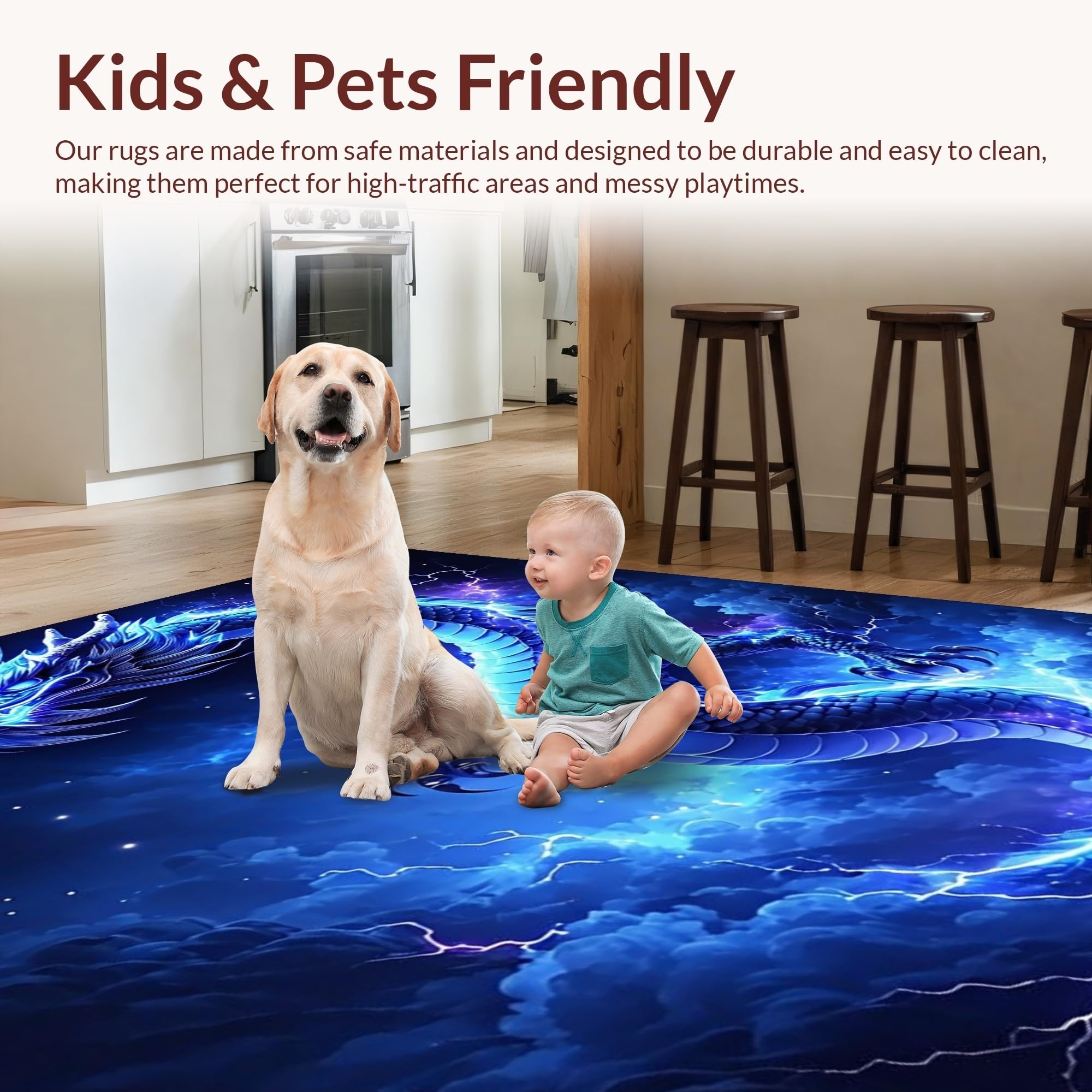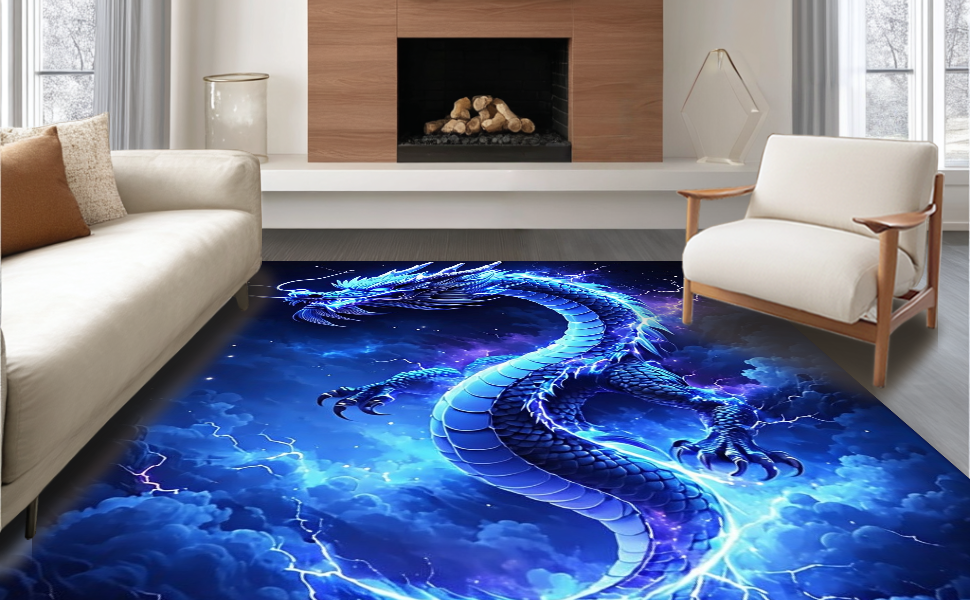 Ultra Soft Area Rug, Non Slip, Stain Resistant, Washable Area Rugs for Living Room, Bedroom, Vibrant Cosmic Dragon Imagery(Blue) Overview: