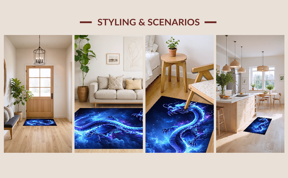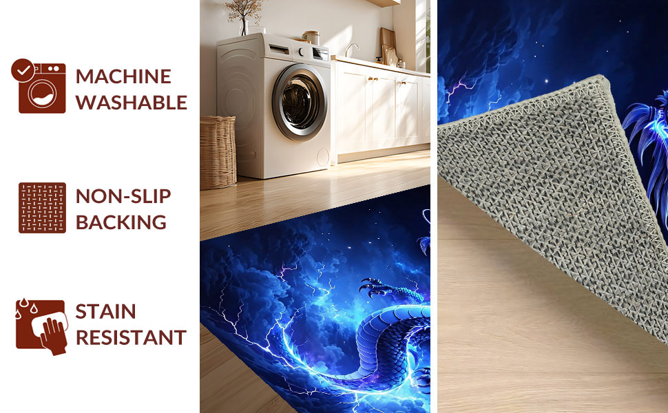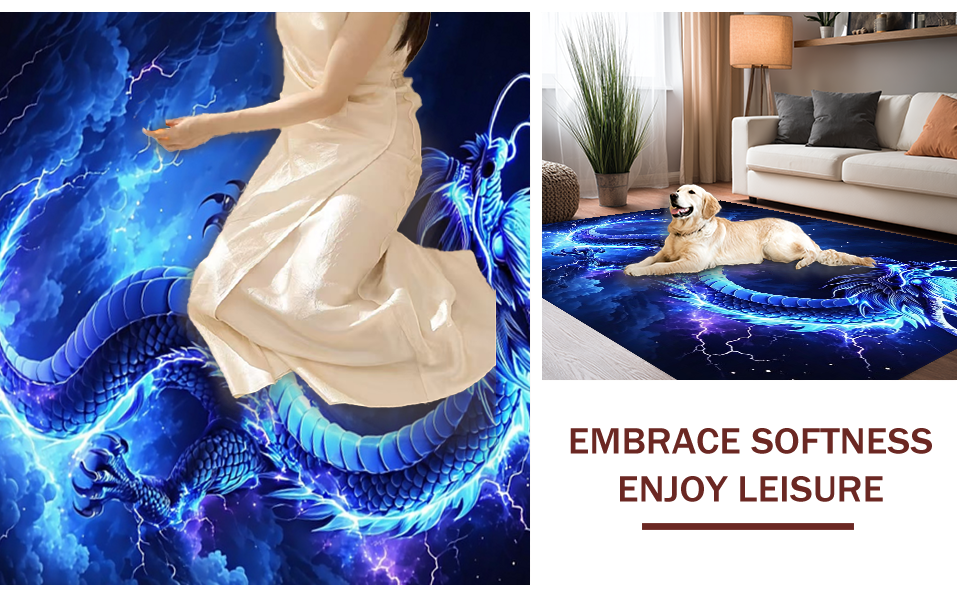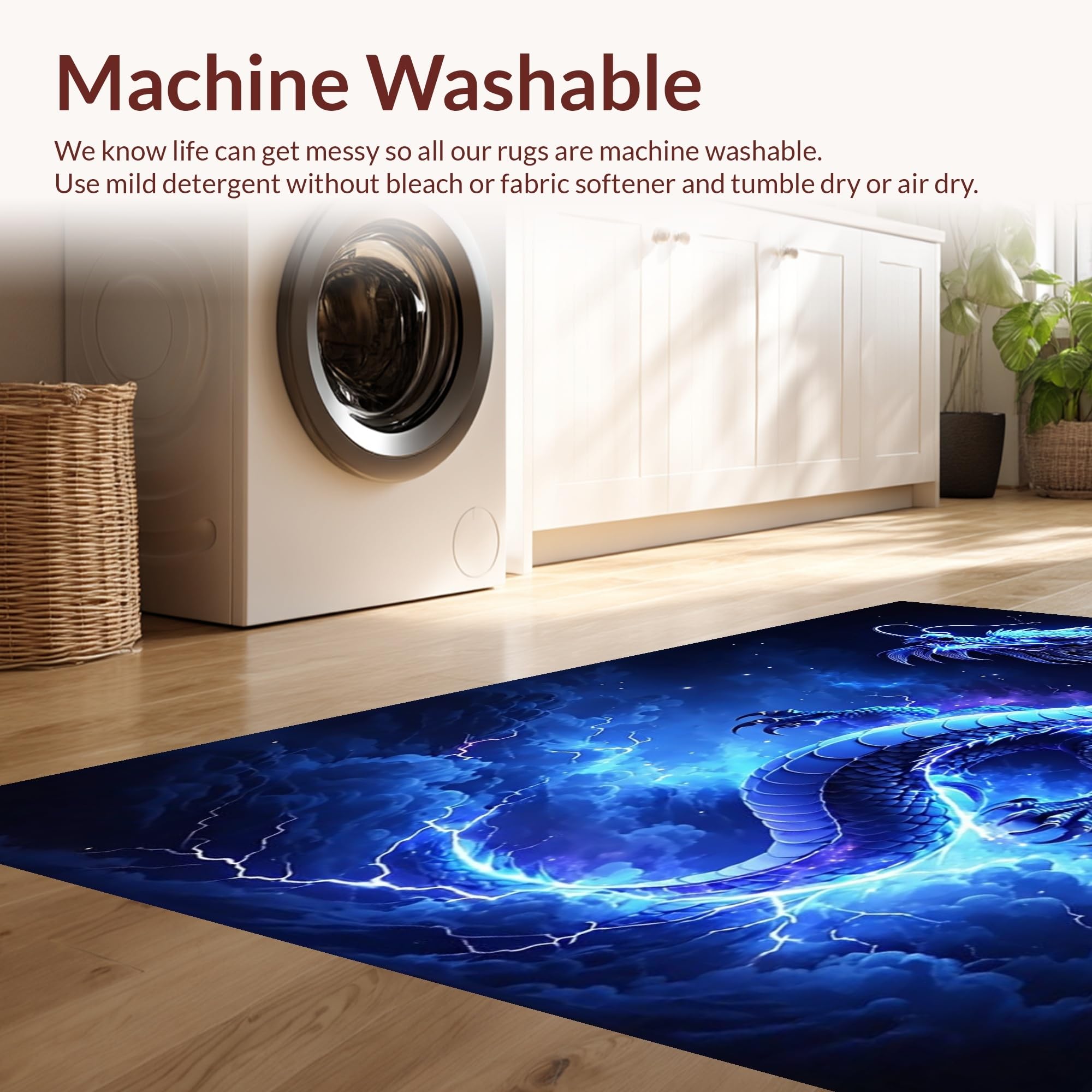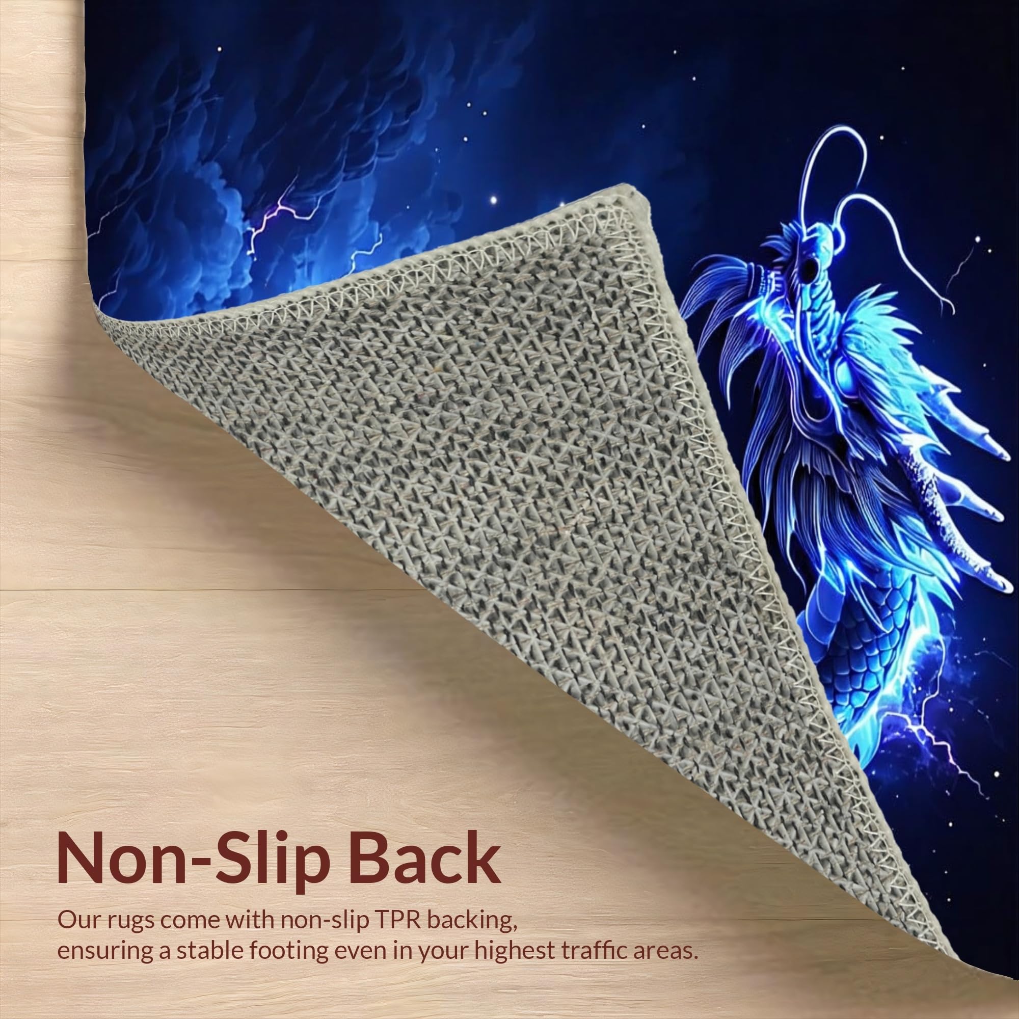 Ultra Soft Area Rug, Non Slip, Stain Resistant, Washable Area Rugs for Living Room, Bedroom, Vibrant Cosmic Dragon Imagery(Blue) Overview: