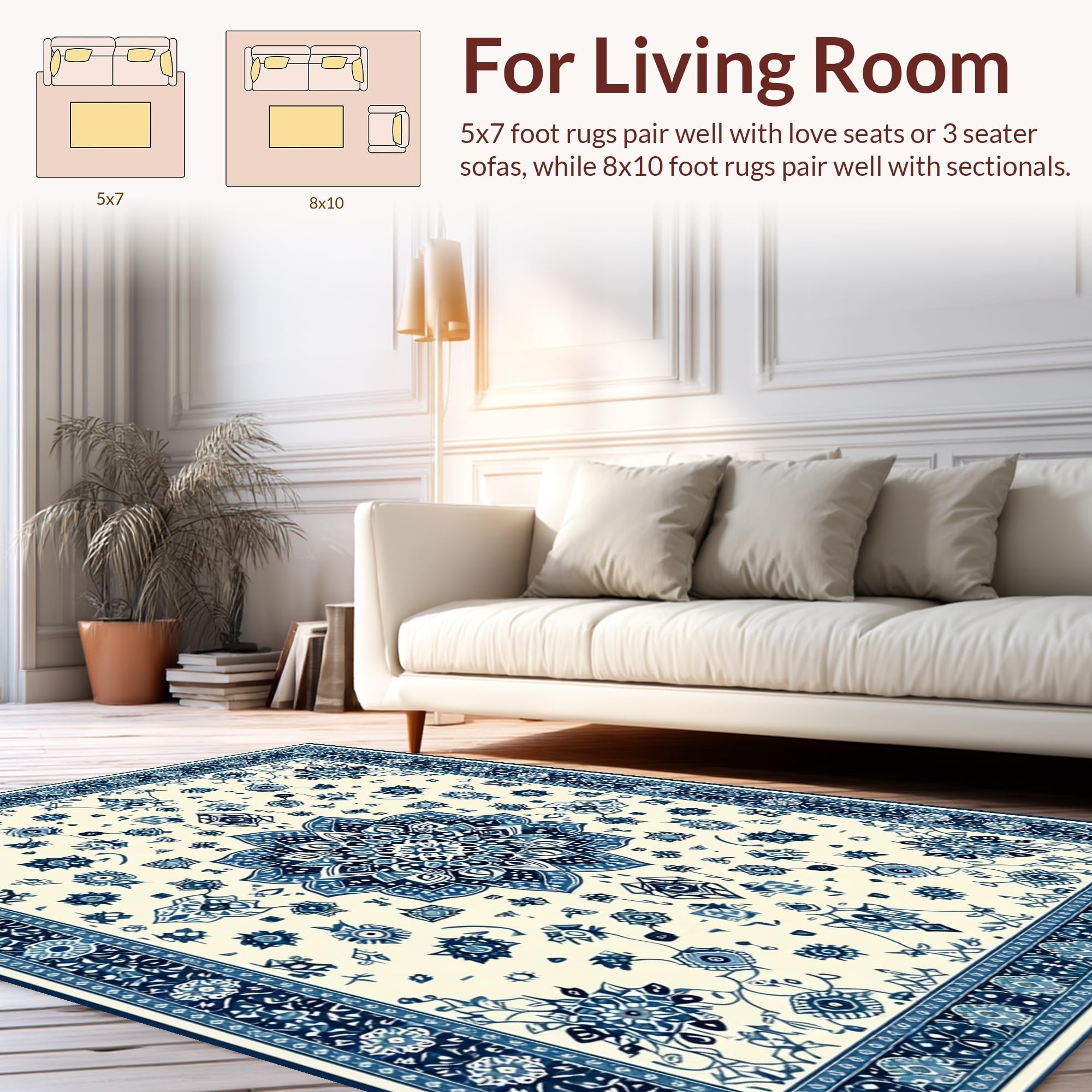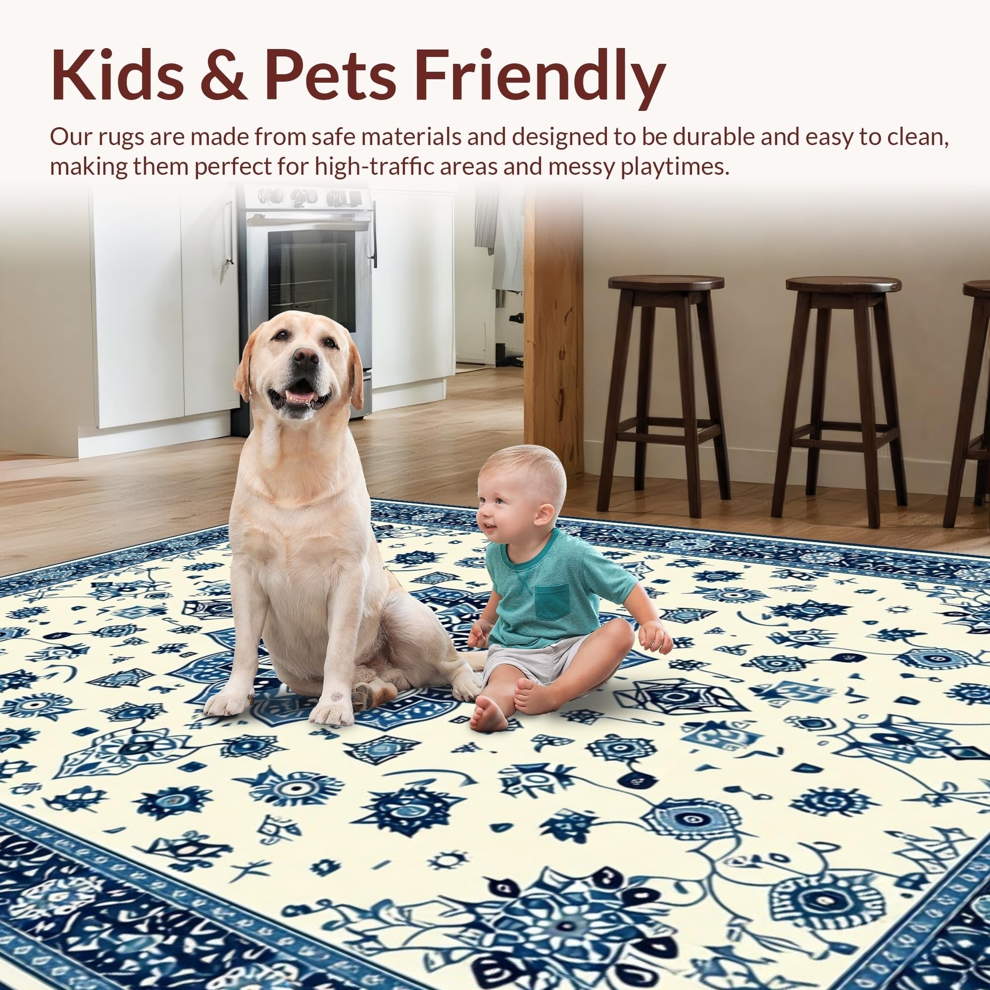 Ultra Soft Area Rug, Non Slip, Stain Resistant, Washable Area Rugs for Living Room, Bedroom, Vibrant Country Style Garden Pattern(Beige) Overview: