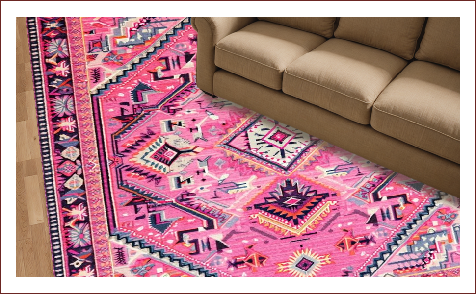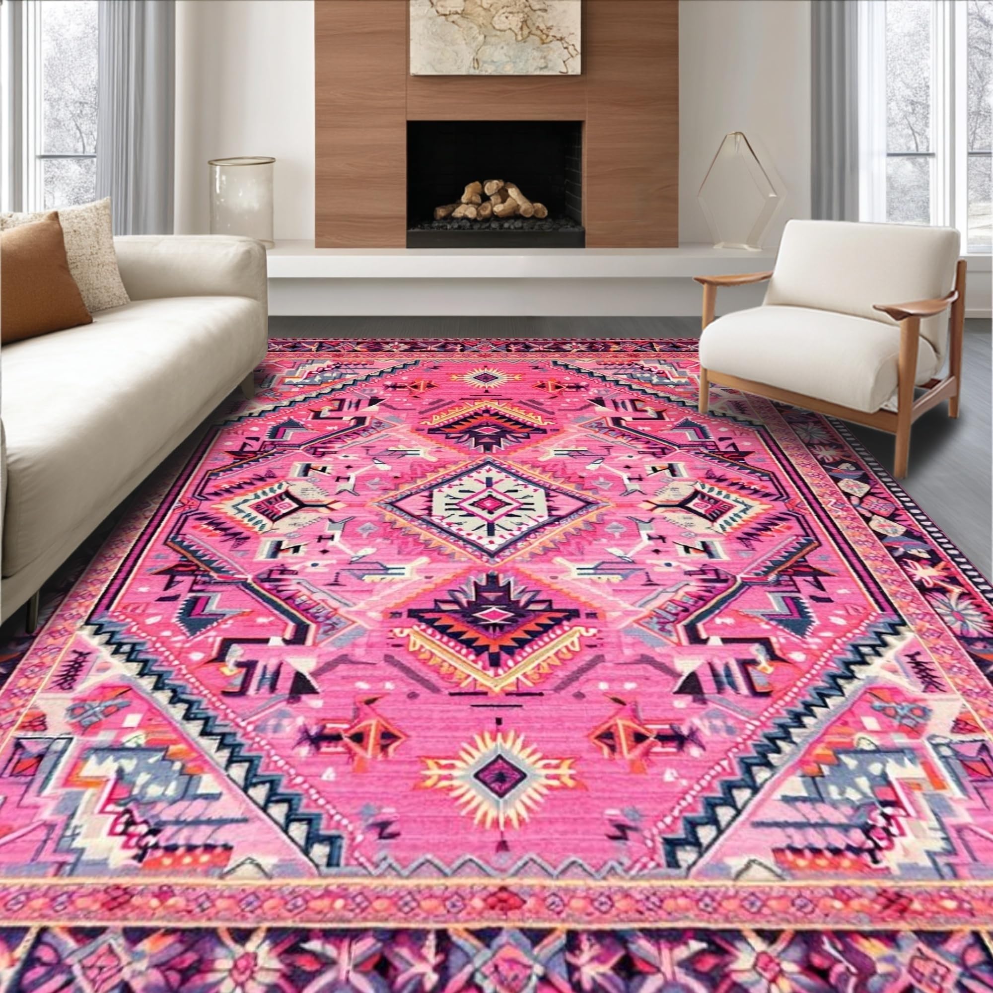Ultra Soft Area Rug, Non Slip, Stain Resistant, Washable Area Rugs for Living Room, Bedroom, Vibrant Cowboy Theme Mat(Pink) Overview: