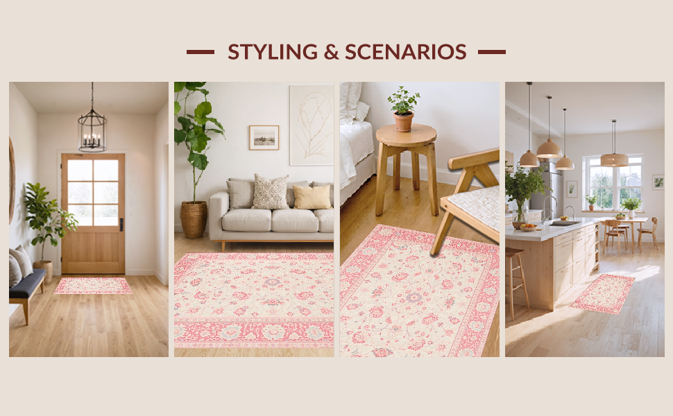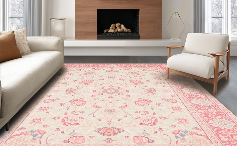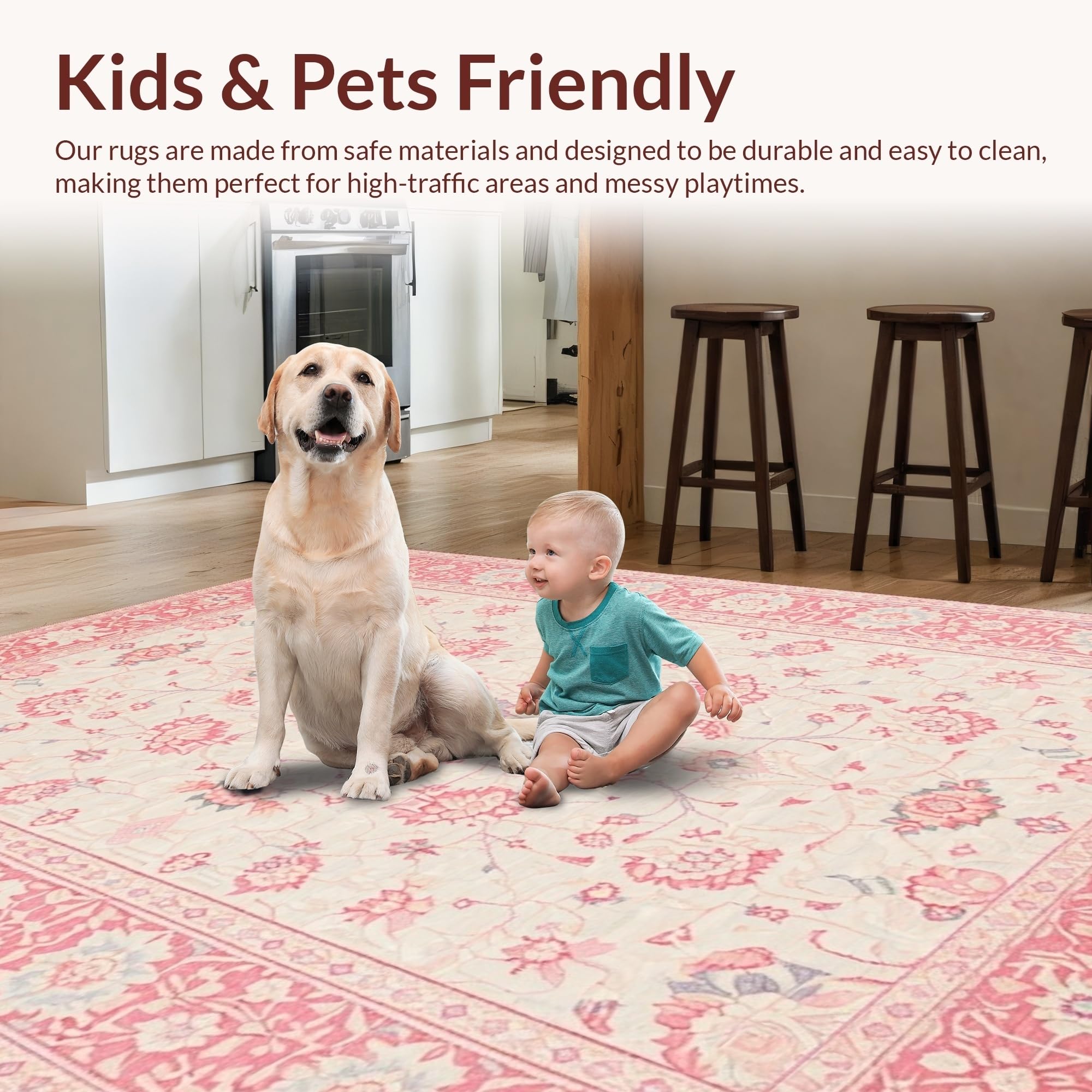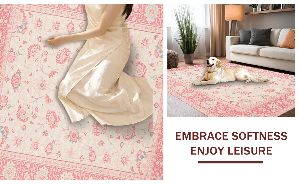 Ultra Soft Area Rug, Non Slip, Stain Resistant, Washable Area Rugs for Living Room, Bedroom, Vibrant Cozy Retro Flower Design(Pink) Overview: