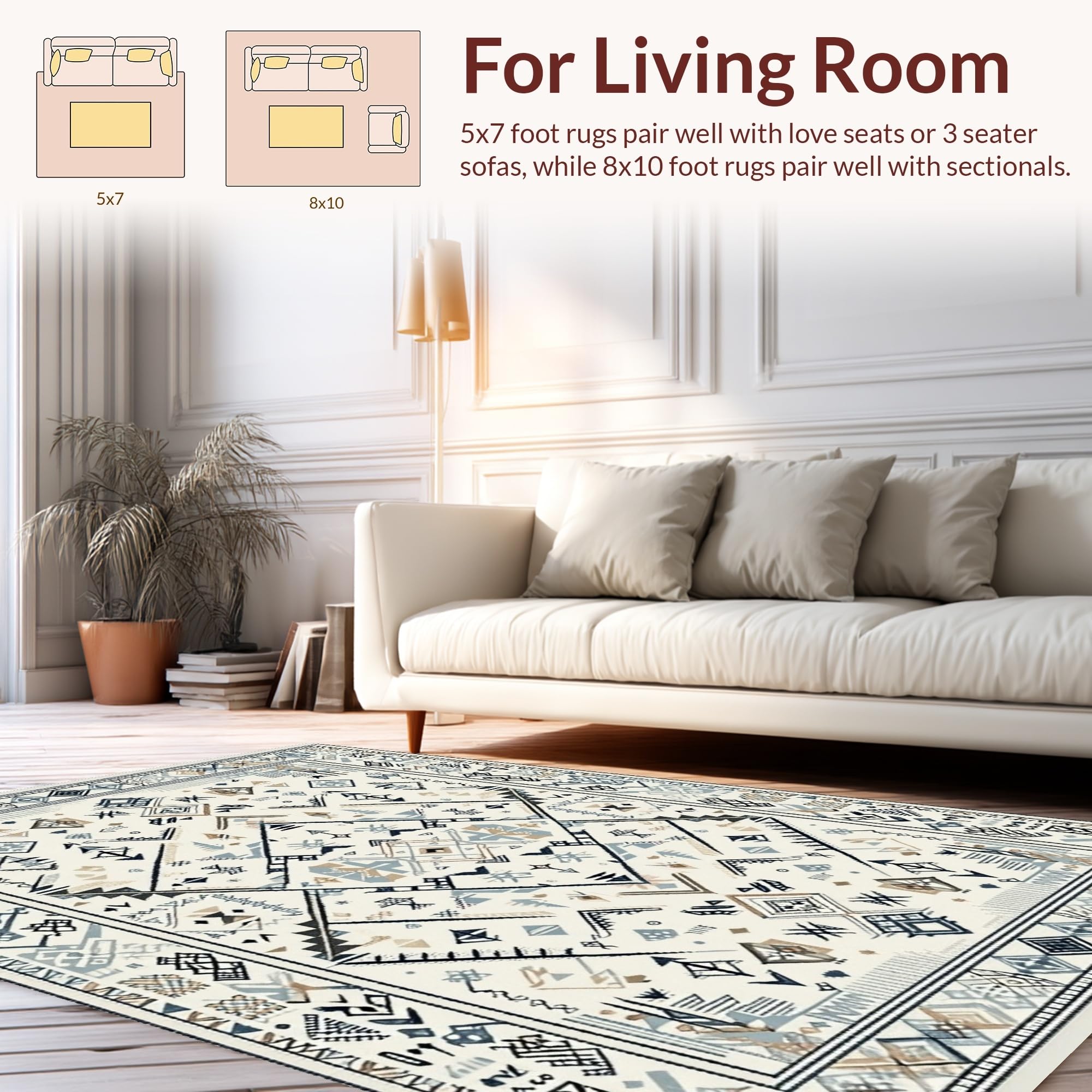 Ultra Soft Area Rug, Non Slip, Stain Resistant, Washable Area Rugs for Living Room, Bedroom, Vibrant Cream Trellis Design(Gray) Overview:
